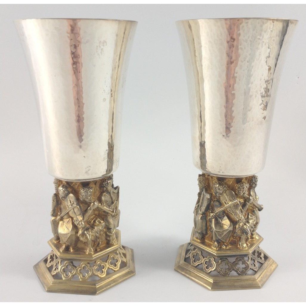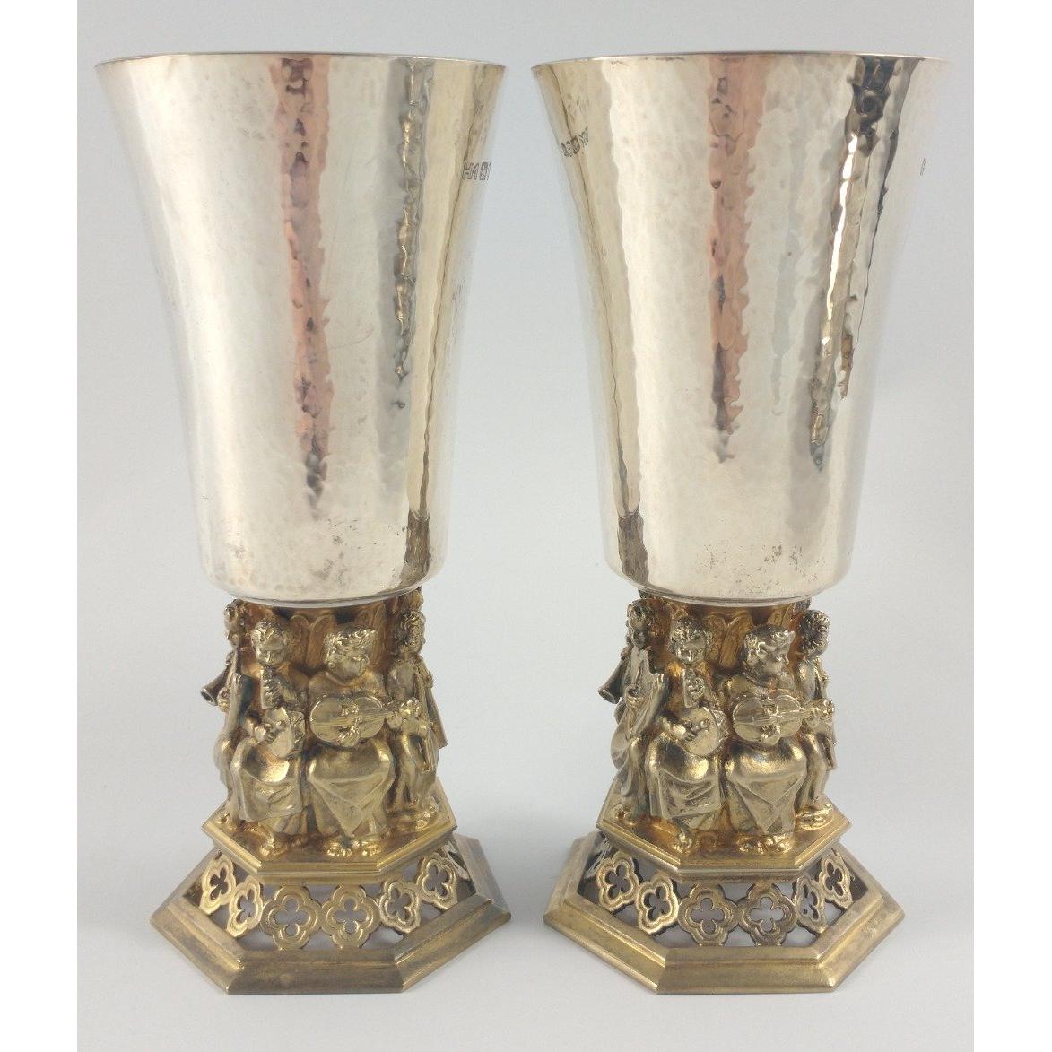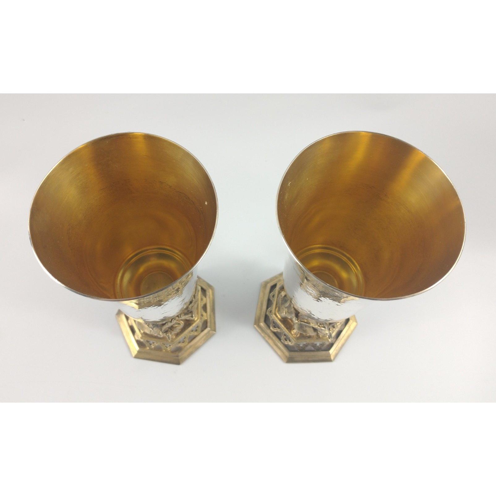 A pair of silver London hallmarked 1981 by HECTOR MILLER wine GOBLETS Nos 377 & 378 of a limited edition of 700 made to commemorate the 7th Century of the completion of Lincoln Cathedral in 1980. 16.5cm height x 7.5cm diameter, combined gross weight 630g
