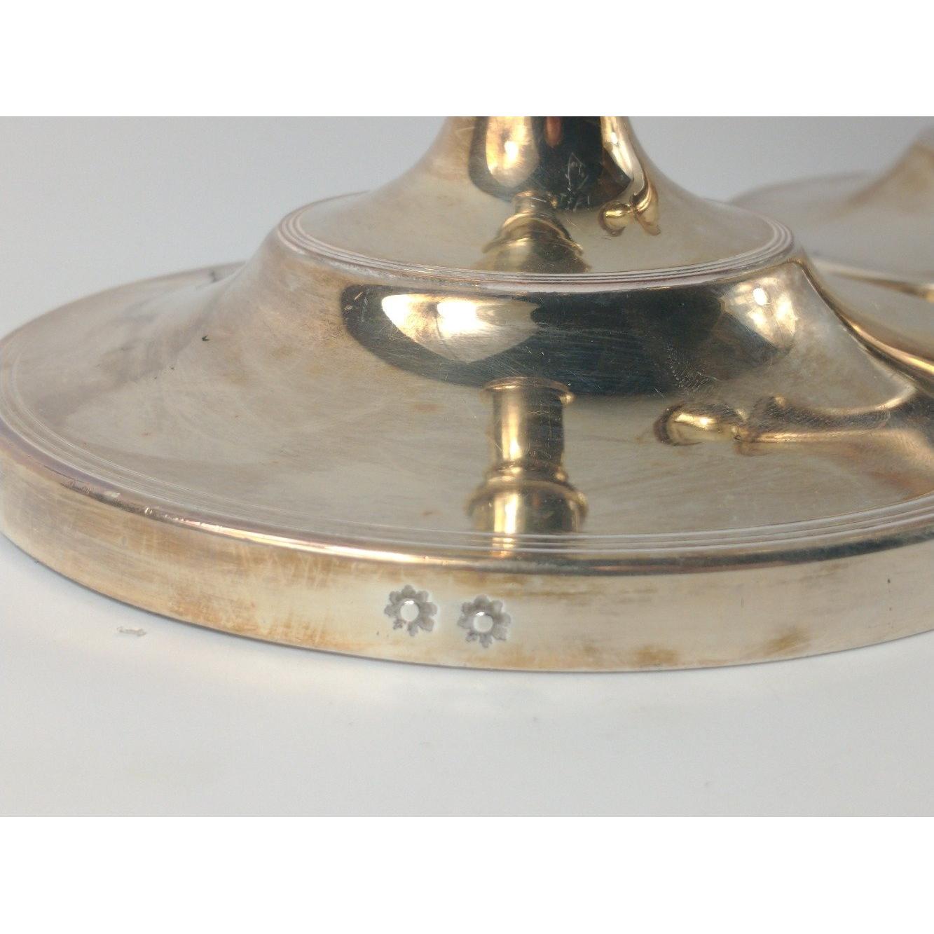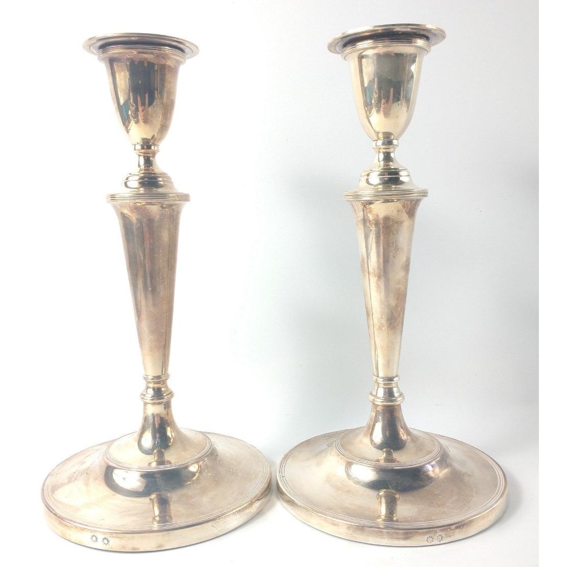 A pair of old Sheffield plate BOULTON M & CO CANDLESTICKS, base diameter 13.5cm, height 26cm approx, the candlesticks are both stamped with two marks side by side, gross weight 1700g Approx 2 pieces