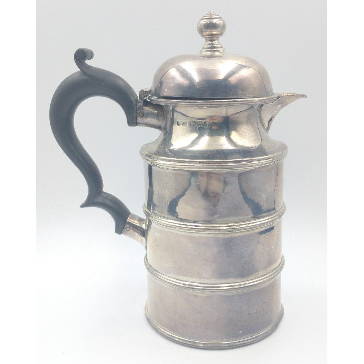 A silver Chester hallmarked 1901 CHOCOLATE POT by silversmith JMB, dimensions 16cm tall x 8cm width, gross weight 318g