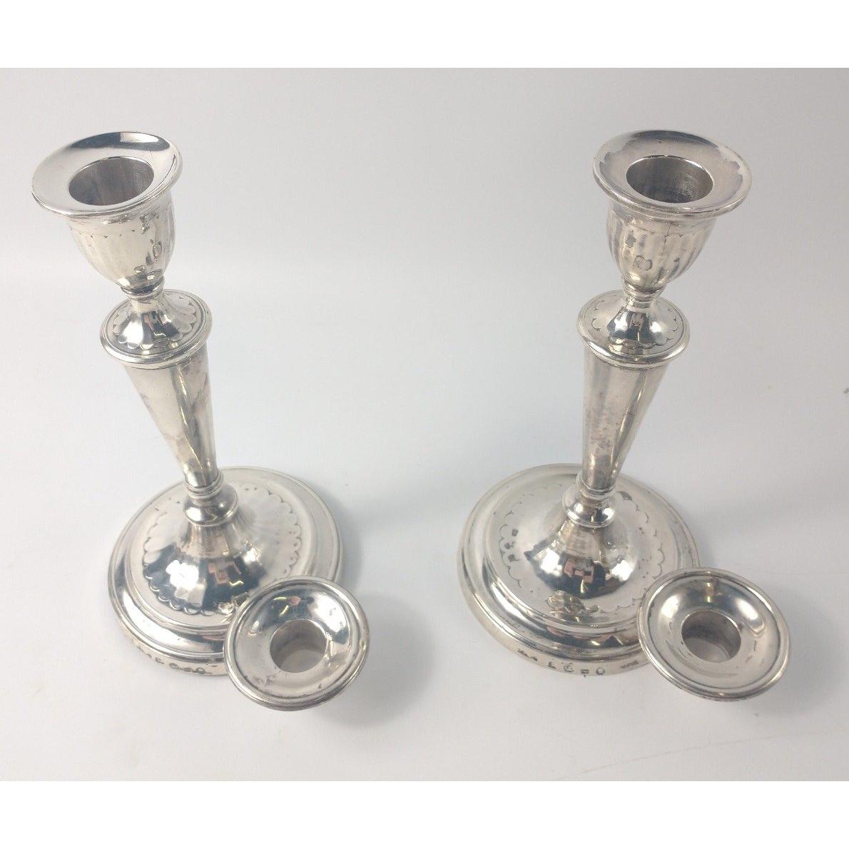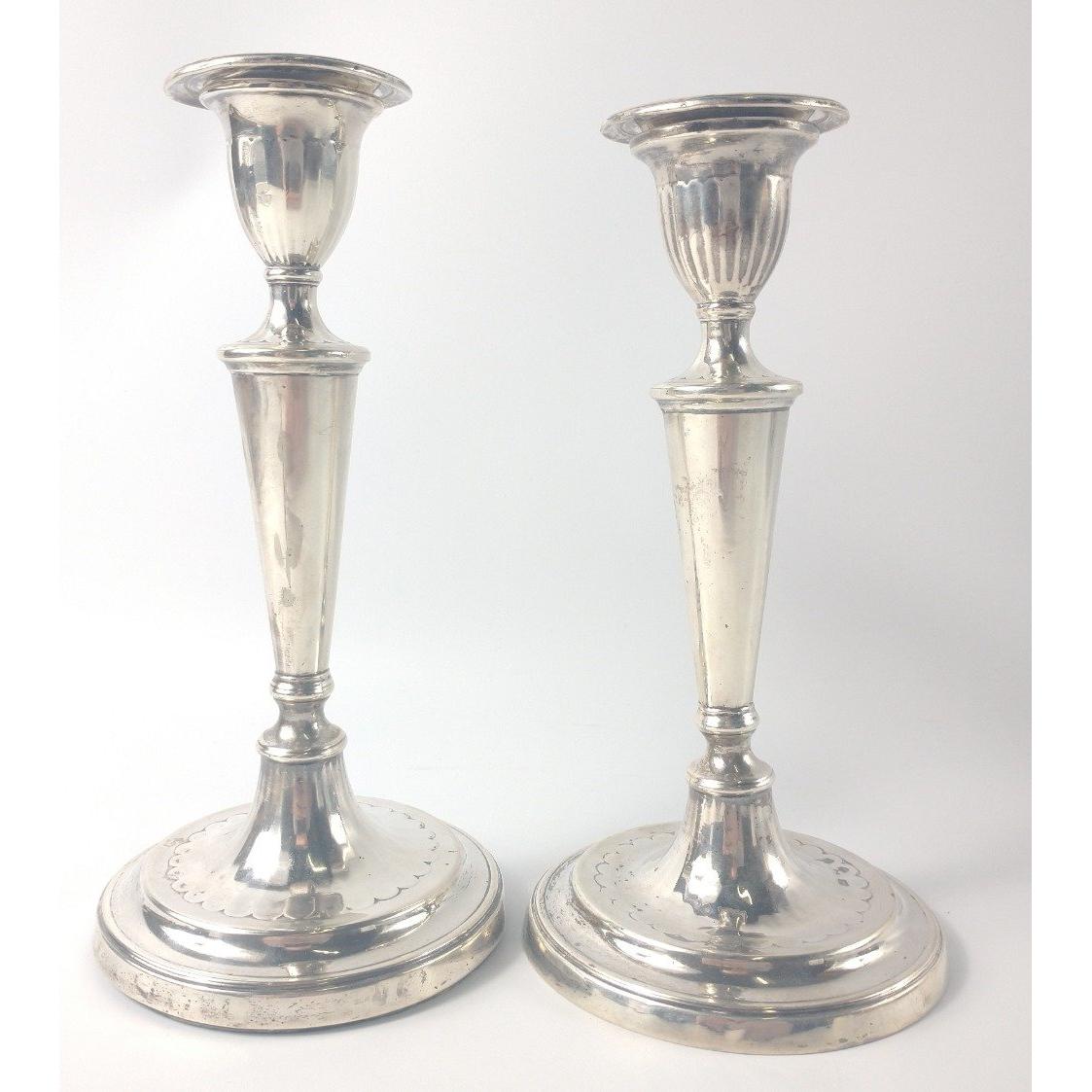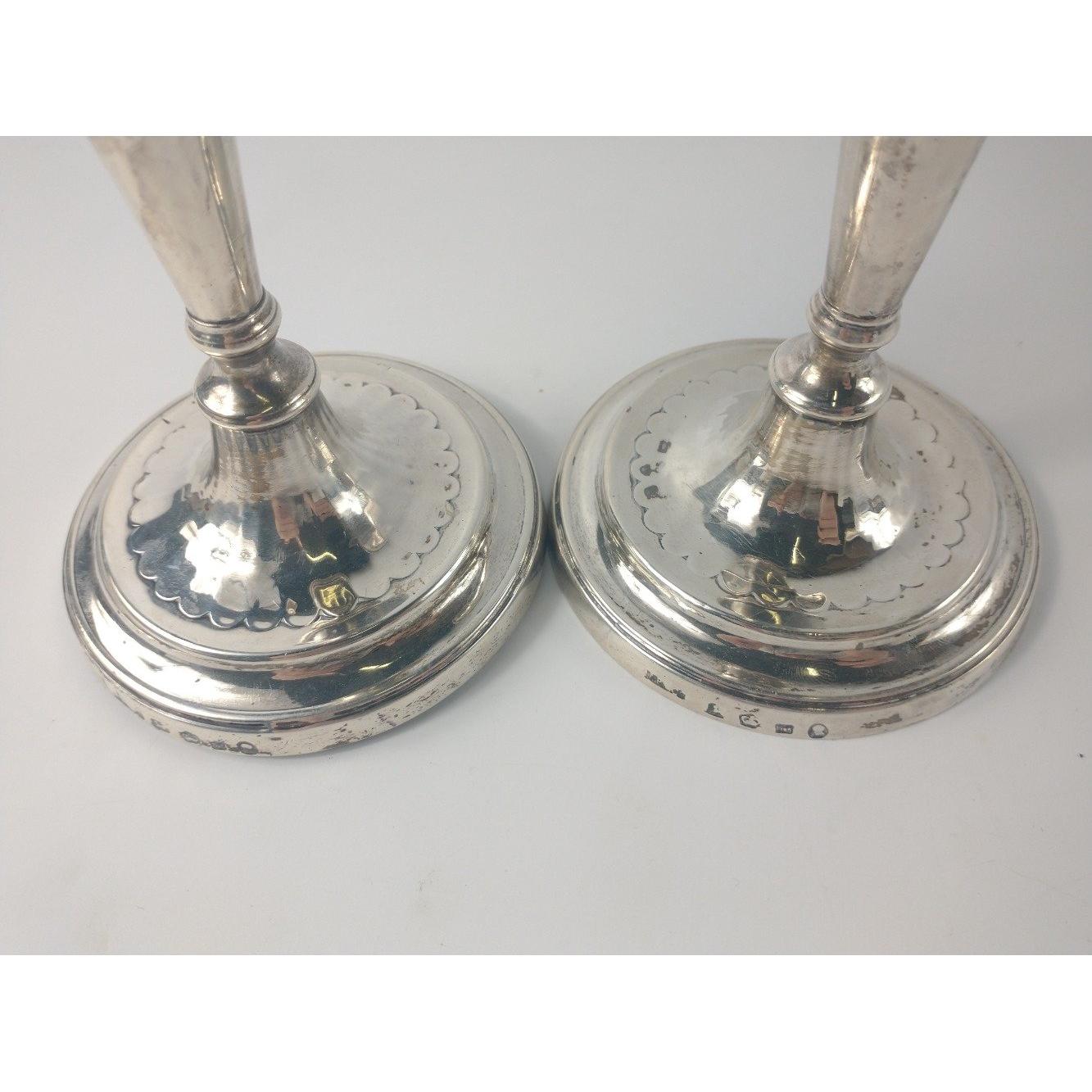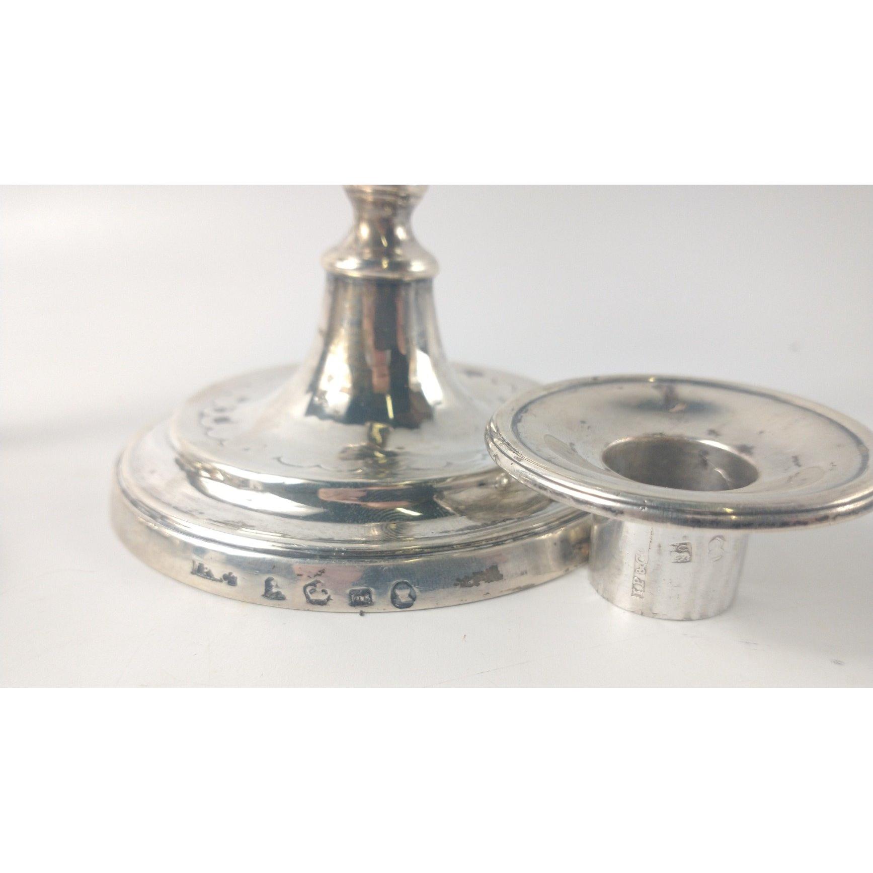 A pair of Sheffield hallmarked 1784 CANDLESTICKS by silversmiths JOHN PARSONS & CO, dimensions 18.5cm high, weight 522g combined approxGross weight approx 522gApprox 2 pieces