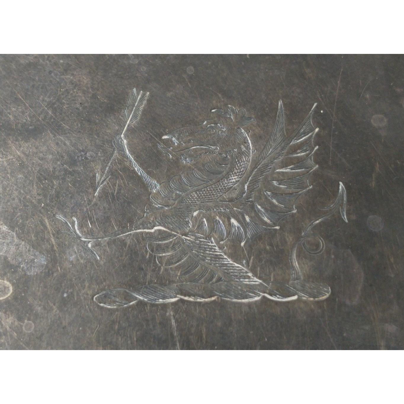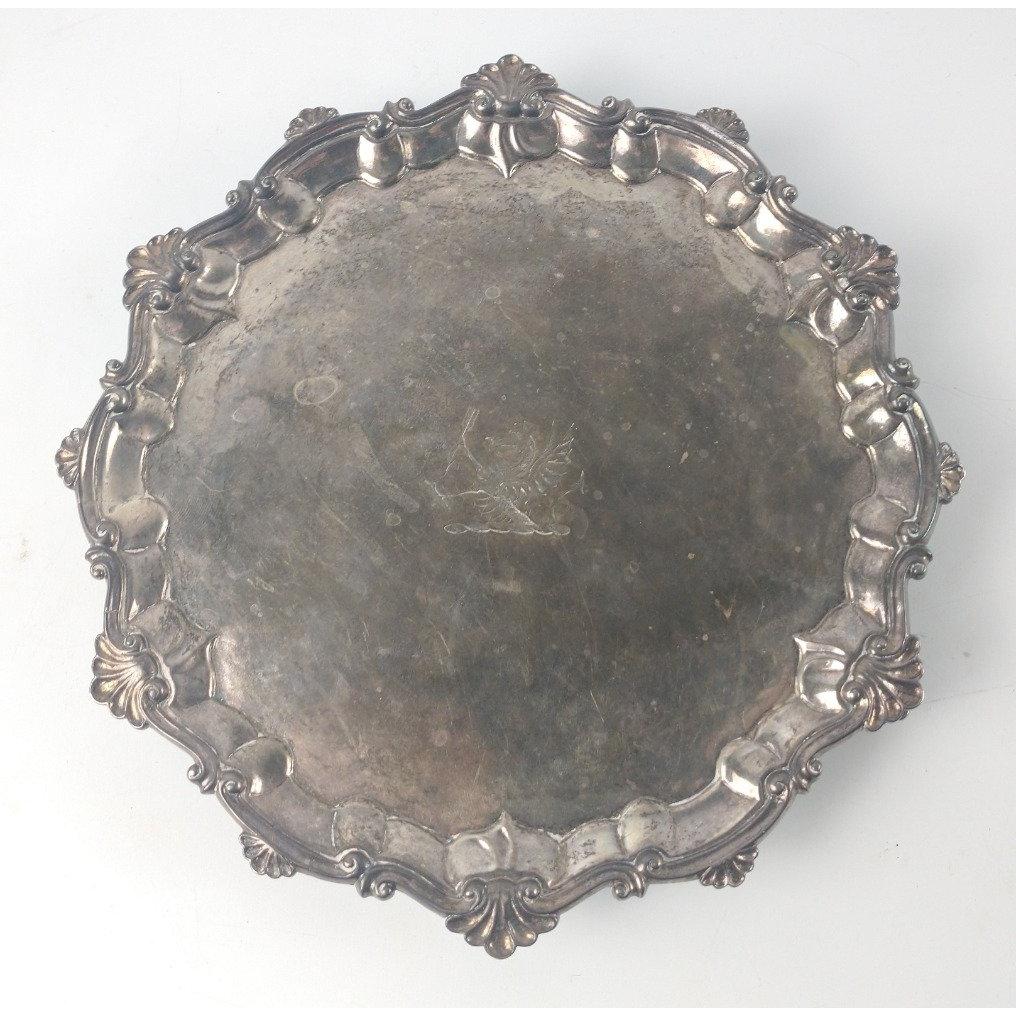 A London silver hallmarked 1826 CARD/LETTER TRAY with crest in centre and decorative edge by silversmith WILLIAM BROWN, dimensionS 20.5cm diameter and weight 325g approx Gross weight approx 325g