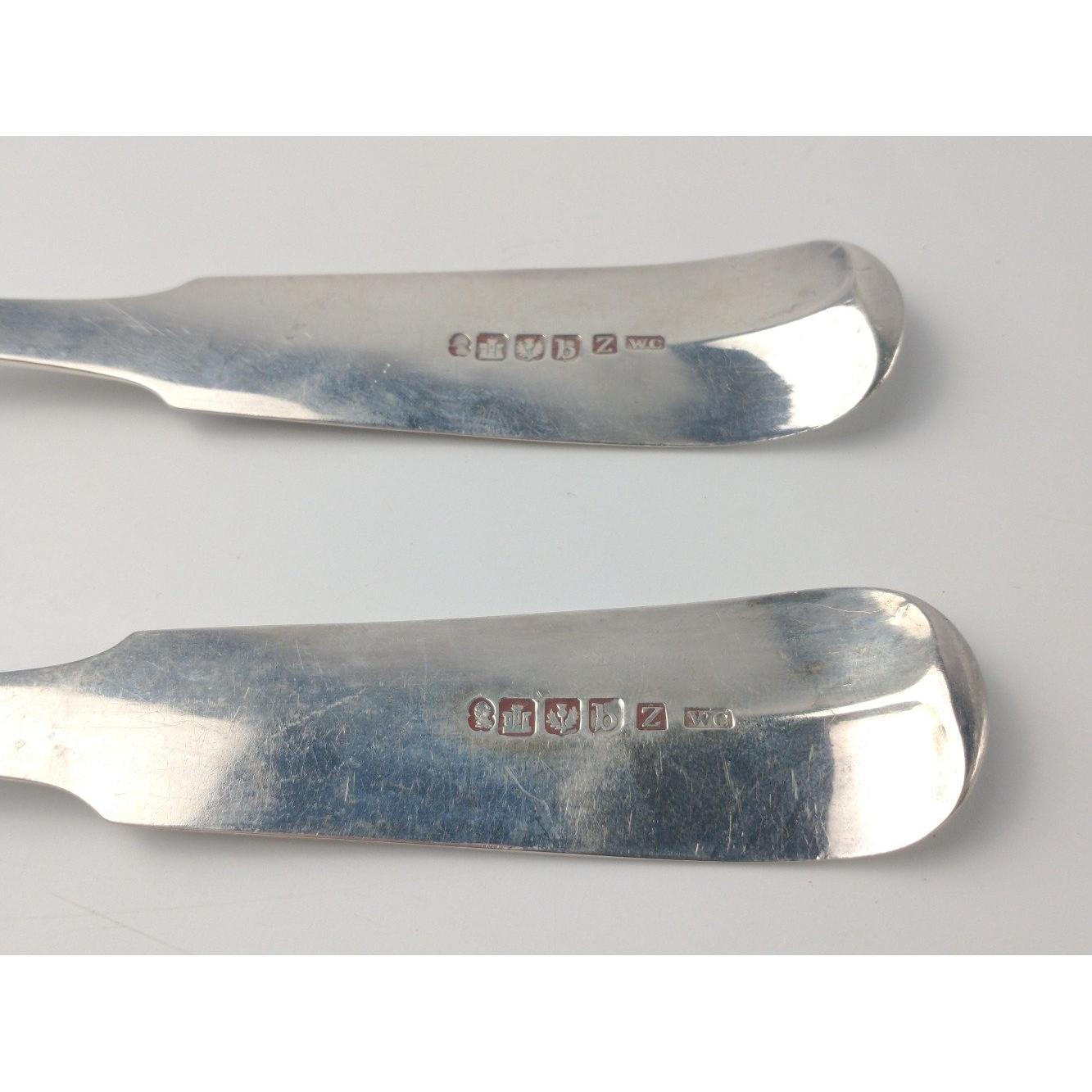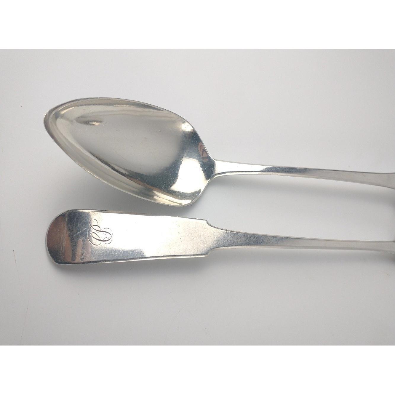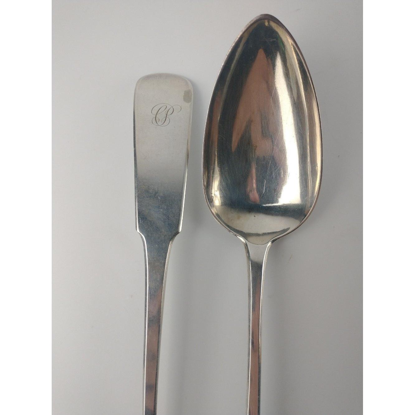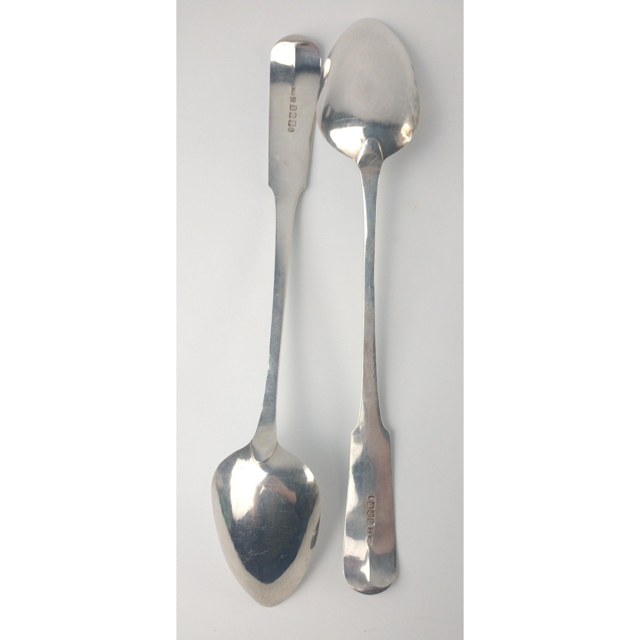 A pair of Scottish EDINBURGH silver hallmarked 1807 BASTING SPOONS, by silversmith WILLIAM CONSTABLE, dimensions 30cm long approx, weight 200g combined.Approx 2 pieces