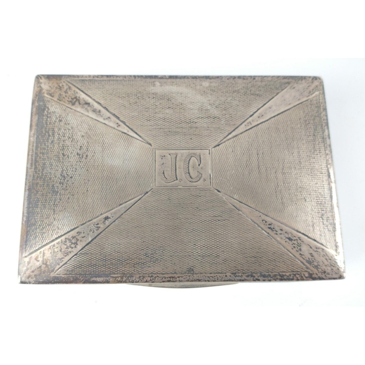 A Birmingham hallmarked silver 1929 CIGARETTE BOX, with JC monogram on lid, gross weight 334g, 13cm x 9cm x 3.5cmGross weight approx 334g