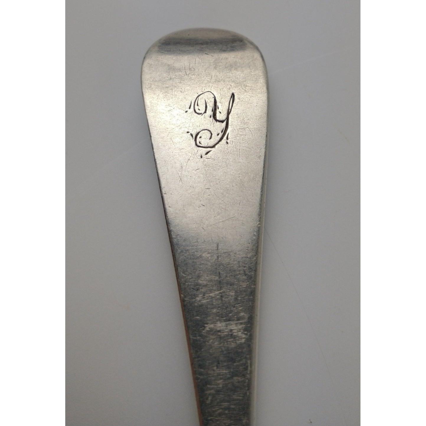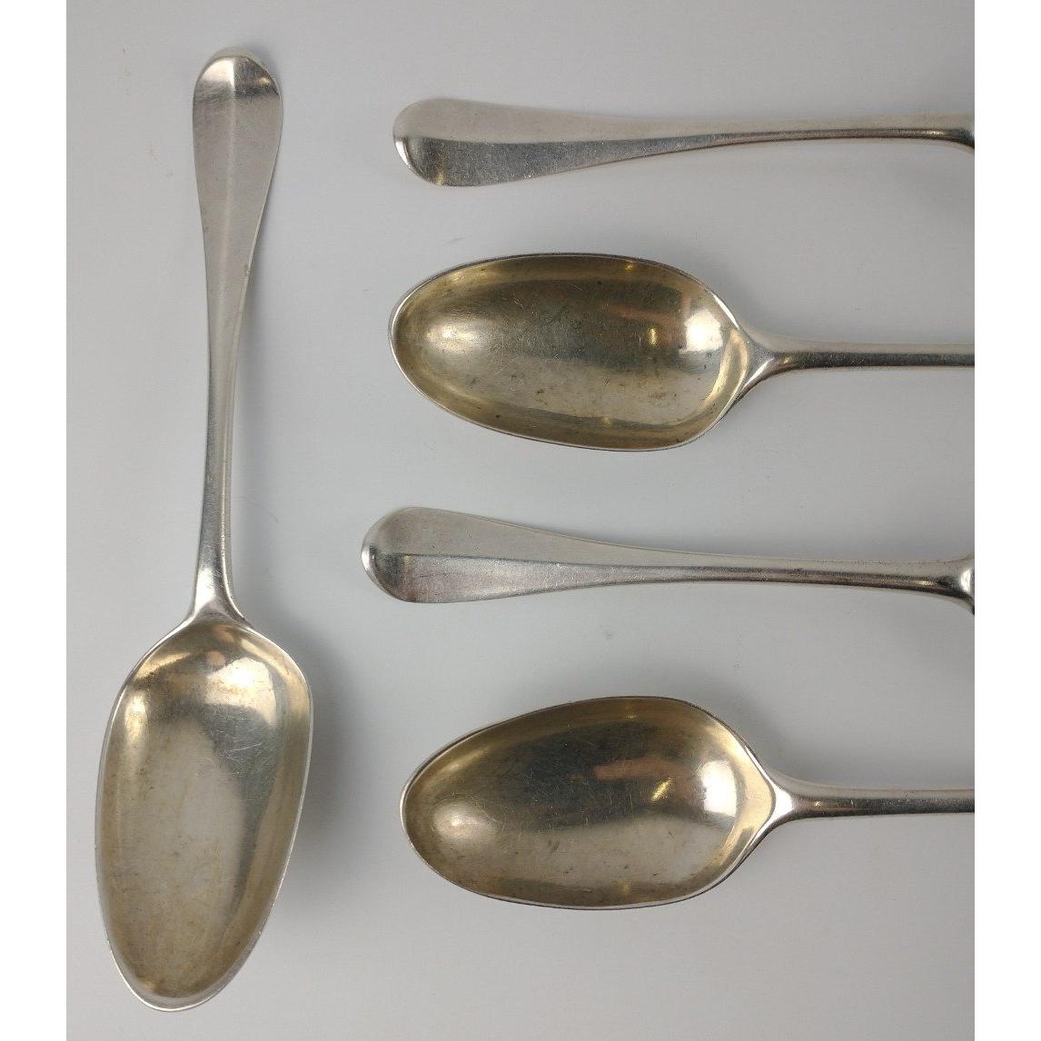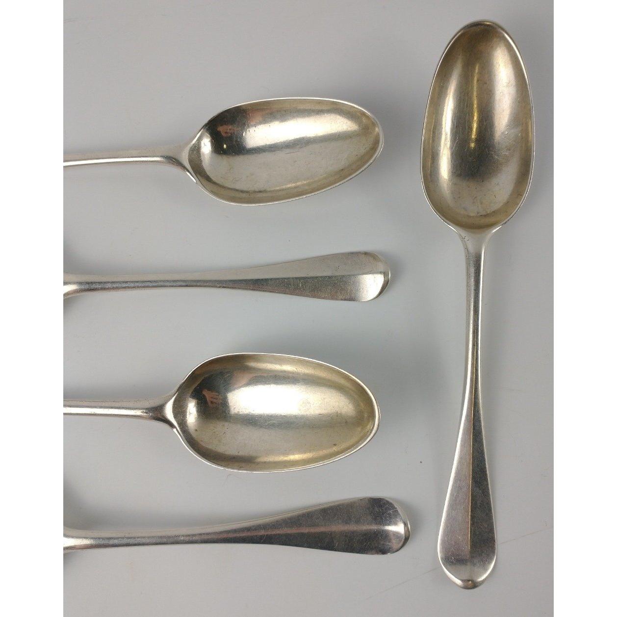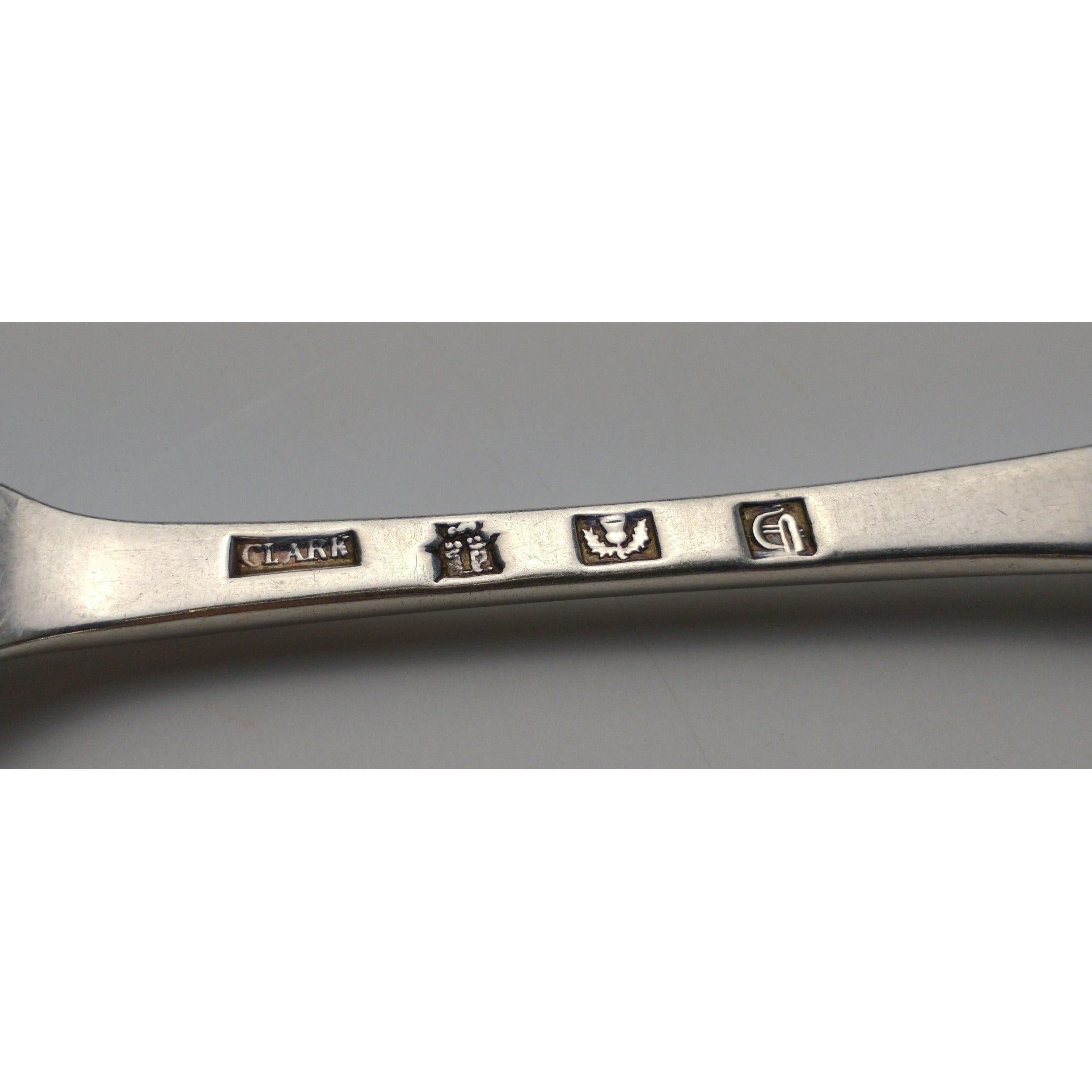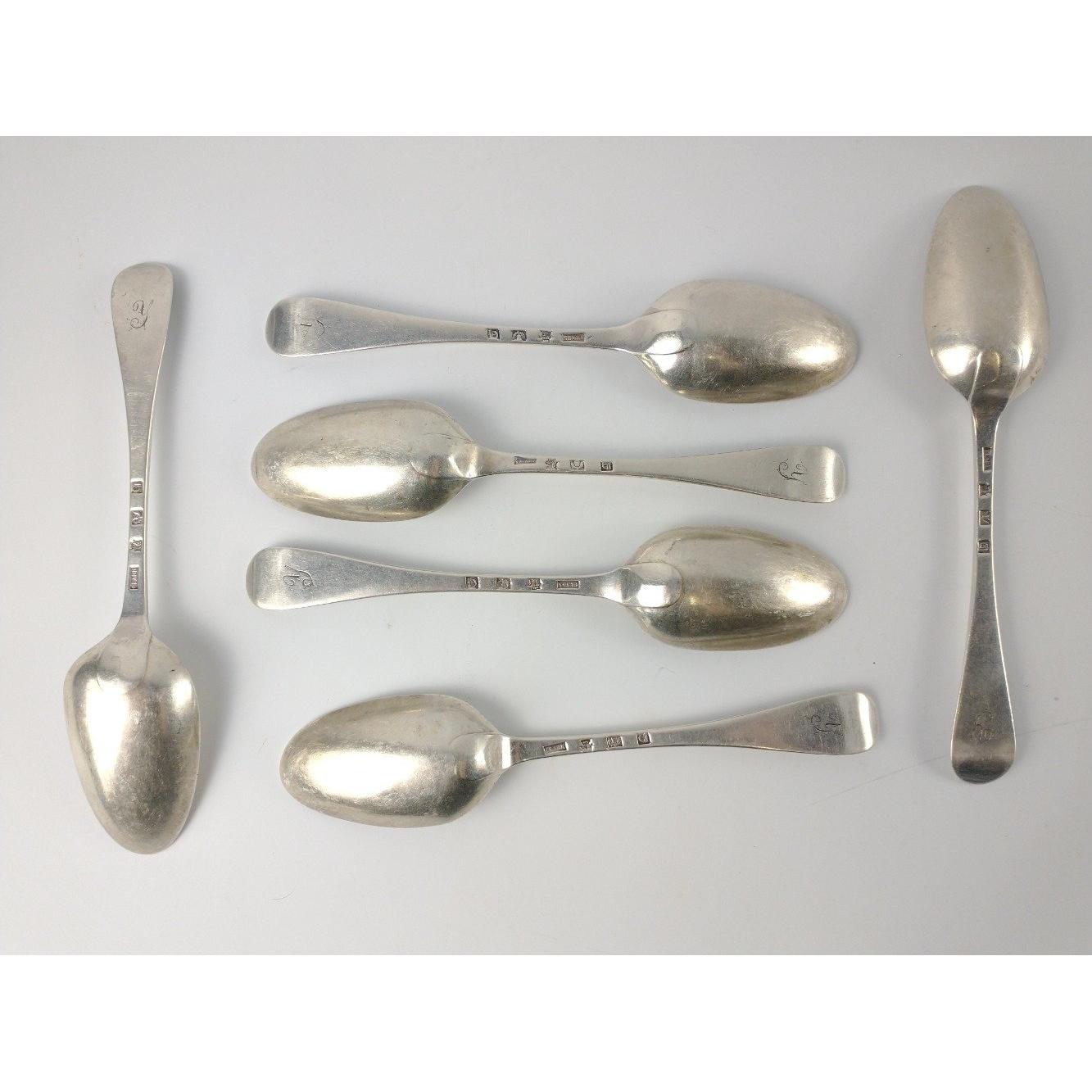 Six EDINBURGH silver hallmarked 1760s SPOONS by by silversmith JOHN CLARK length 20cm, gross weight 375g.Approx 6 pieces