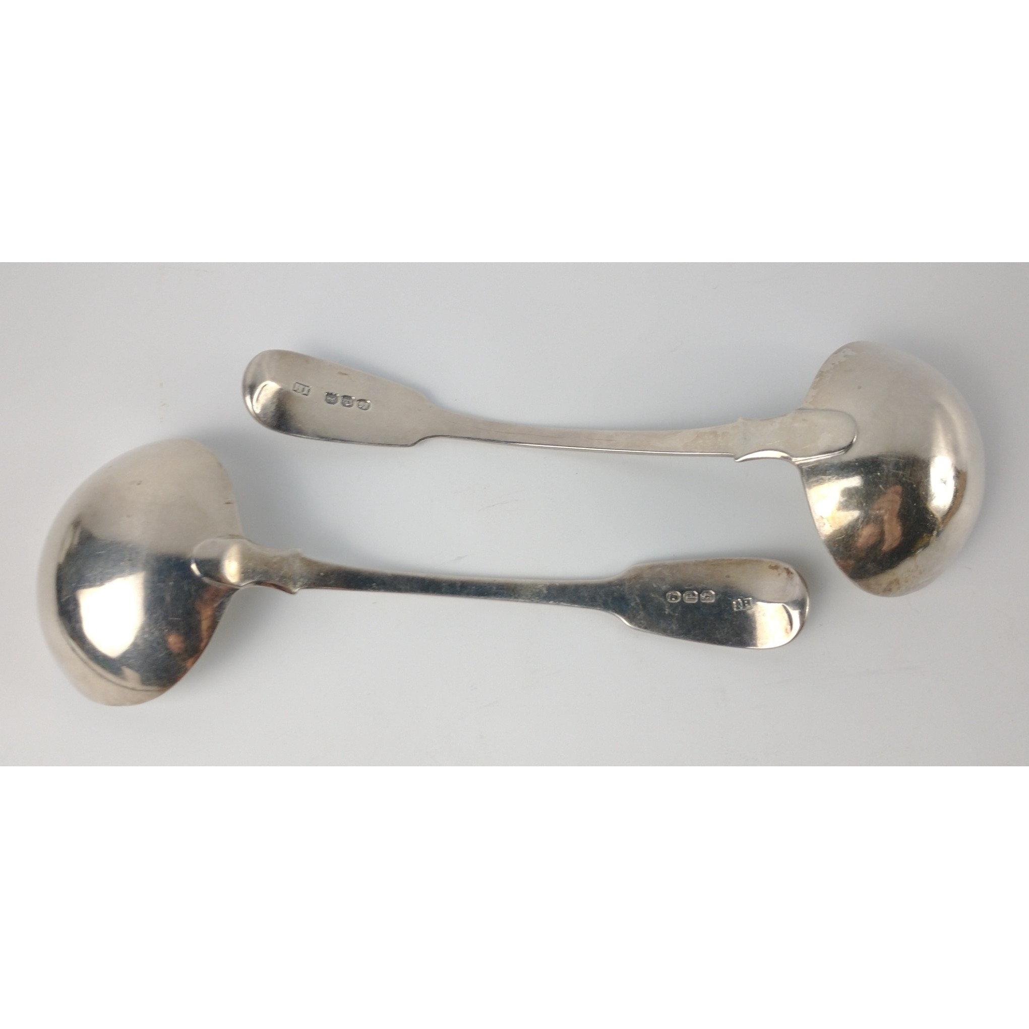 Two London silver hallmarked 1830(?) LADLES, by silversmith IH, length 18.5cm, gross weight 128 g.Approx 2 pieces