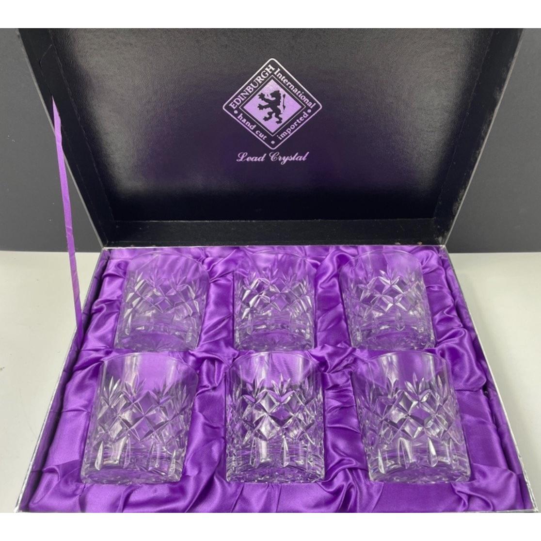 A boxed set of six EDINBURGH CRYSTAL whisky tumblers plus two other pieces of crystalApprox 8 pieces