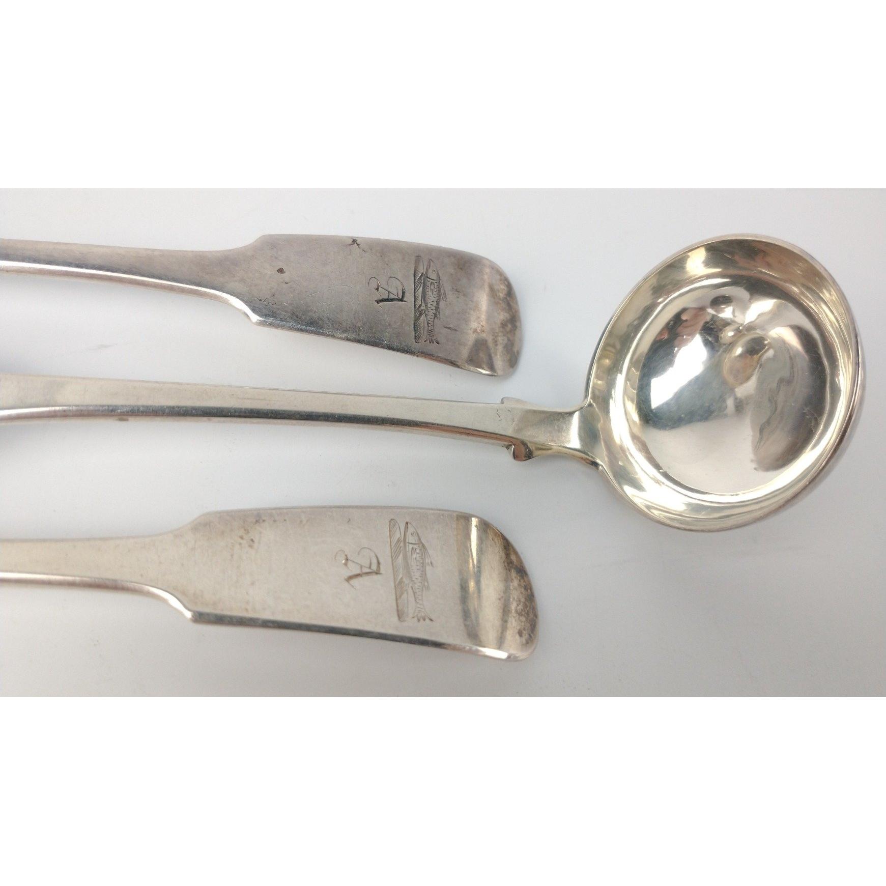 Three GLASGOW silver hallmarked 1837 SAUCE LADLES by silversmith PETER AITKEN length 17cm, gross weight 130g.Approx 3 pieces