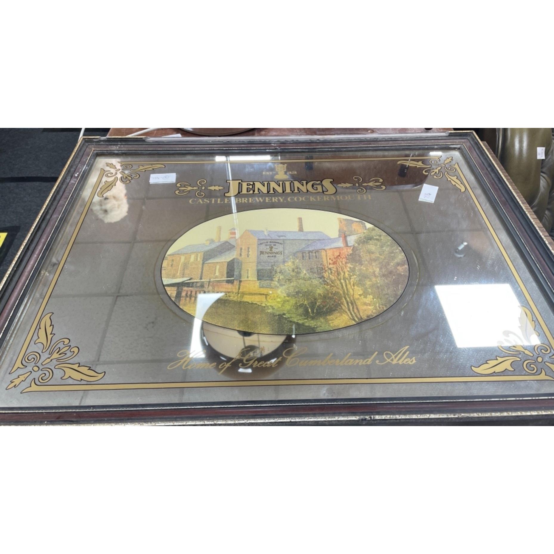 Three vintage PUB MIRRORS, 2 with Black Heart Rum design (65 x 35cm) and 1 with Jennings Castle Brewery (65 x 50cm approx)Approx 3 pieces