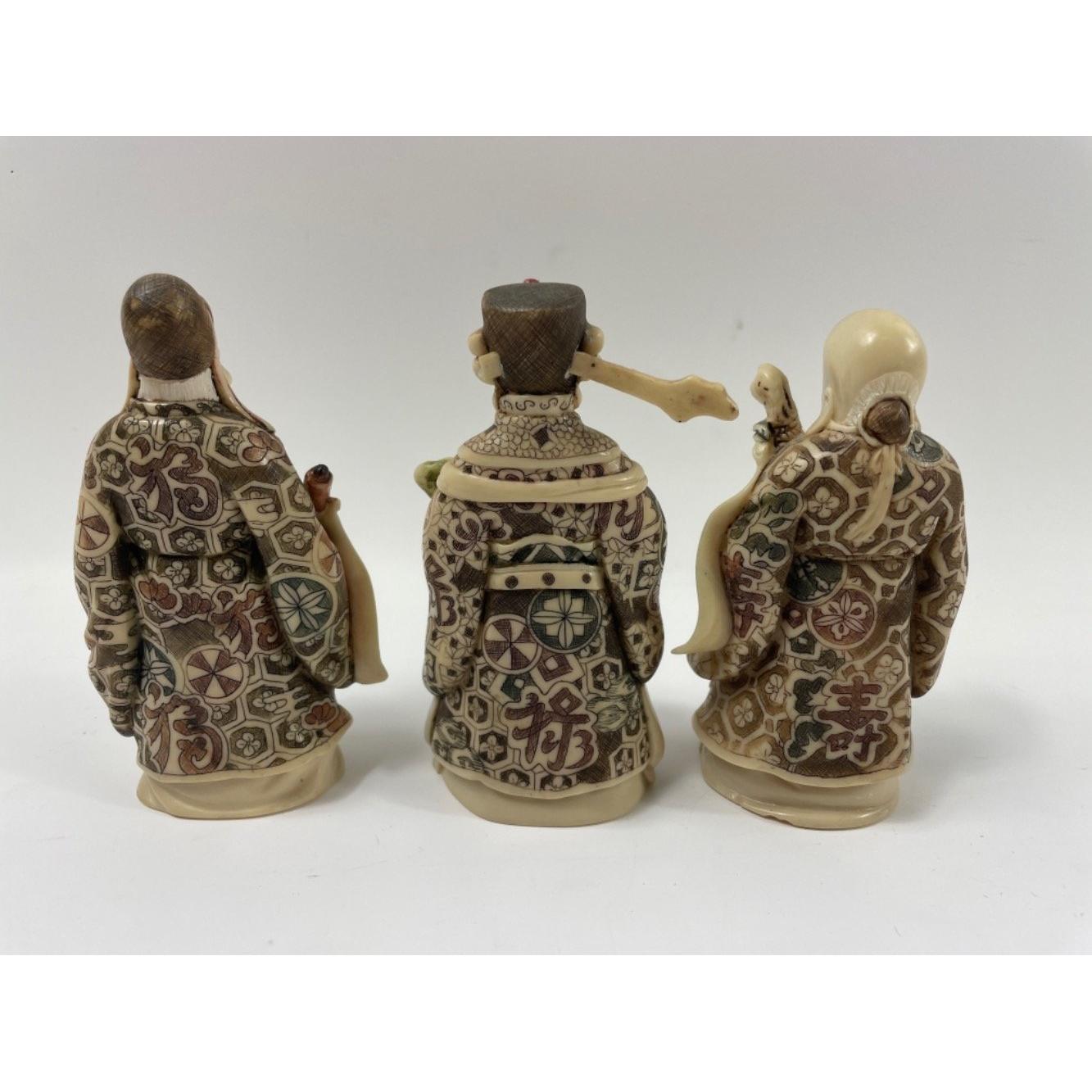 A set of three carved ORIENTAL WISE MEN standing approx 10cm highApprox 3 pieces
