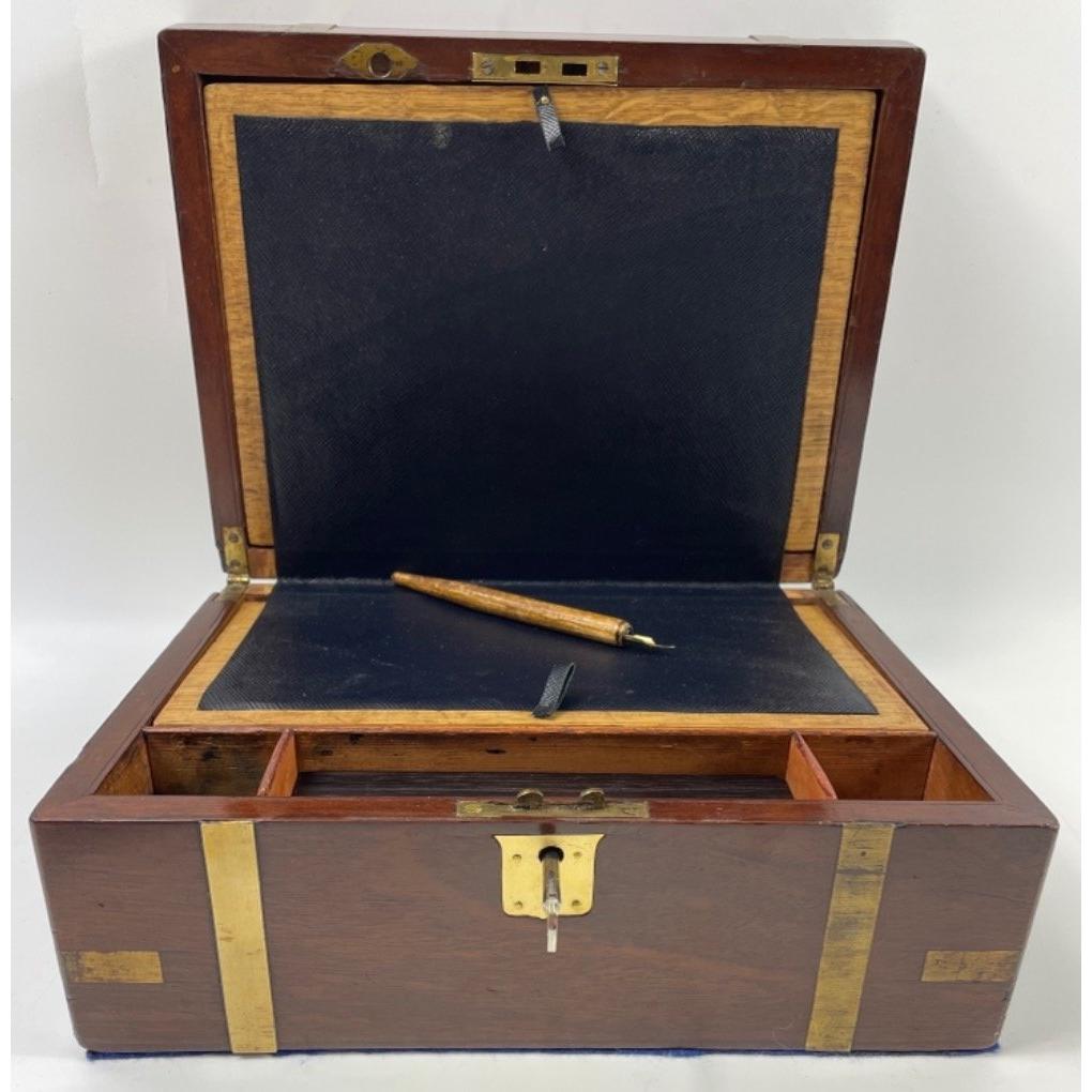 A nice mahogany and brass fittings box with key dimensions 30cm long x depth 13cm x 23cm width with a 'secret compartment!