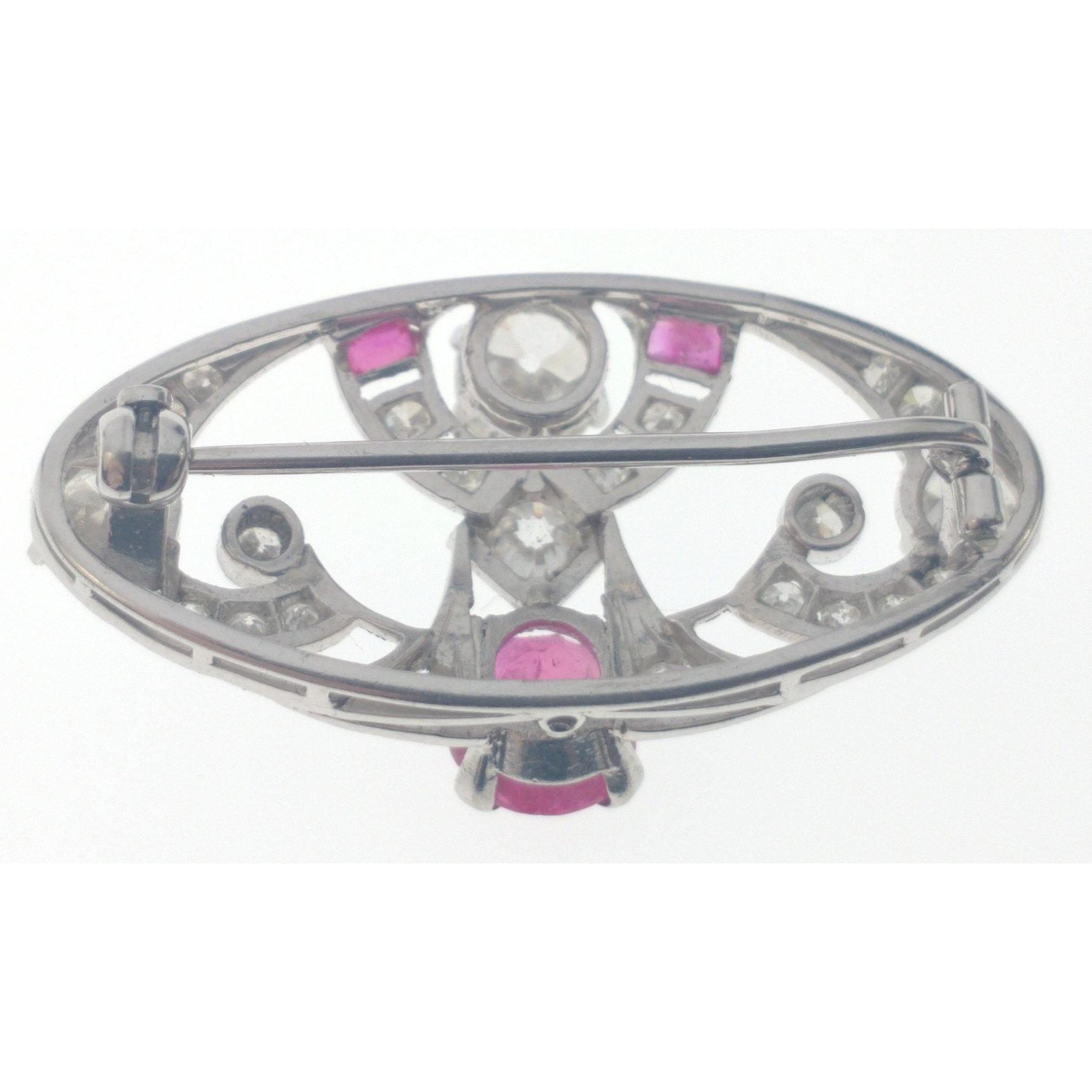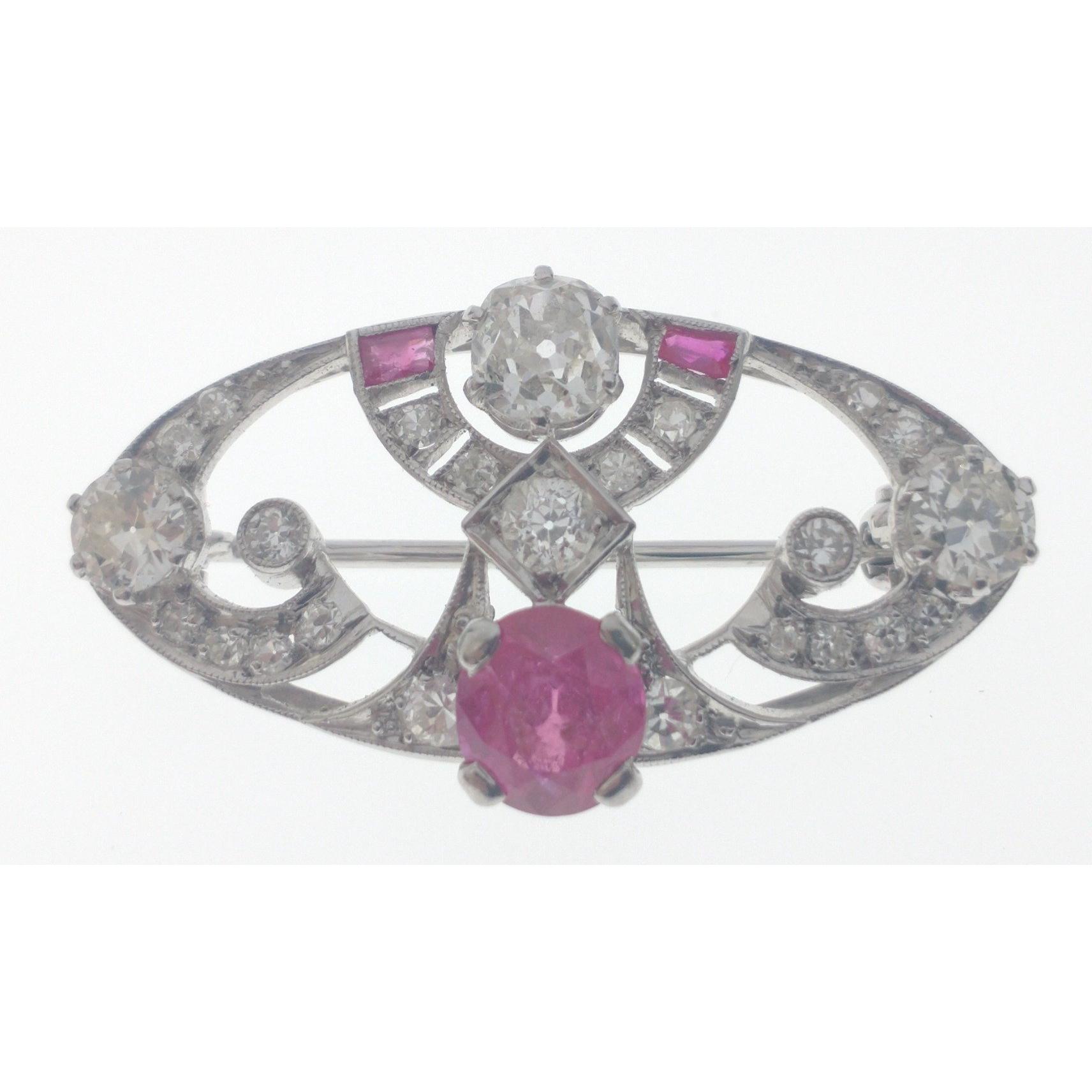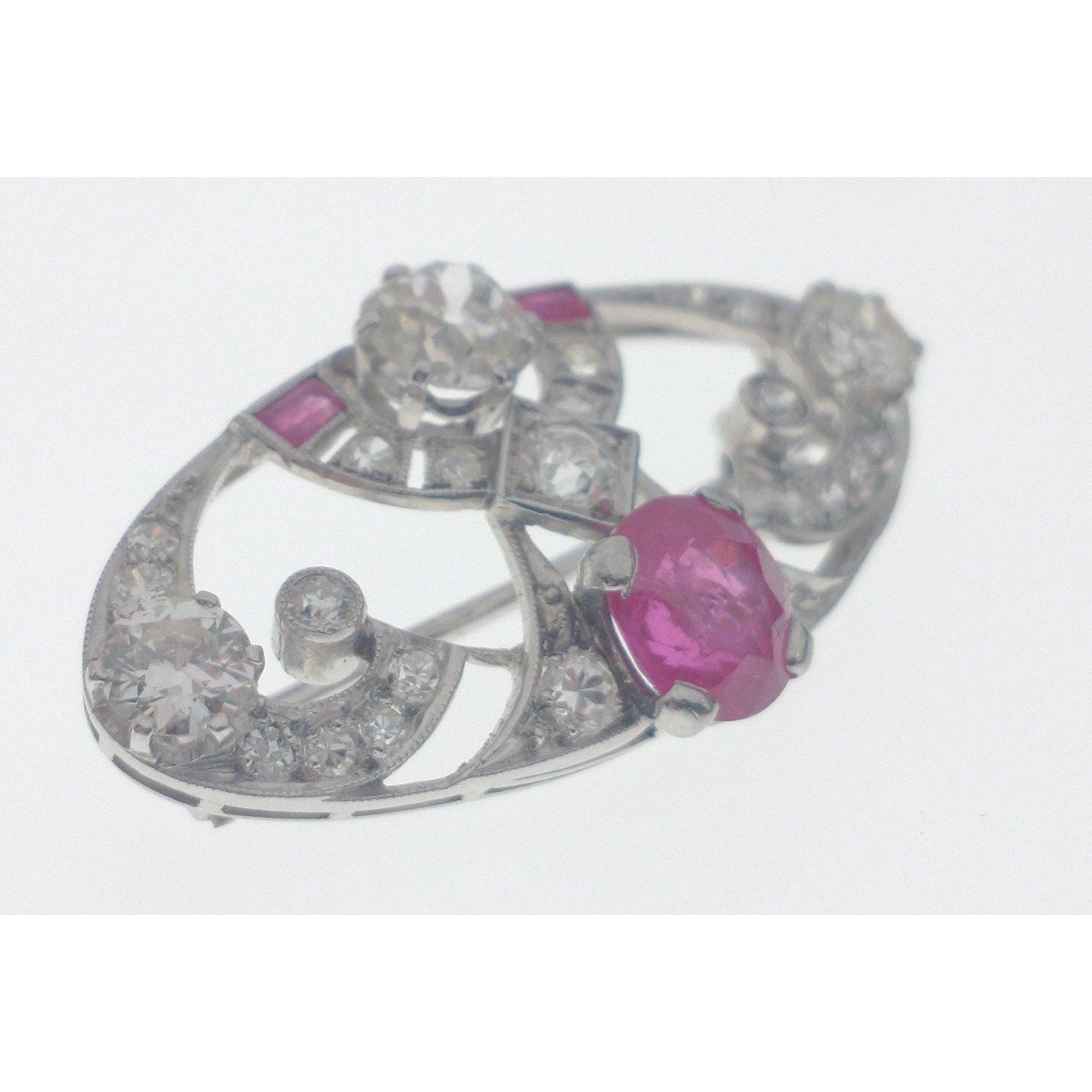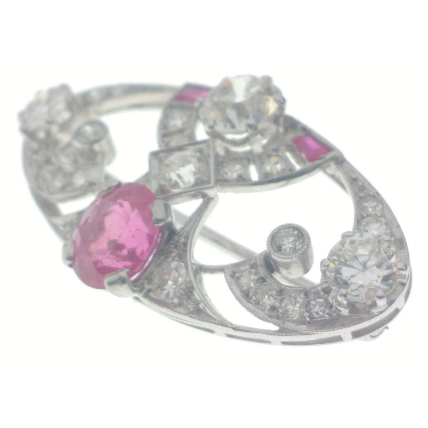 A VINTAGE DIAMOND encrusted 'white metal' pin BROOCH with a central pink stone (0.5cm diameter) length 3.5cm 6.25g gross weight