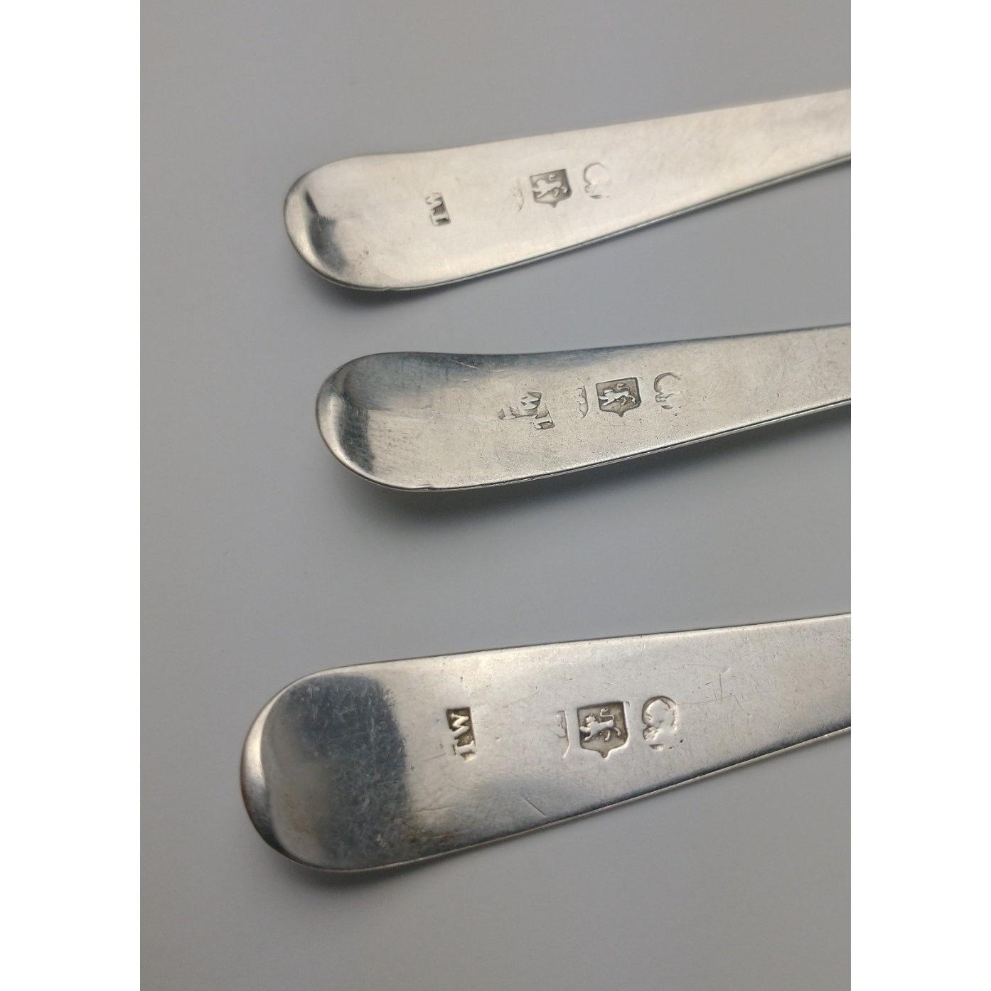 A set of six silver hallmarked TEASPOONS (marks well-worn but possibly Newcastle) by silversmith THOMAS WATSON, length 14.5cm, gross weight 76g.Approx 6 pieces