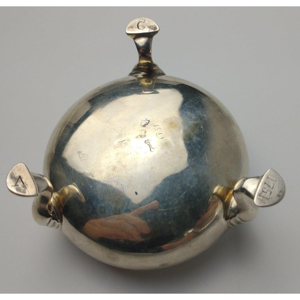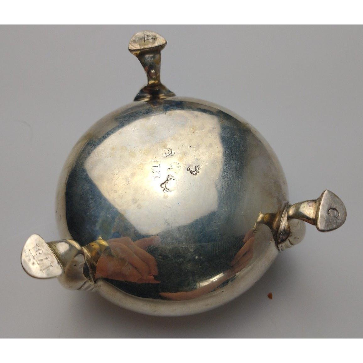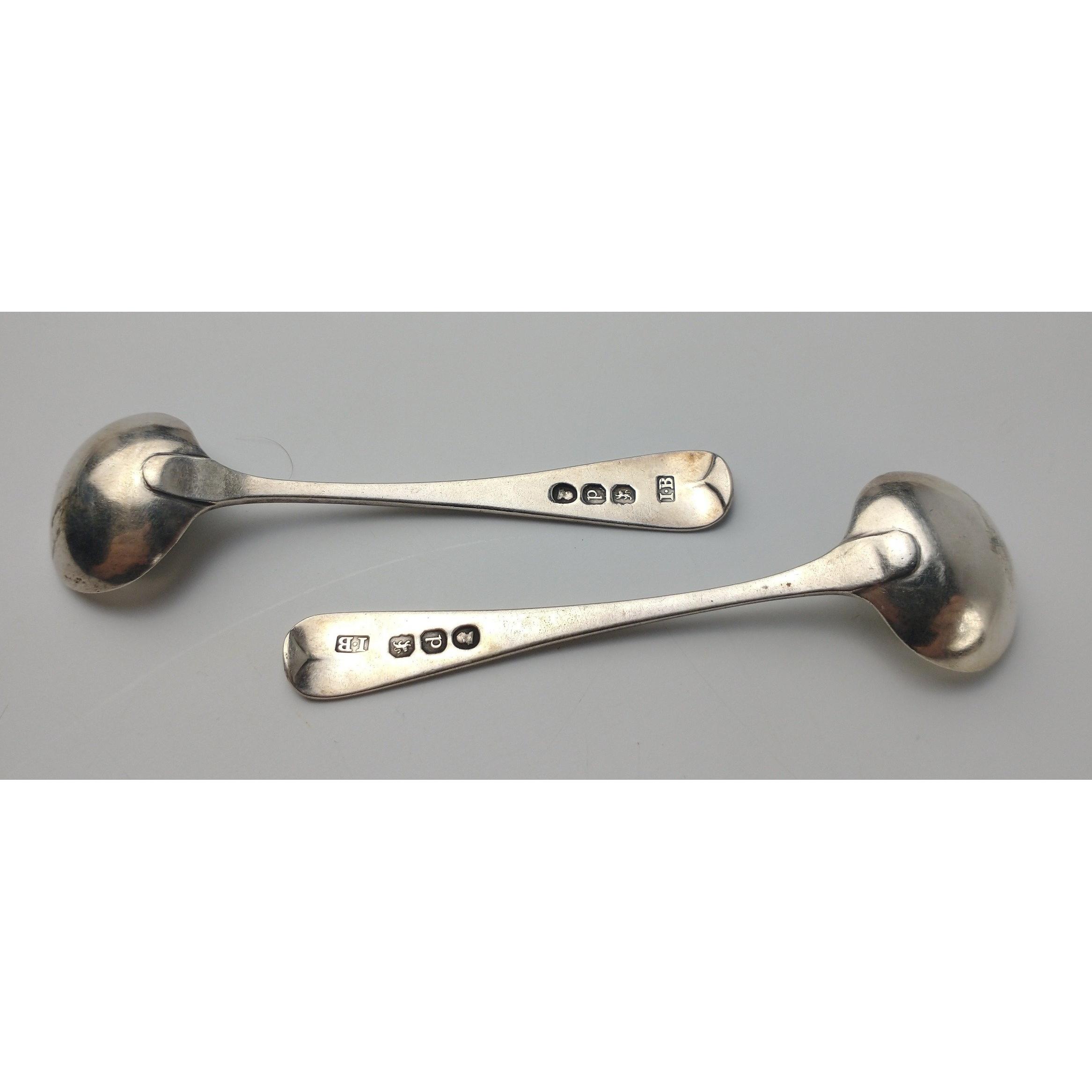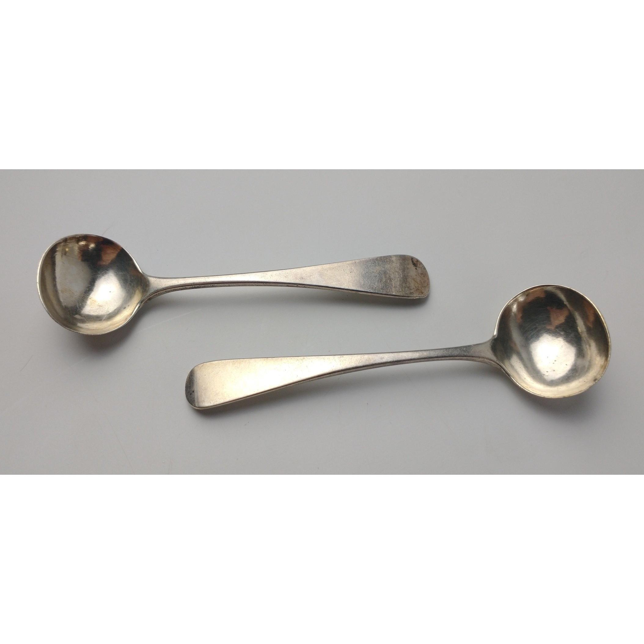 A pair of London hallmarked silver SALTS, hallmark indistinct, marked to base of feet initials A,C and 1751 diameter 7cm, height 4cm, and a pair of SALT SPOONS hallmarked London 1819, length 9cm, gross weight 140g.
