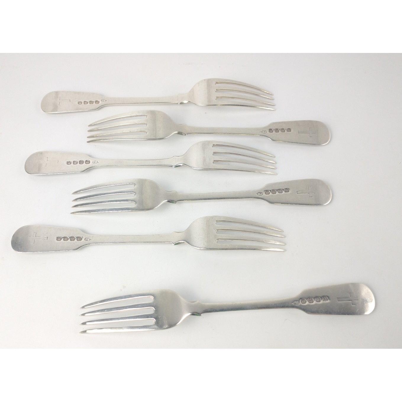 Six London silver hallmarked 1819 forks by silversmith PAUL STORR length 17cm, gross weight 244g.Approx 6 pieces