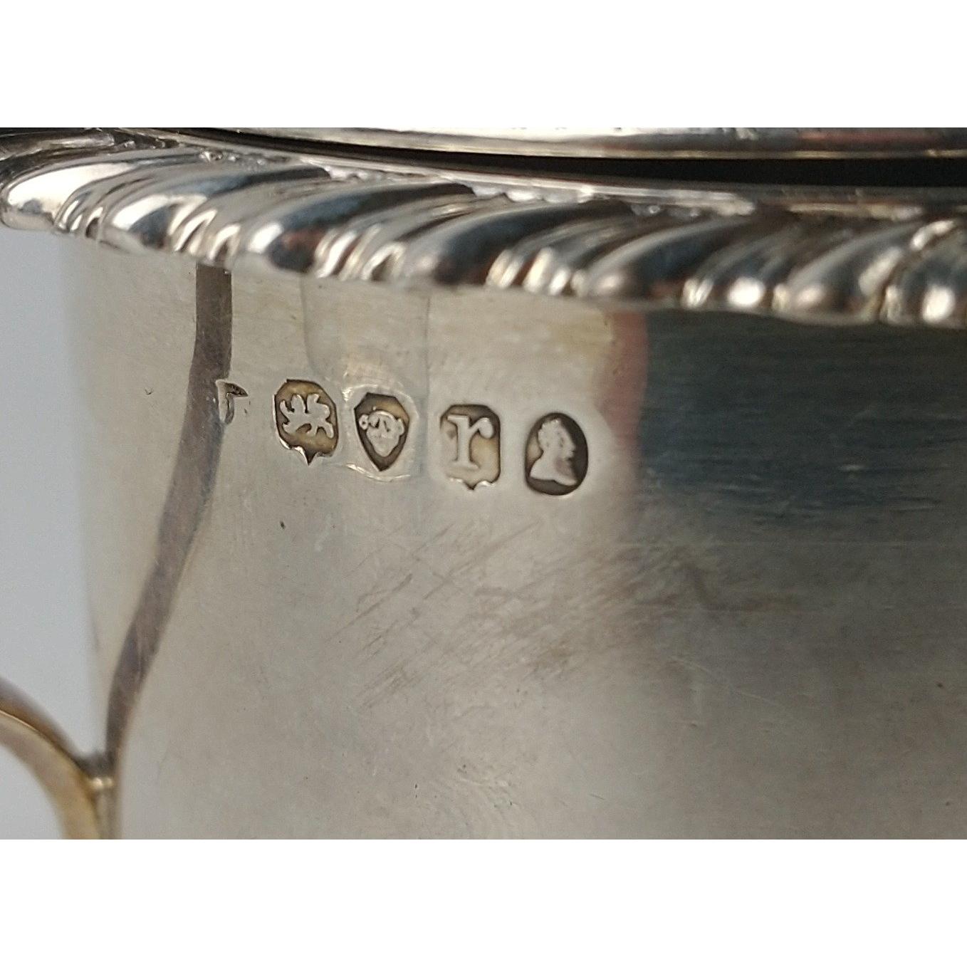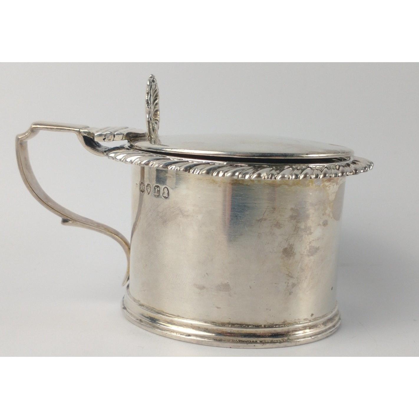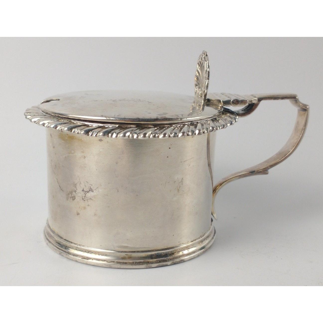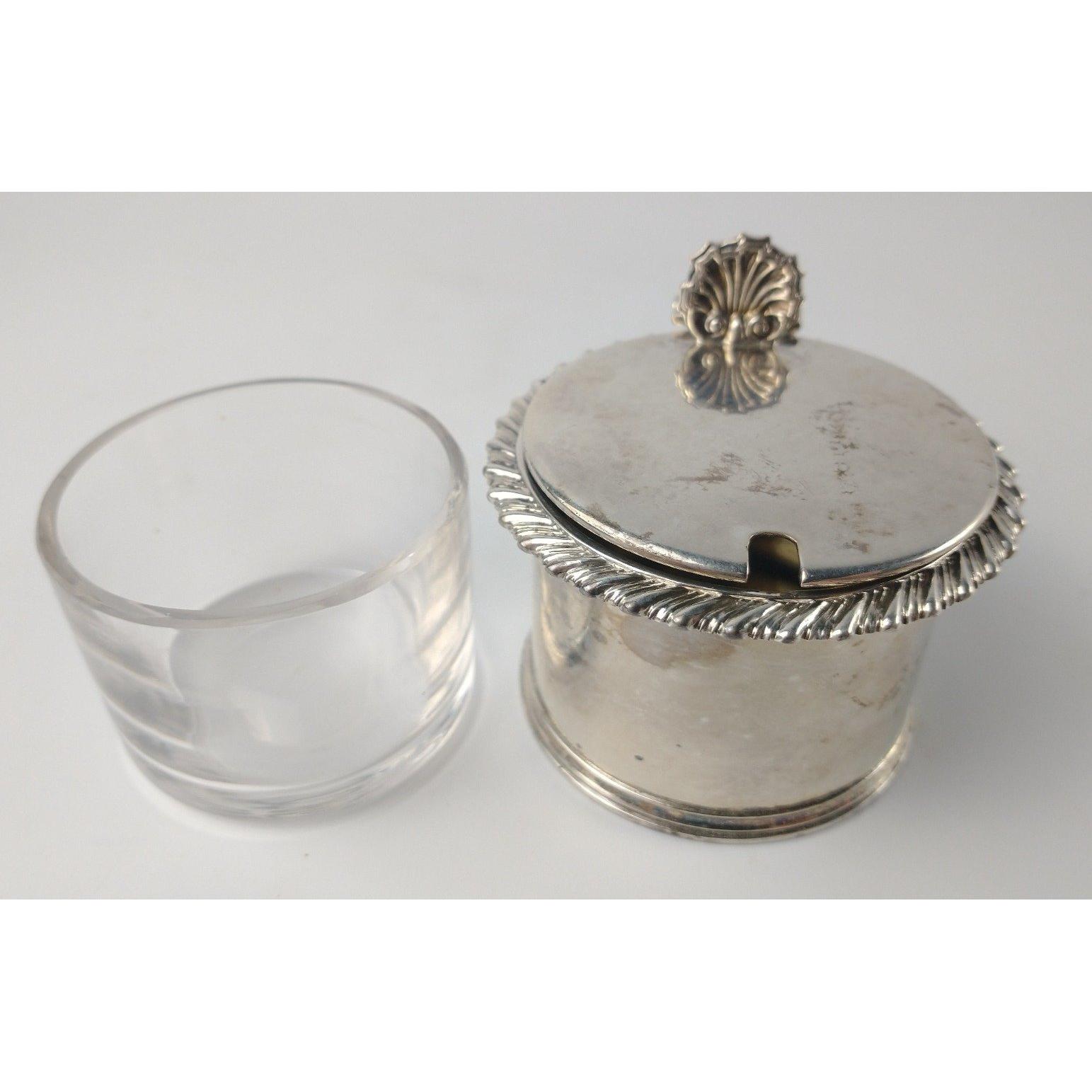 A London silver hallmarked 1832 MUSTARD POT with clear glass liner, 5cm x 7.5cm diameter, 134g silver weight only