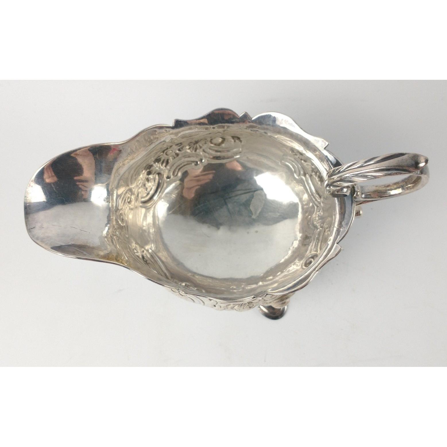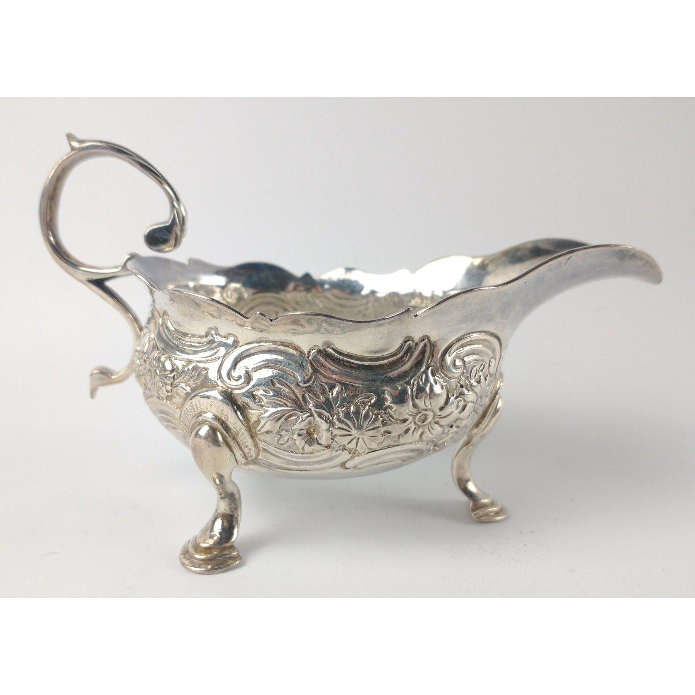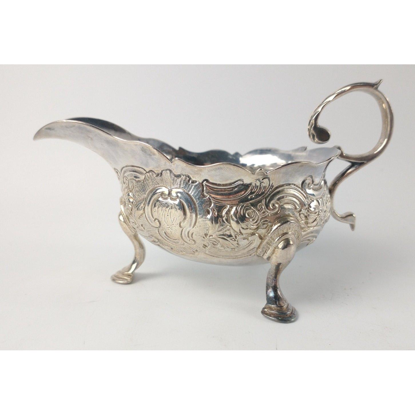 A London silver hallmarked 1751 SAUCEBOAT by silversmith SAMUEL MERITON, 12cm x 7cm x 7cm, gross weight 110g.