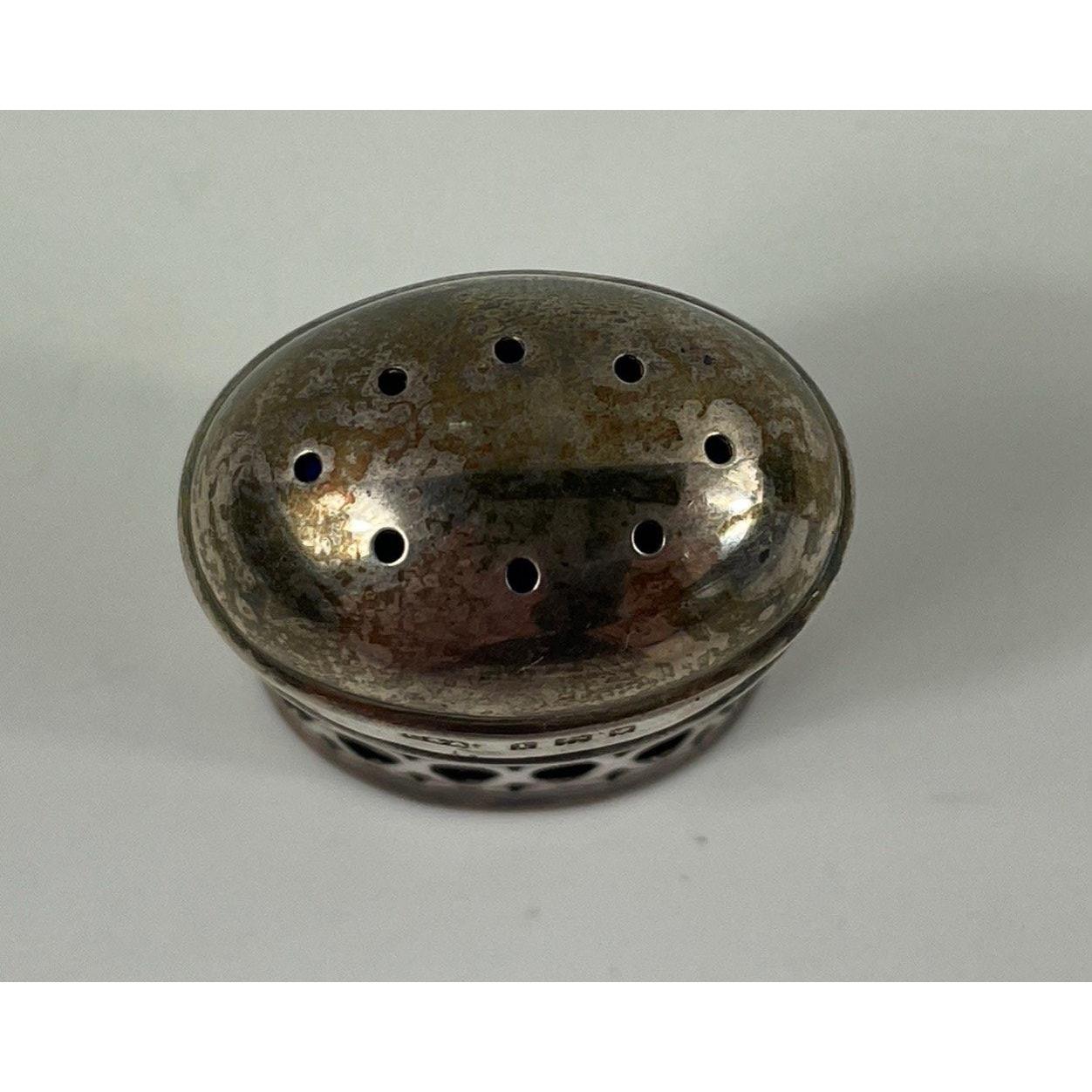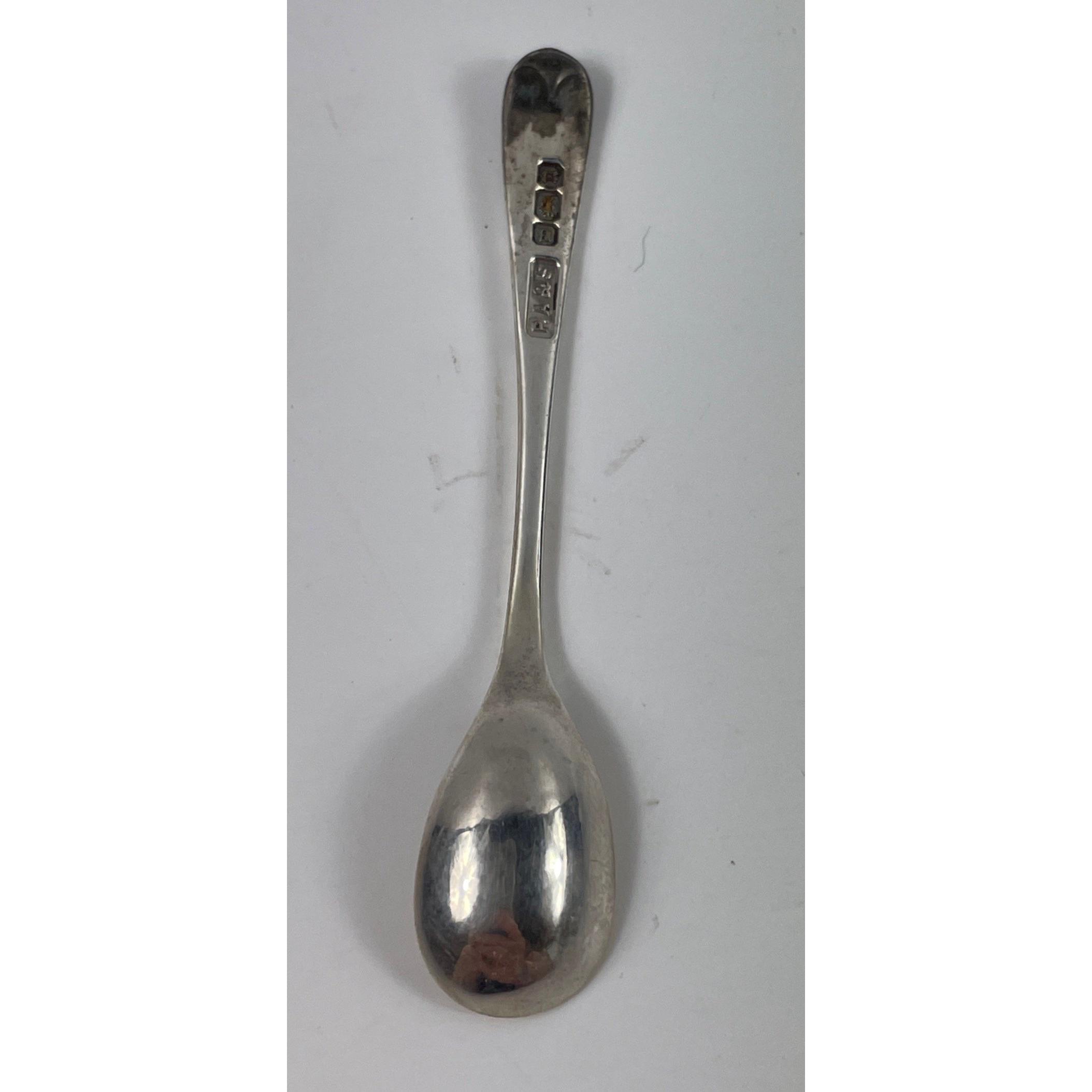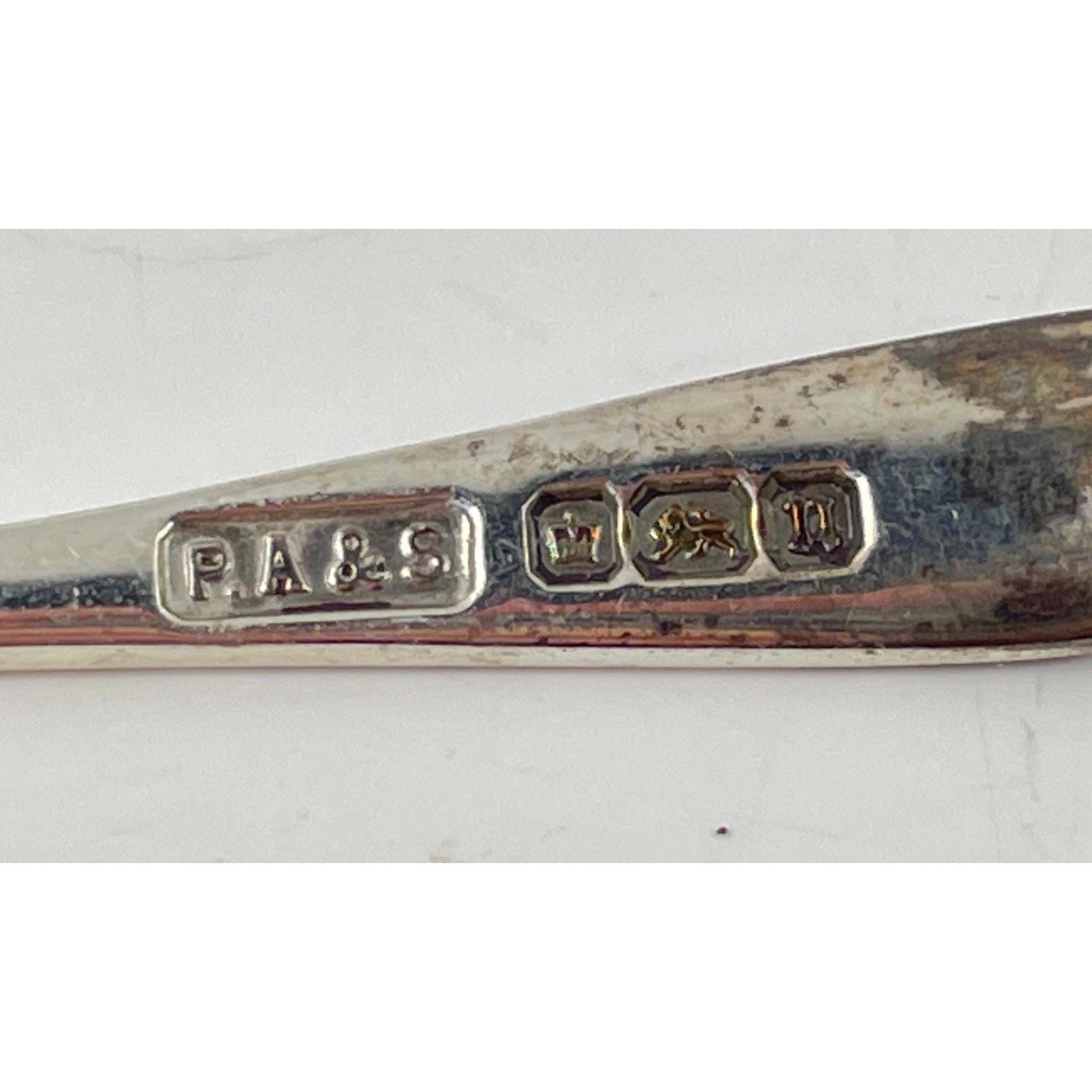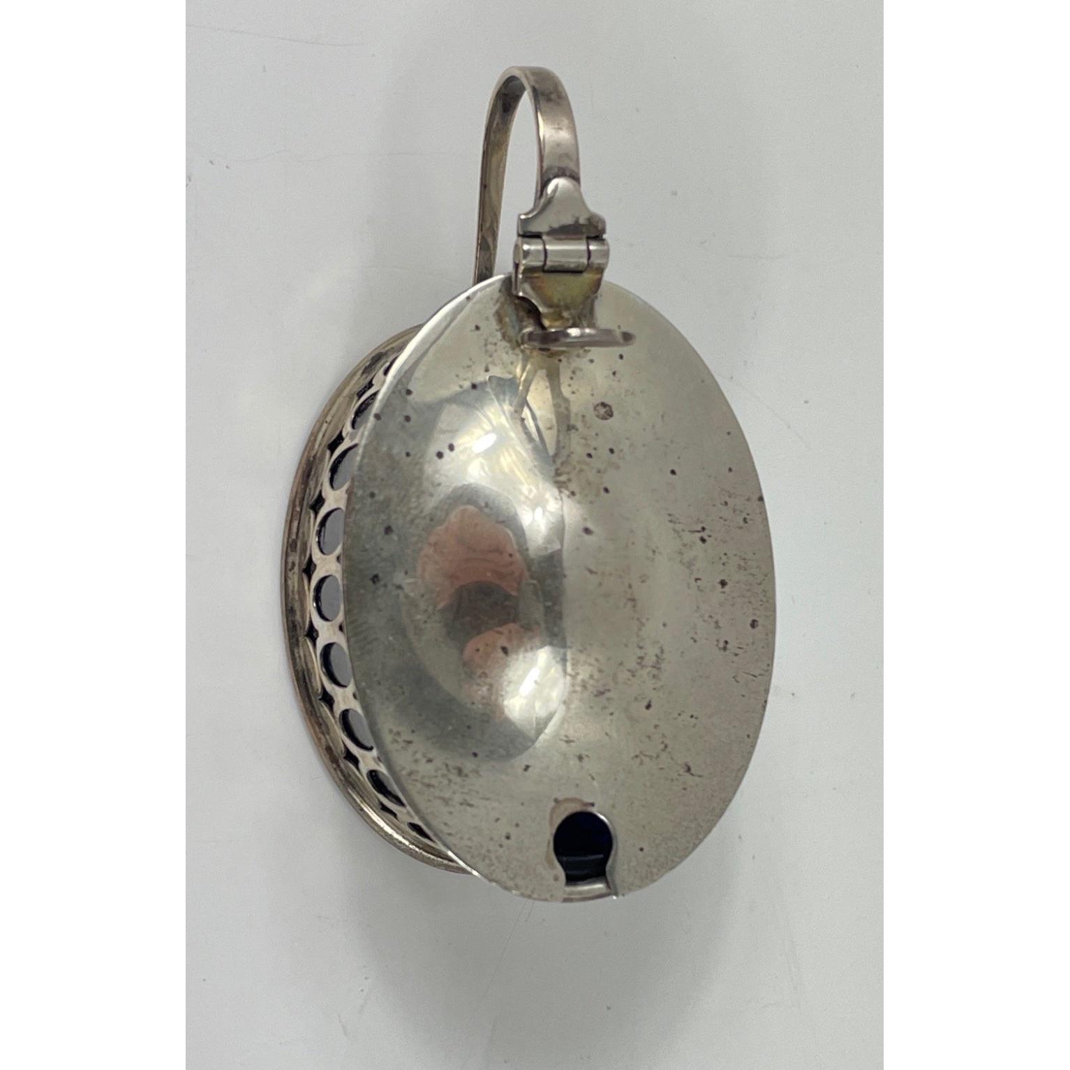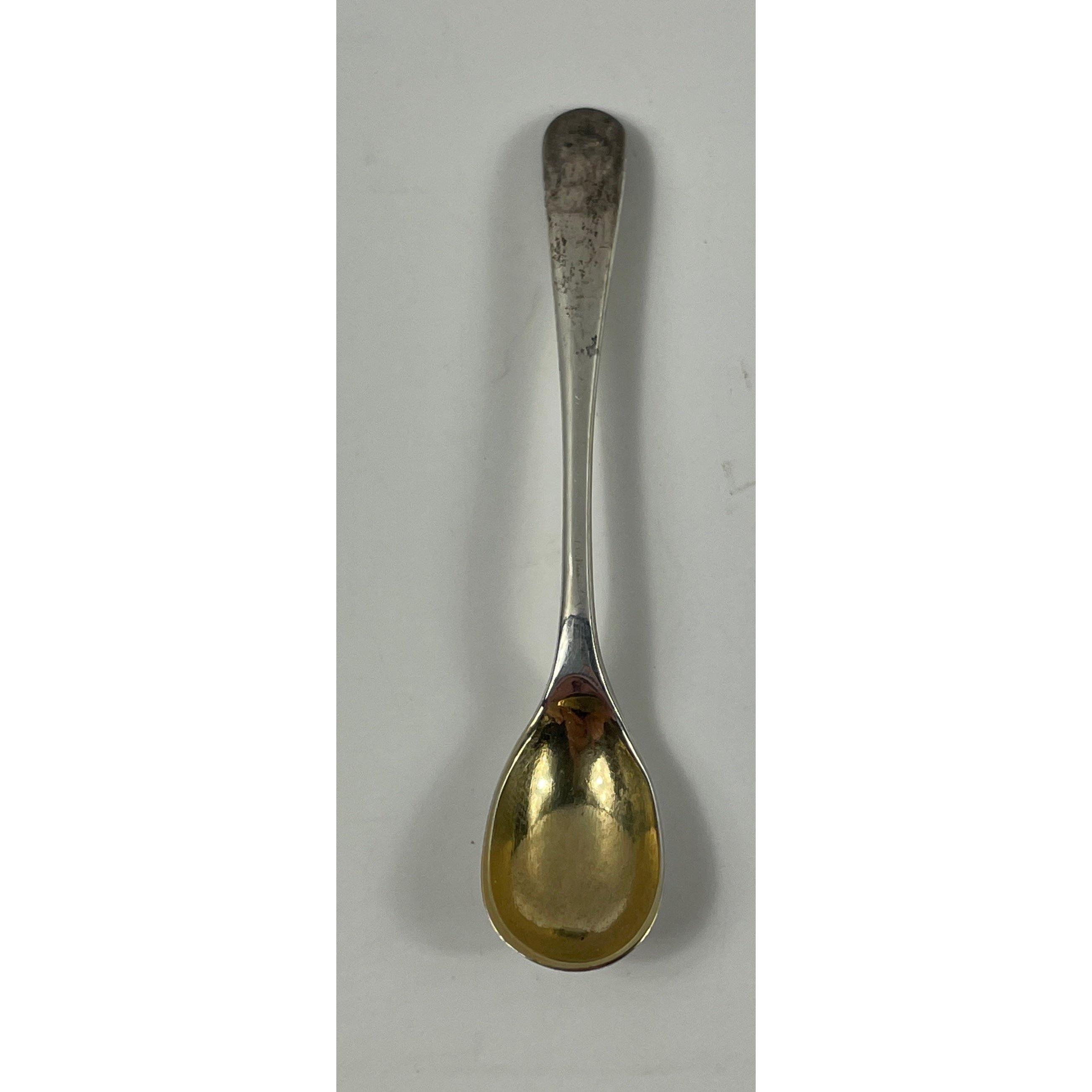 Three items of hallmarked silver CRUETS, the first two being a London 1932 mustard pot (7 x 3 x 4cm) with blue glass liner also salt pot (5 x 3.25cm), also with blue glass liner by silversmith COLLETT & ANDERSON and a MUSTARD SPOON Sheffield 1912, gross weight of silver only 40g