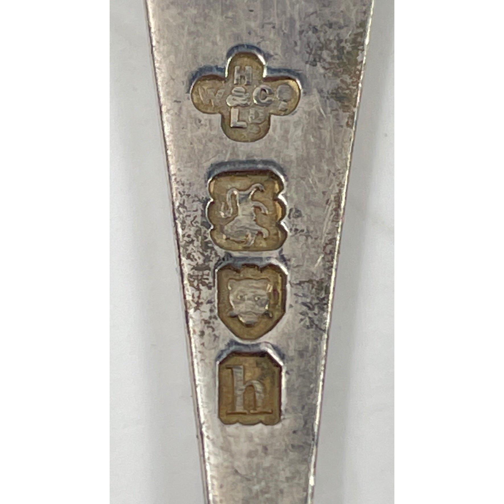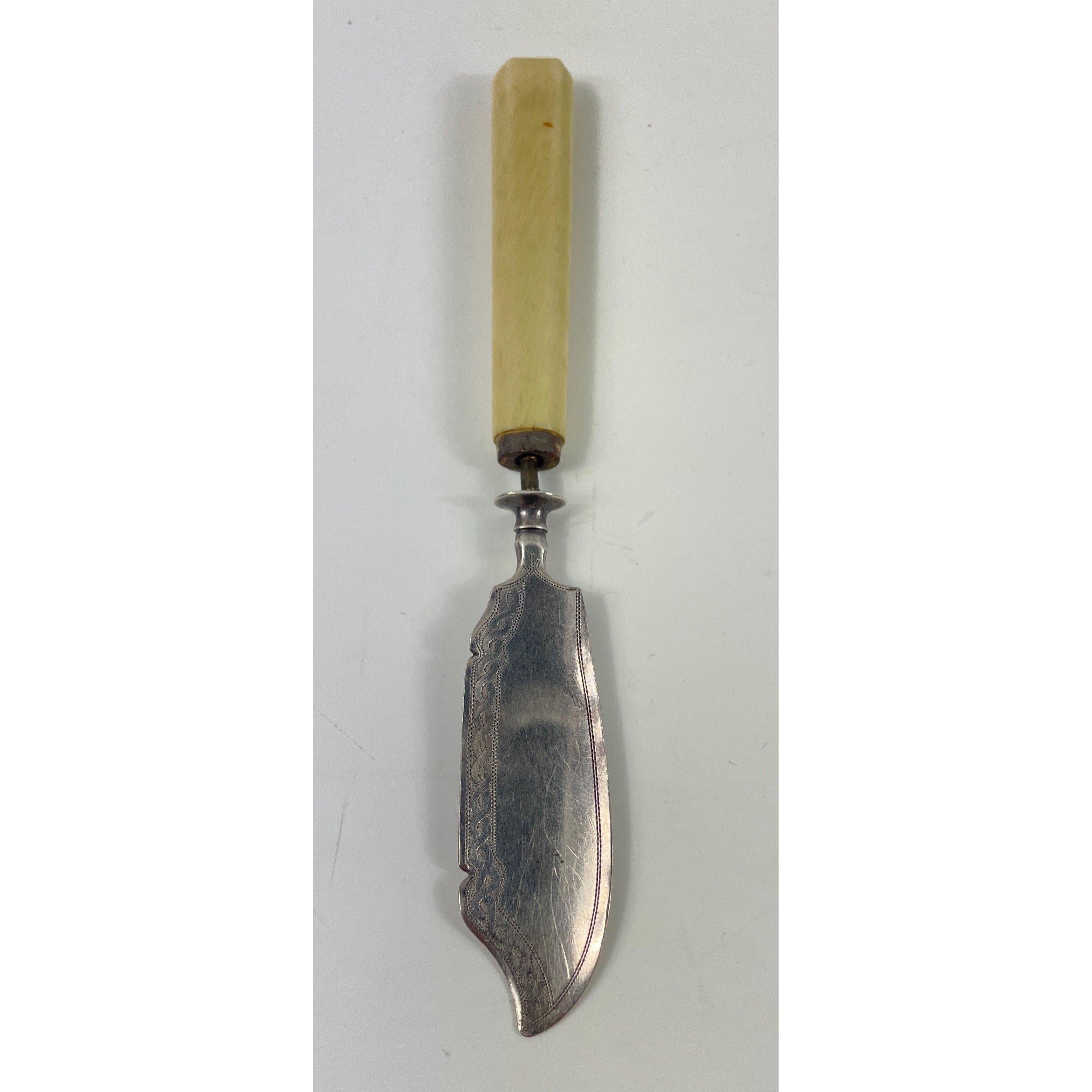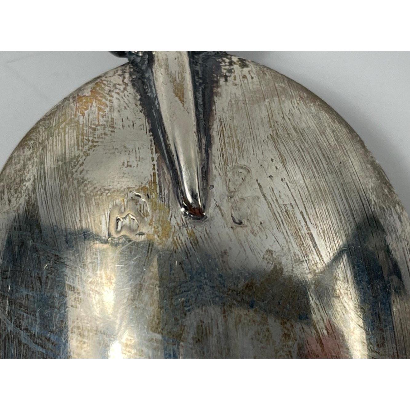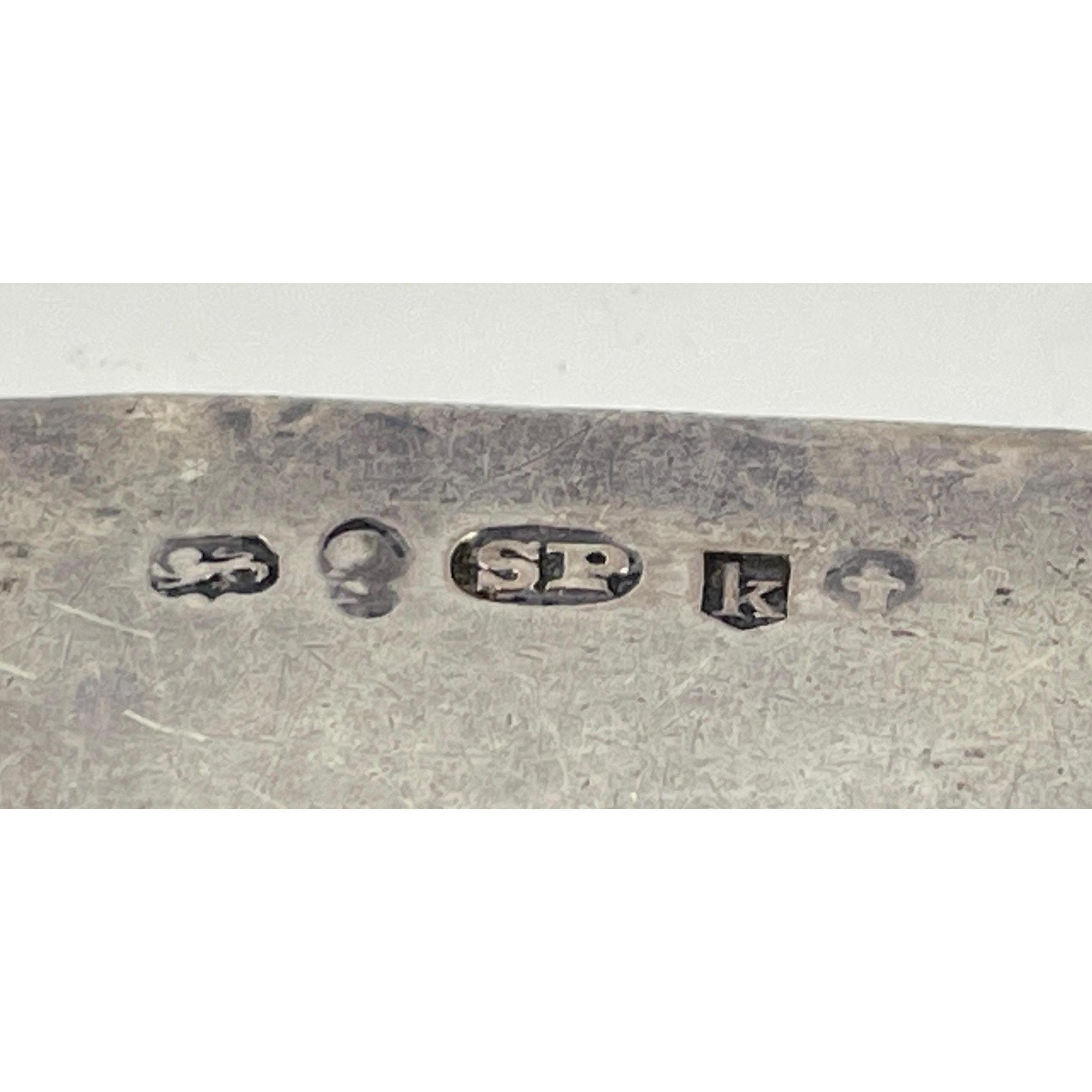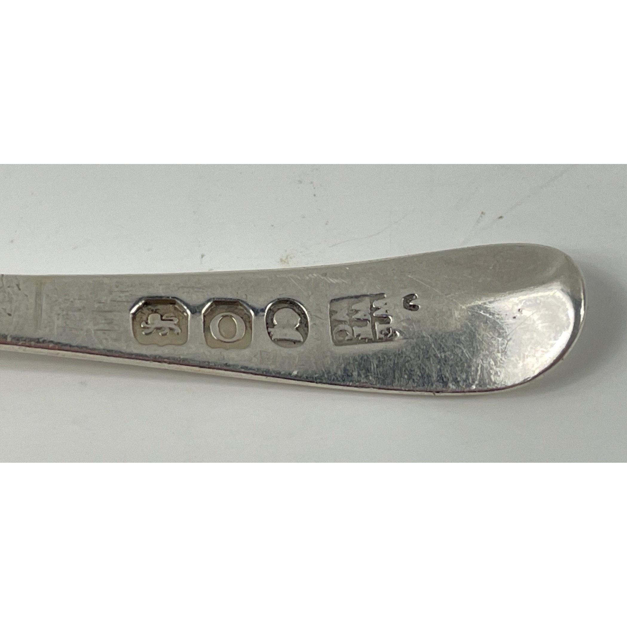 Three pieces of hallmarked silver to include a FISH KNIFE with a broken bone handle, a small condiment LADLE, a BUTTER KNIFE, and a white metal spoon with a highly decorative sailing ship handle and a very small white metal SAUCEBOAT gross weight of silver 140g.