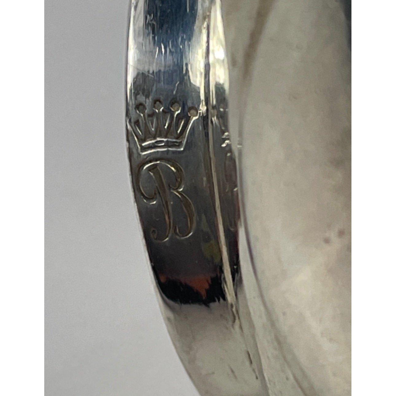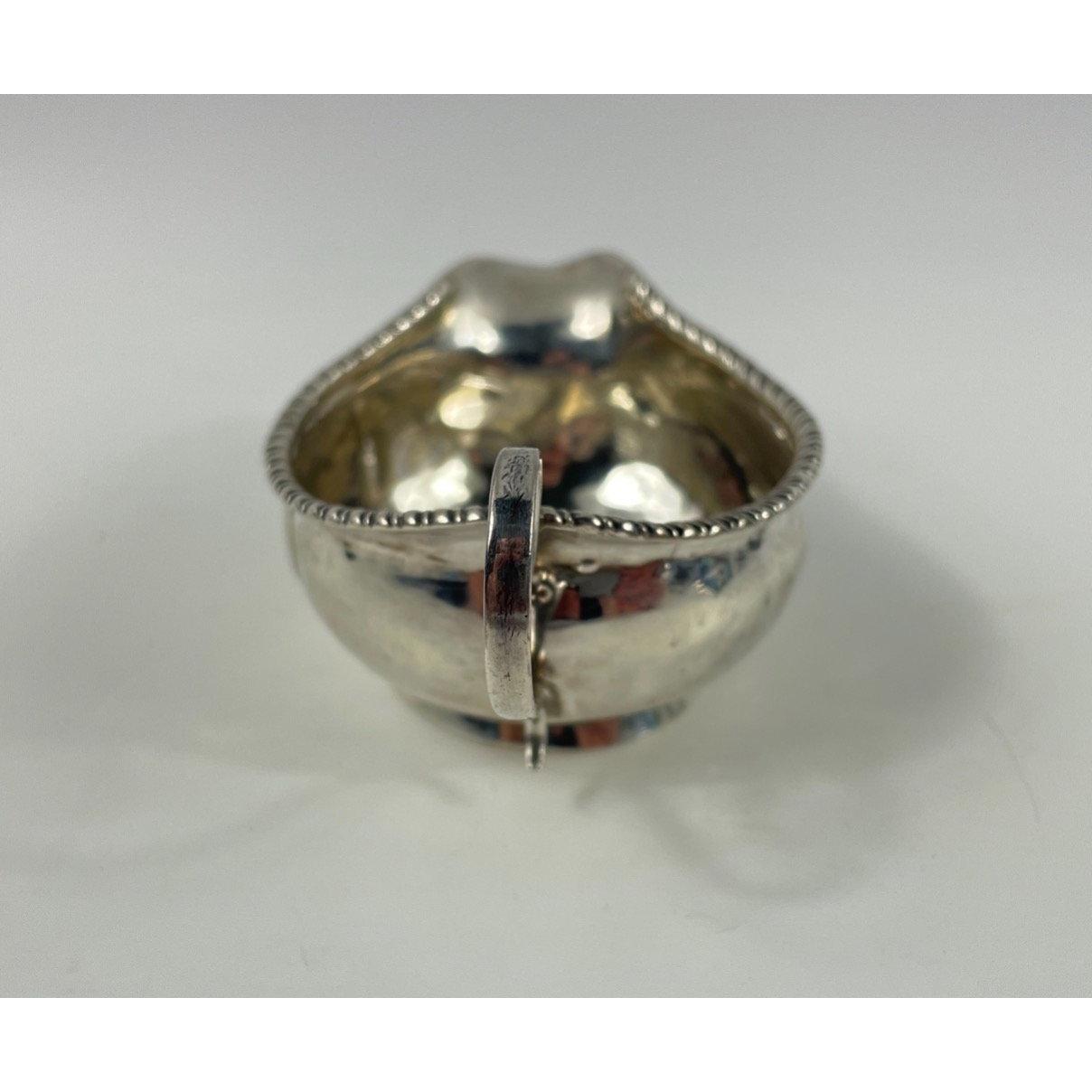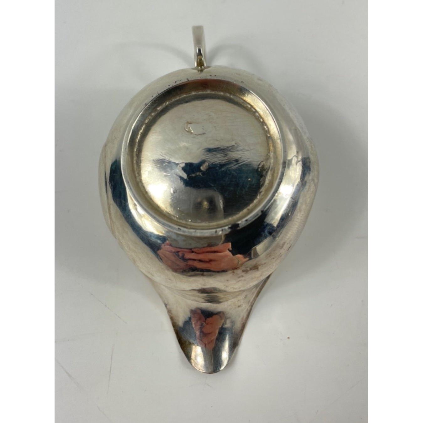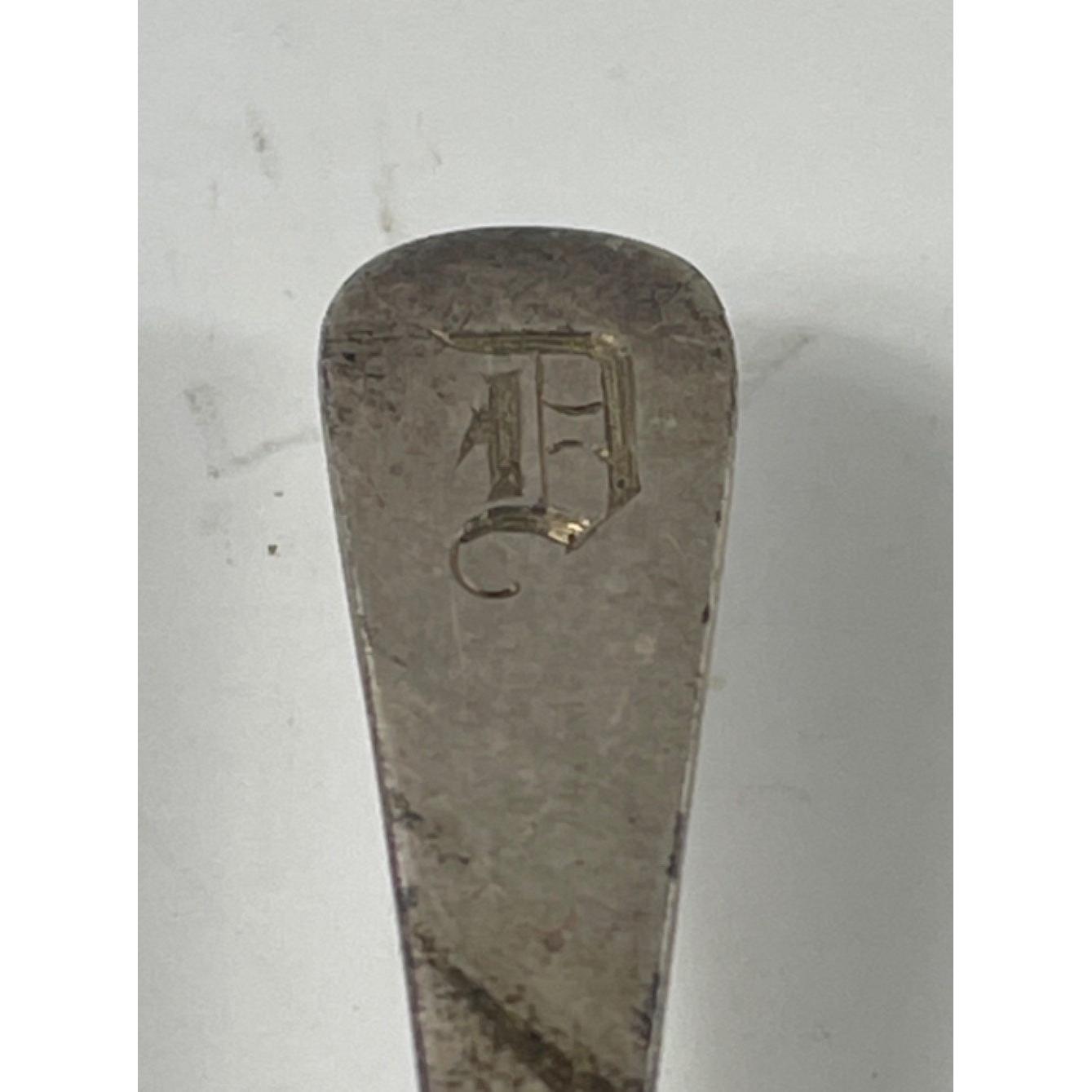 Three pieces of hallmarked silver to include a FISH KNIFE with a broken bone handle, a small condiment LADLE, a BUTTER KNIFE, and a white metal spoon with a highly decorative sailing ship handle and a very small white metal SAUCEBOAT gross weight of silver 140g.