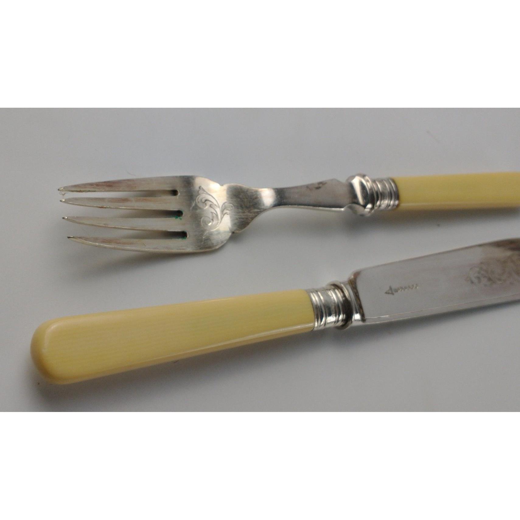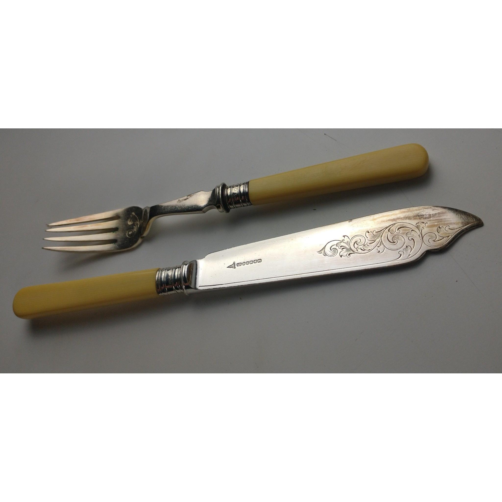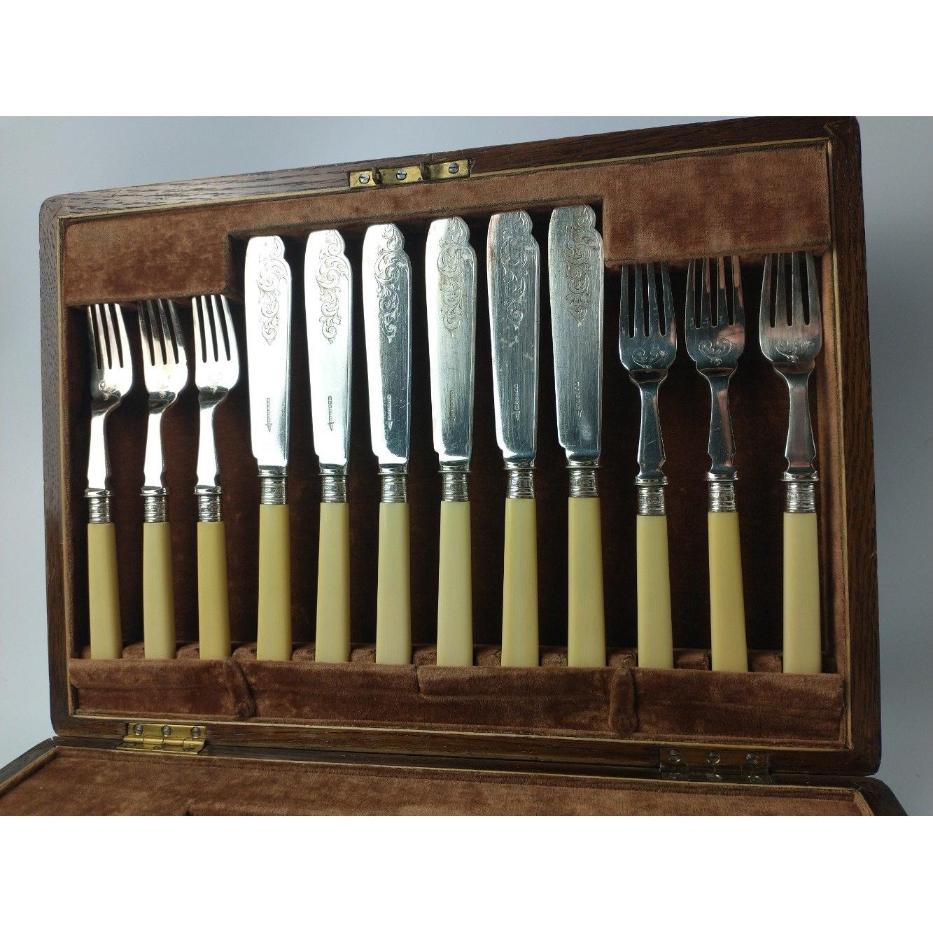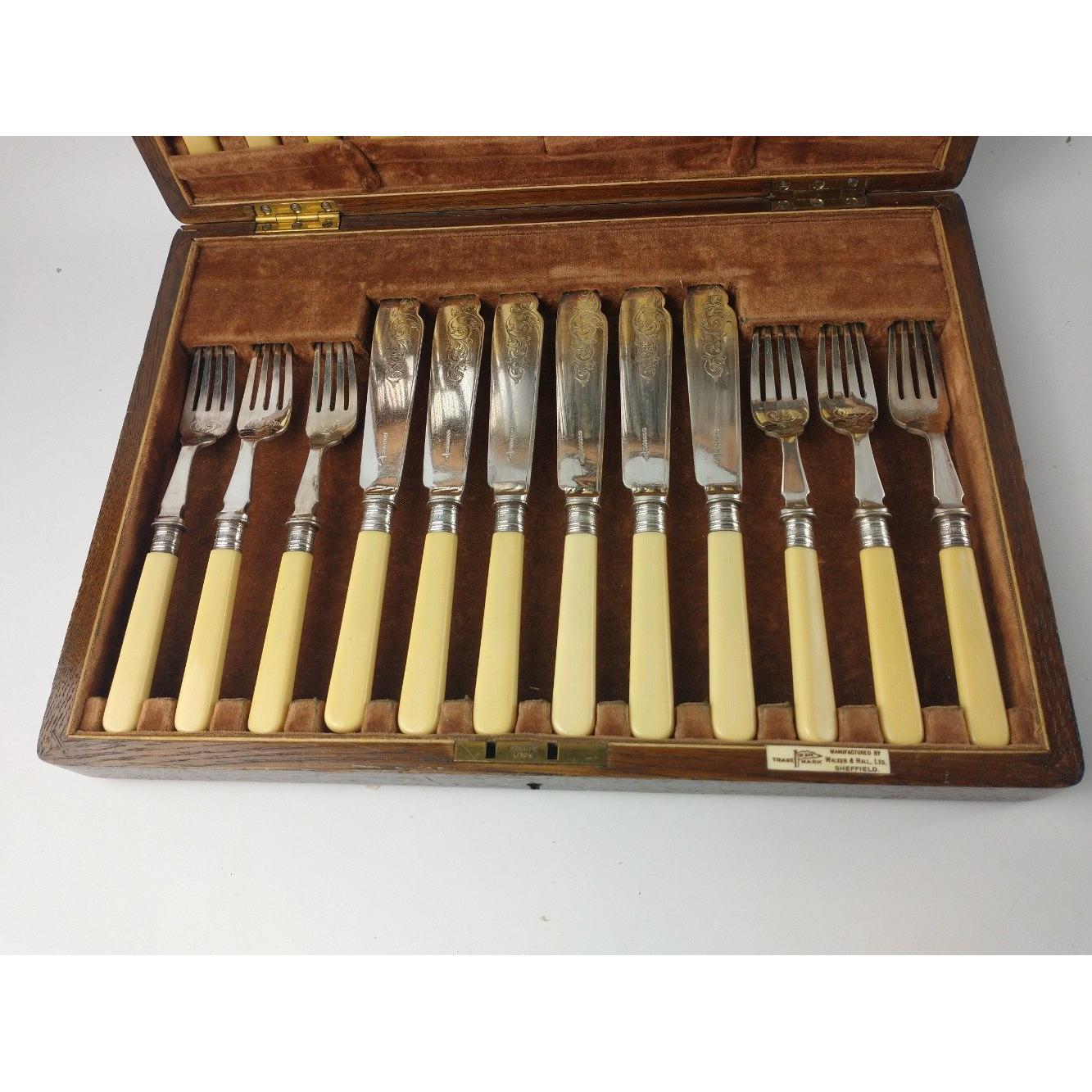 Twelve WALKER & HALL Sheffield bone-handled canteen of FISH KNIVES & FORKS