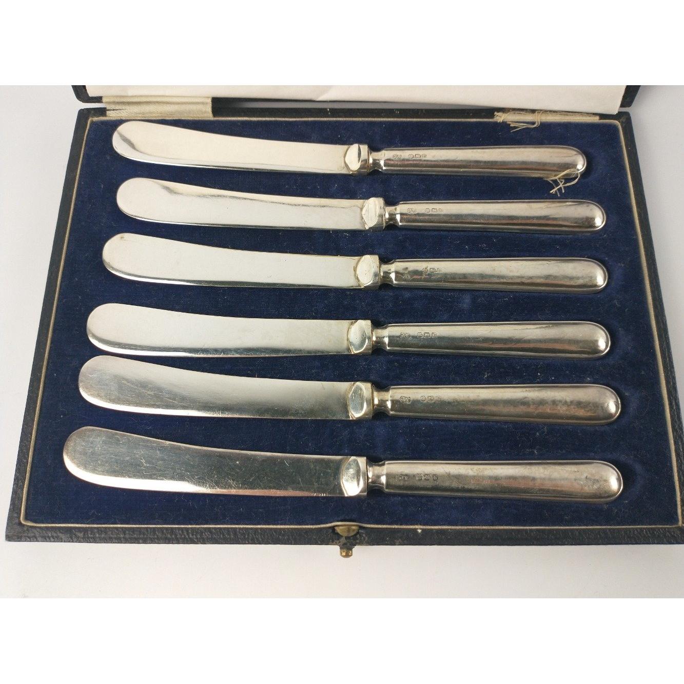 A canteen of six Sheffield 1925 hallmarked handled BUTTER KNIVES by silversmith YEATS, length 16cm, gross weight 163G.Approx 6 pieces