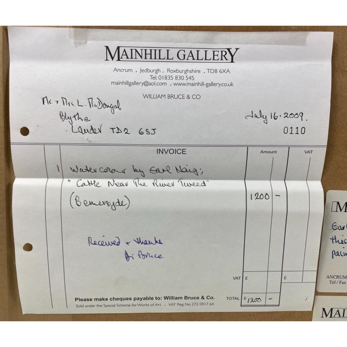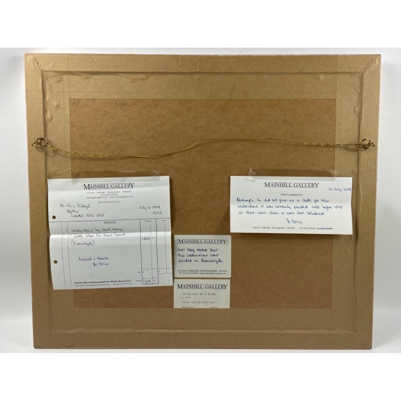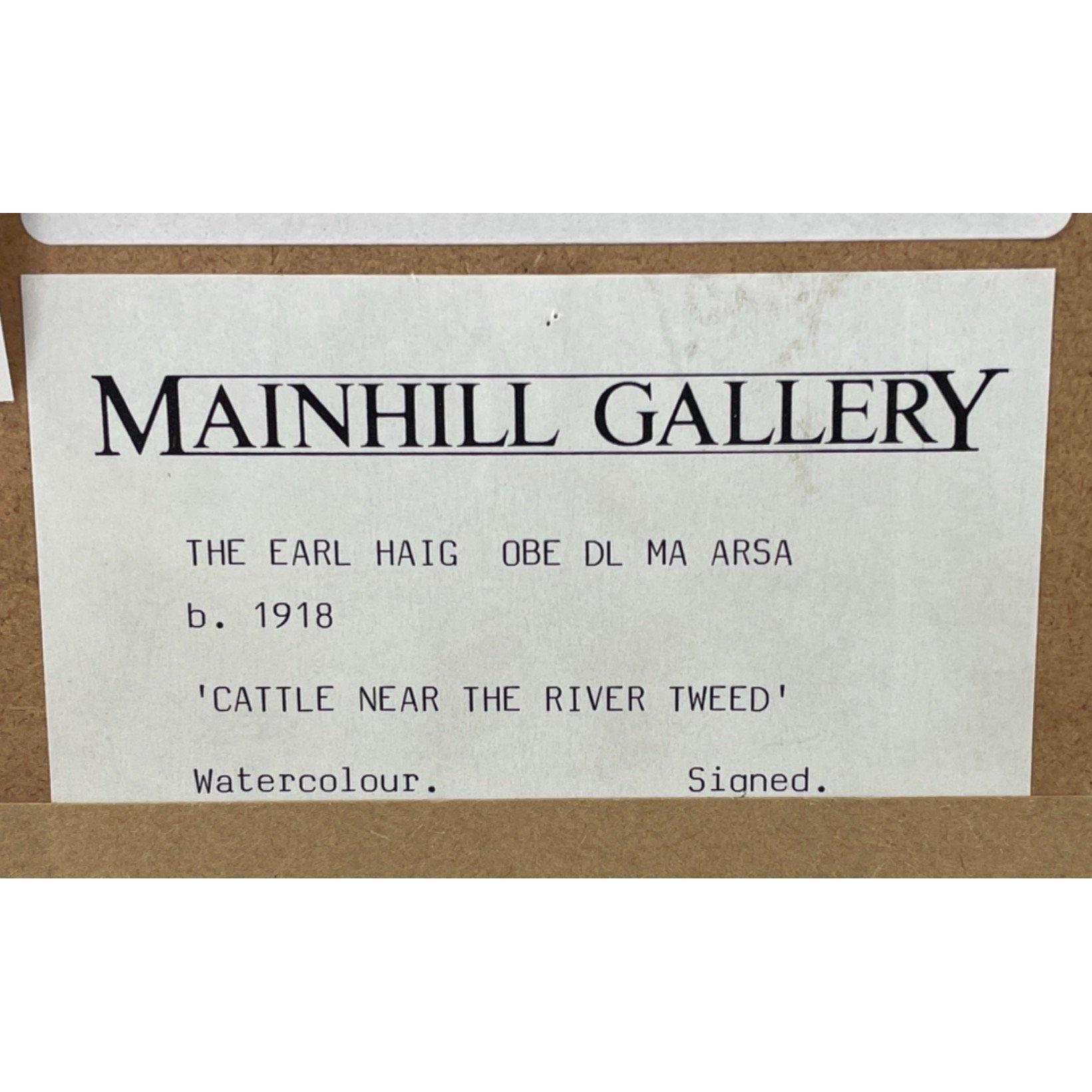 A framed watercolour by HAIG "Cattle near the River Tweed (Bemersyde)", visible canvas 37 x 27.5cm, frame size 60 x 52cm, on verso a receipt from Mainhill Gallery for £1200 July 2009 and a note that the work was painted before 1998 when it was last exhibited.