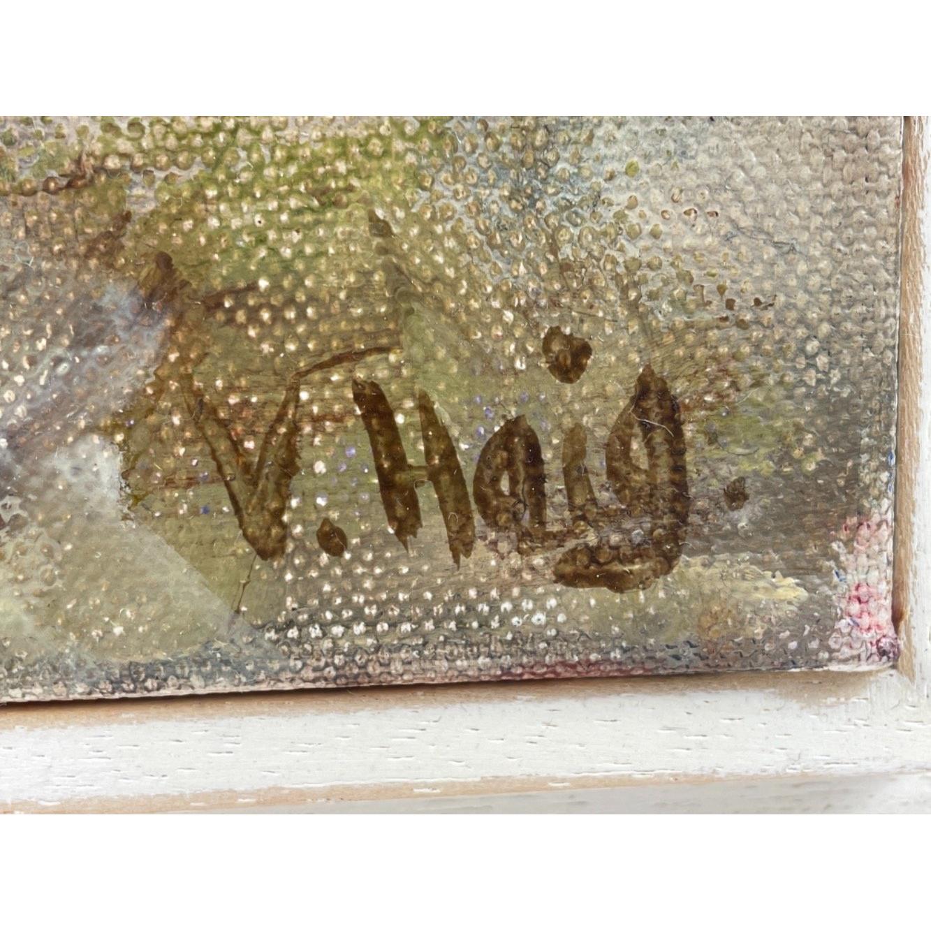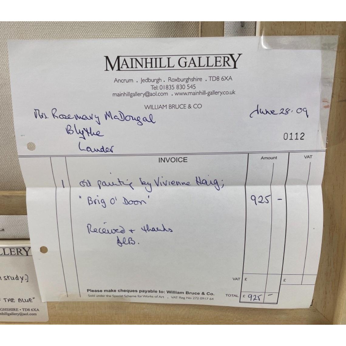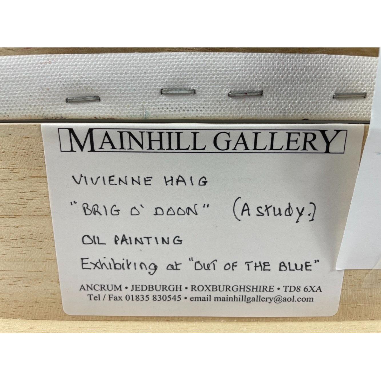A framed oil painting by VIVIENNE HAIG, "Brig O'Doon (a study)", visible canvas 40 x 40cm, frame size 56 x 56cm, on verso Mainhill Gallery receipt for £925 June 2009 and labelled "Oil painting exhibiting at 'Out of the Blue'".