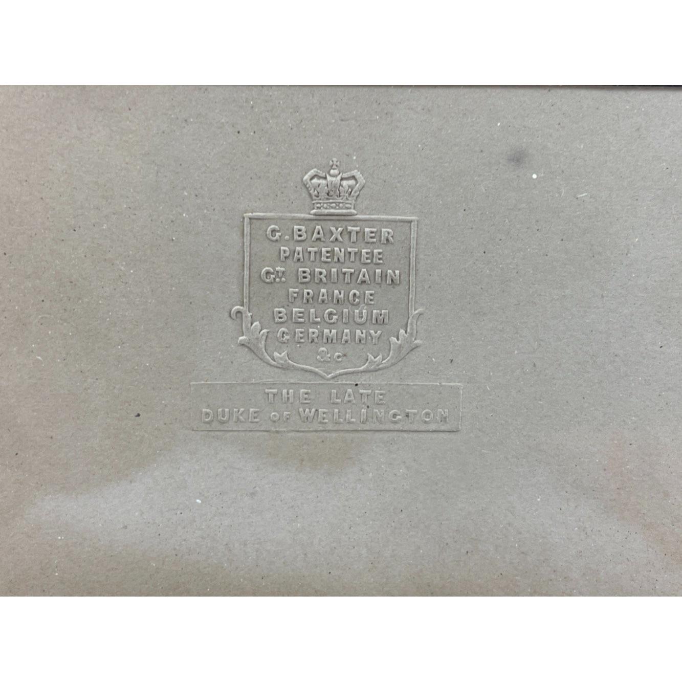 An ANTIQUE framed portrait of the late Duke of Wellington, paper embossed by G BAXTER PATENTEE OF Britain, France, Belgium, Germany, picture size 9.5 x 7cm, frame size 26 x 22cm
