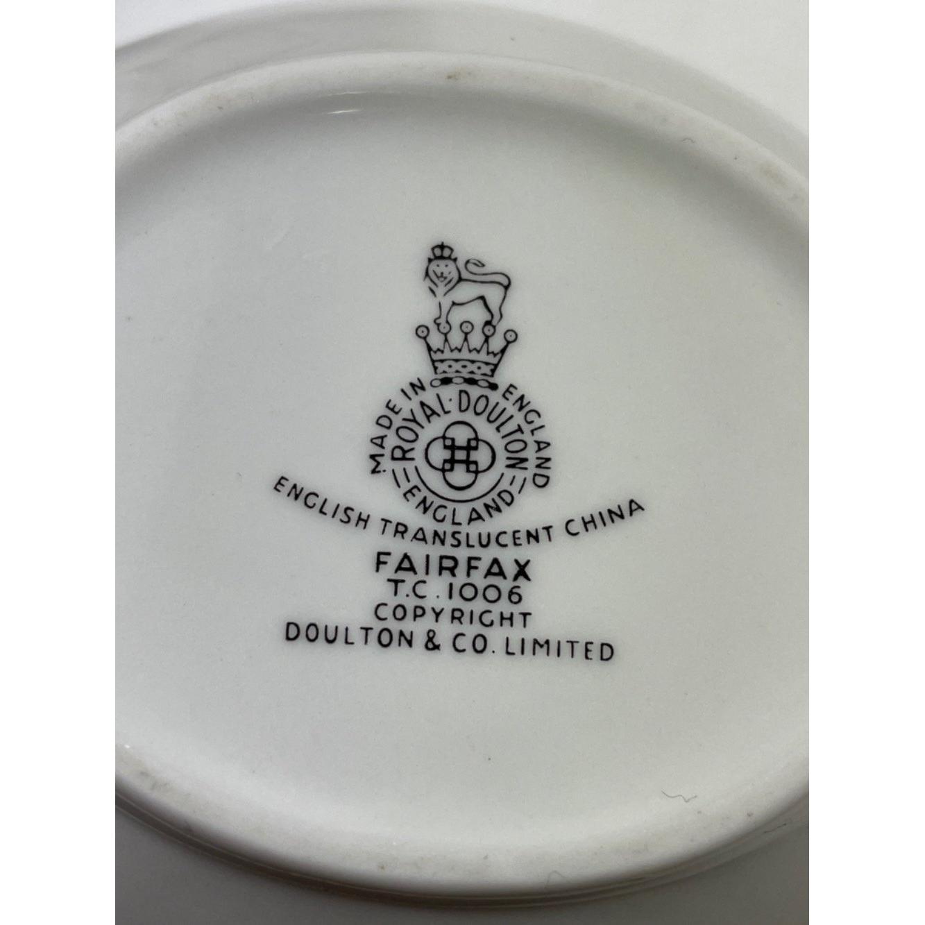 A ROYAL DOULTON FAIRFAX dinner service to include 12 plates (27cm), 12 plates (20cm), 12 bowls (13.5cm), 12 bowls (17cm), 10 saucers (13cm), 5 saucers (15cm), 8 saucers (15.5cm), 12 large coffee/capuccino cups (10cm dia), 12 small cips (7cm), 2 sauceboats with underplates, 1 milk jug (13cm approx), 1 creamer (10cm approx), 1 sugar bowl (11cm), 1 sugar bowl (9cm),
