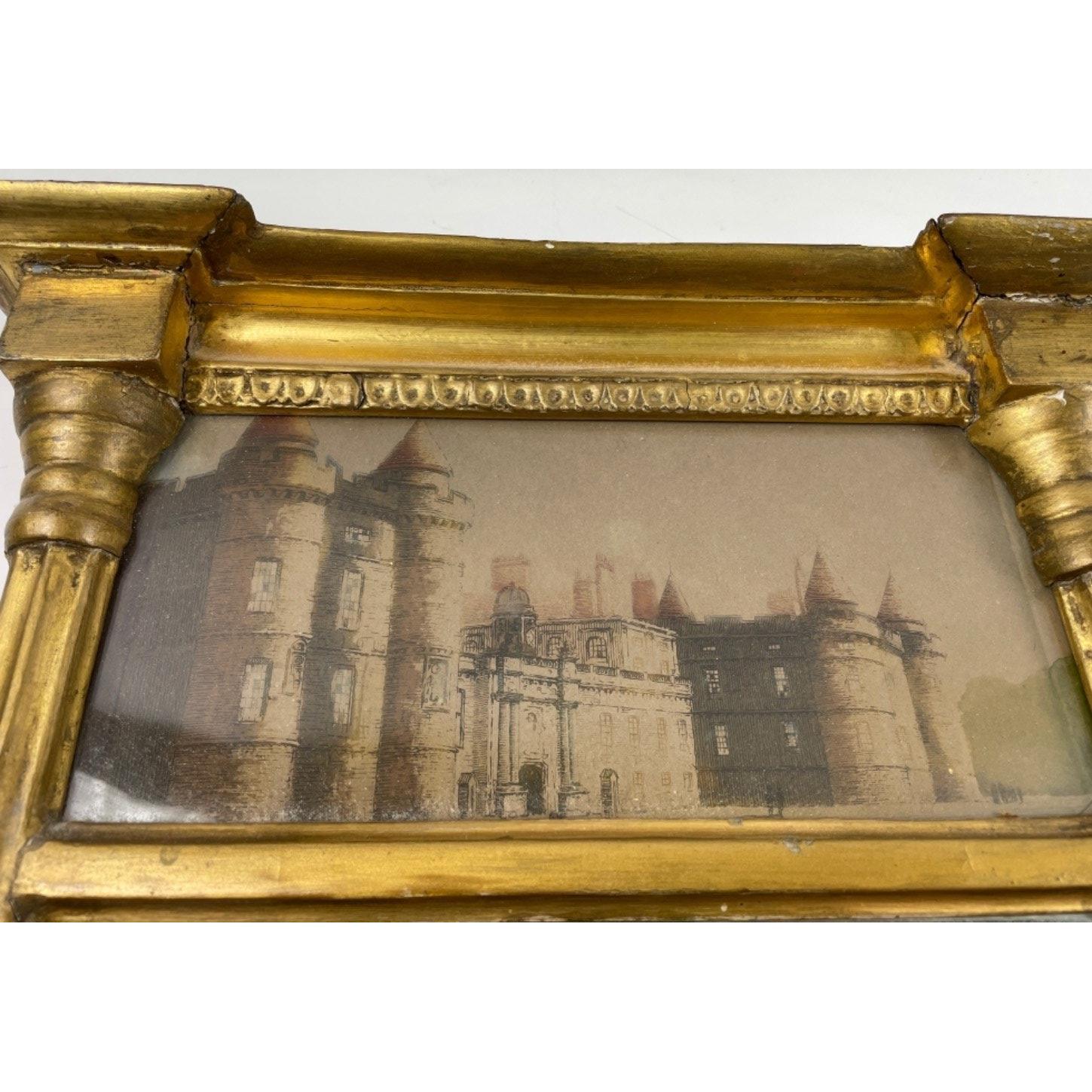 A late VICTORIAN gilt frame medium sized feature wall mirror with a picture under behind glass of HOLYROOD dimensions 54cm high x 30cm width (total frame)