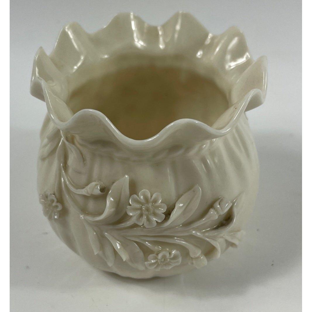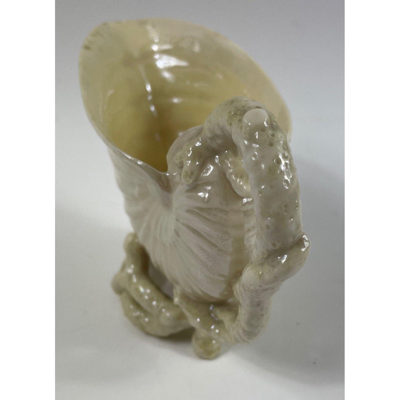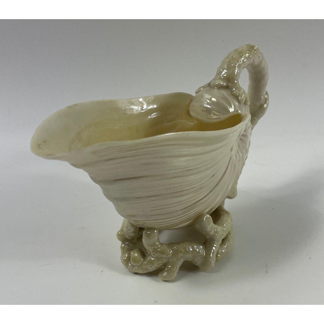 Two pieces of early BELEEK (black stamp 1891 -1926), one a scalloped-edged bowl (8cm dia), the other a conch-shaped lustre jug (14cm x 7.5cm high) on a coral style baseApprox 2 pieces