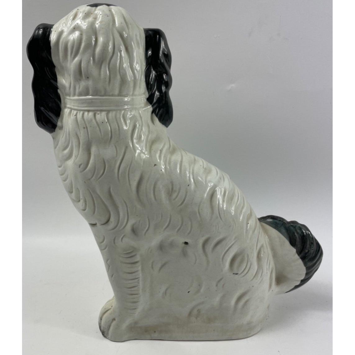 A black and White Wally dog with No 1 stamped to base, with hand painted gold highlighted collar and lead dimensions 32cm high x 29cm width x 10cm depth