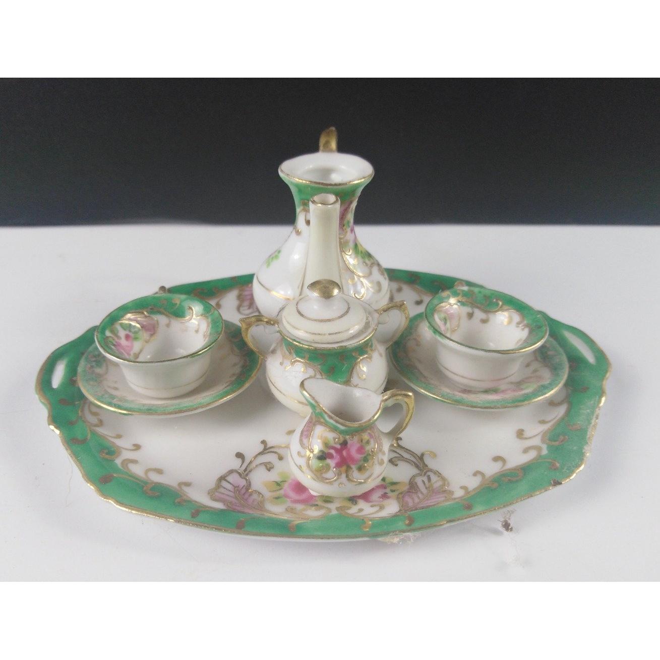 A mixed collection of decorative items to include a ROYAL WORCESTER coaster (9cm dia), 2 small bowls (dia 9cm), a CAPODIMONTE napkin ring, a miniature tea service for two (tray length 11cm approx) etc.