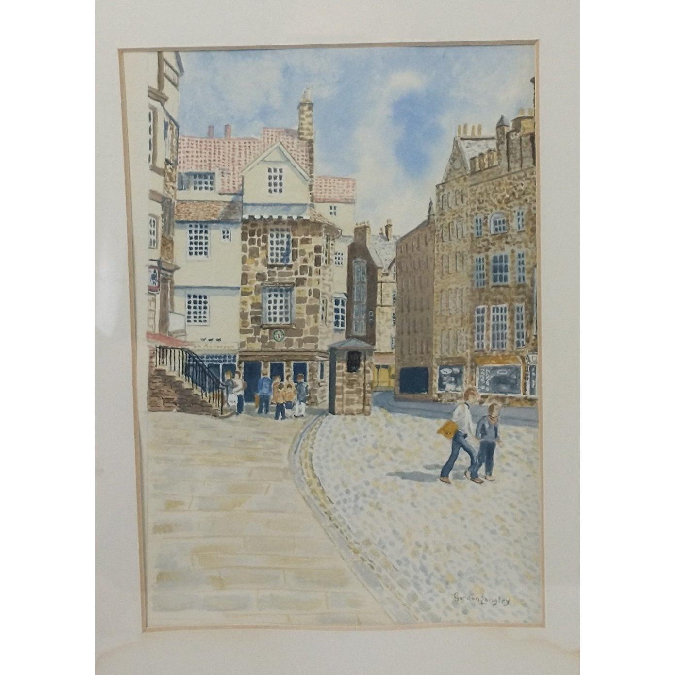 Two EDINBURGH ORIGINAL WATERCOLOURS to include John Knox House, both watercolours framed and mounted dimensions for each 25cm x 17cm