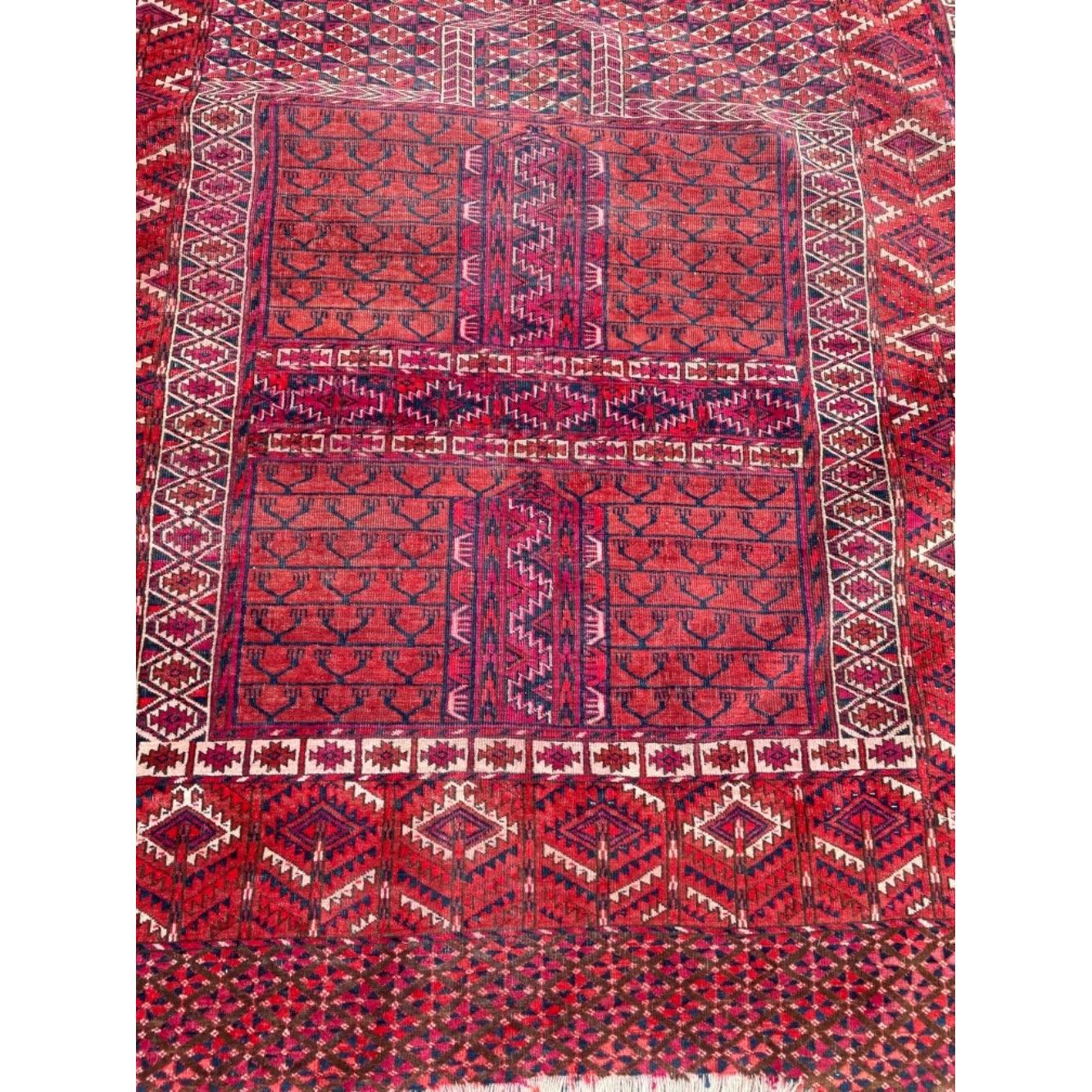 A vintage red-based PERSIAN rug with 4 medallions 140cm x 130cm, small amount of damage to one corner