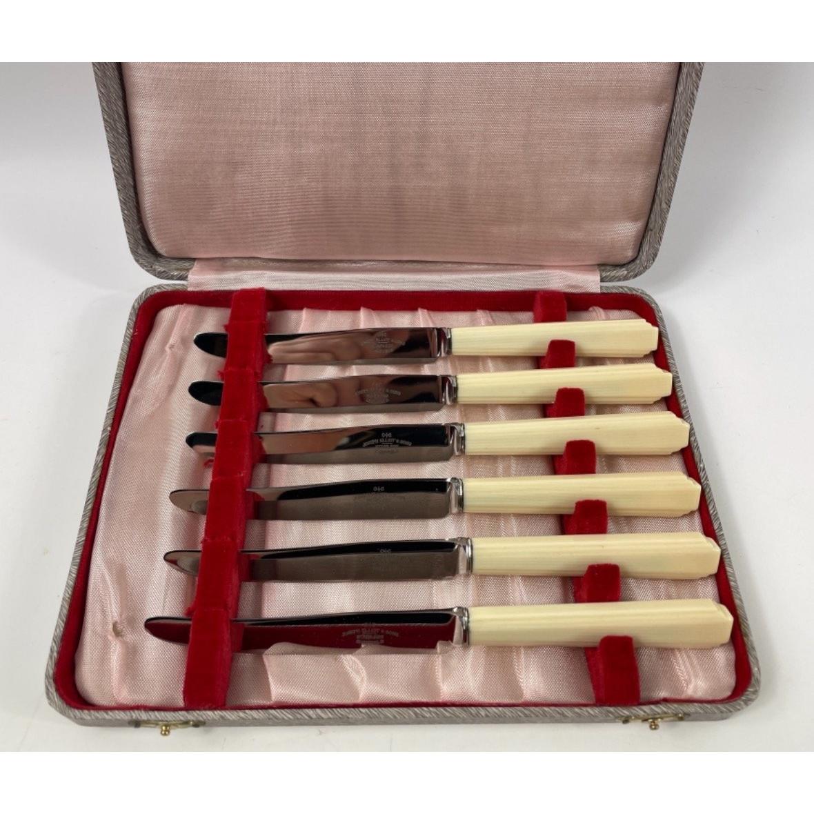 A set of six boxed BUTTER KNIVES with bone handles by JOSEPH ELLIOT & SONS of Sheffield, length 16.5cm