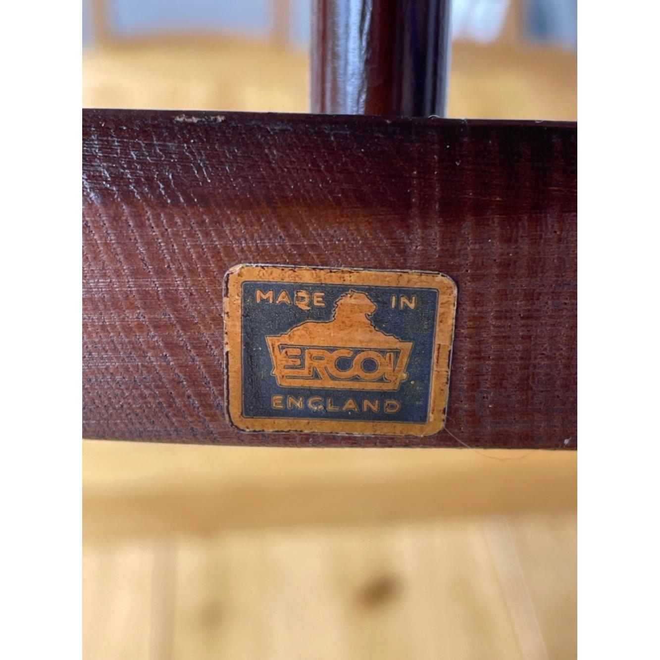 A set of six dark wood ERCOL dining chairs, two carvers and four standard dining chairs, with the ERCOl badge and stamped.Approx 6 pieces