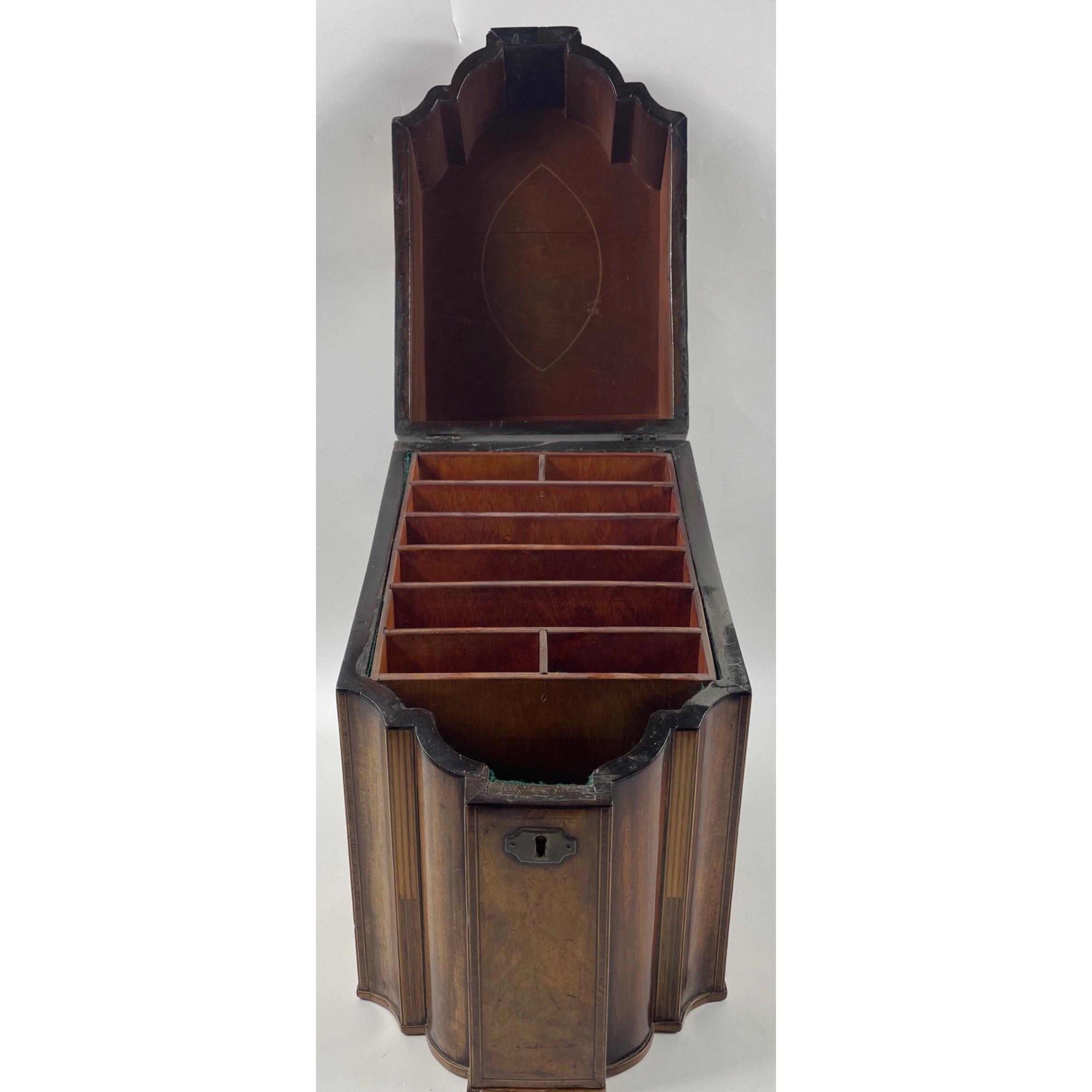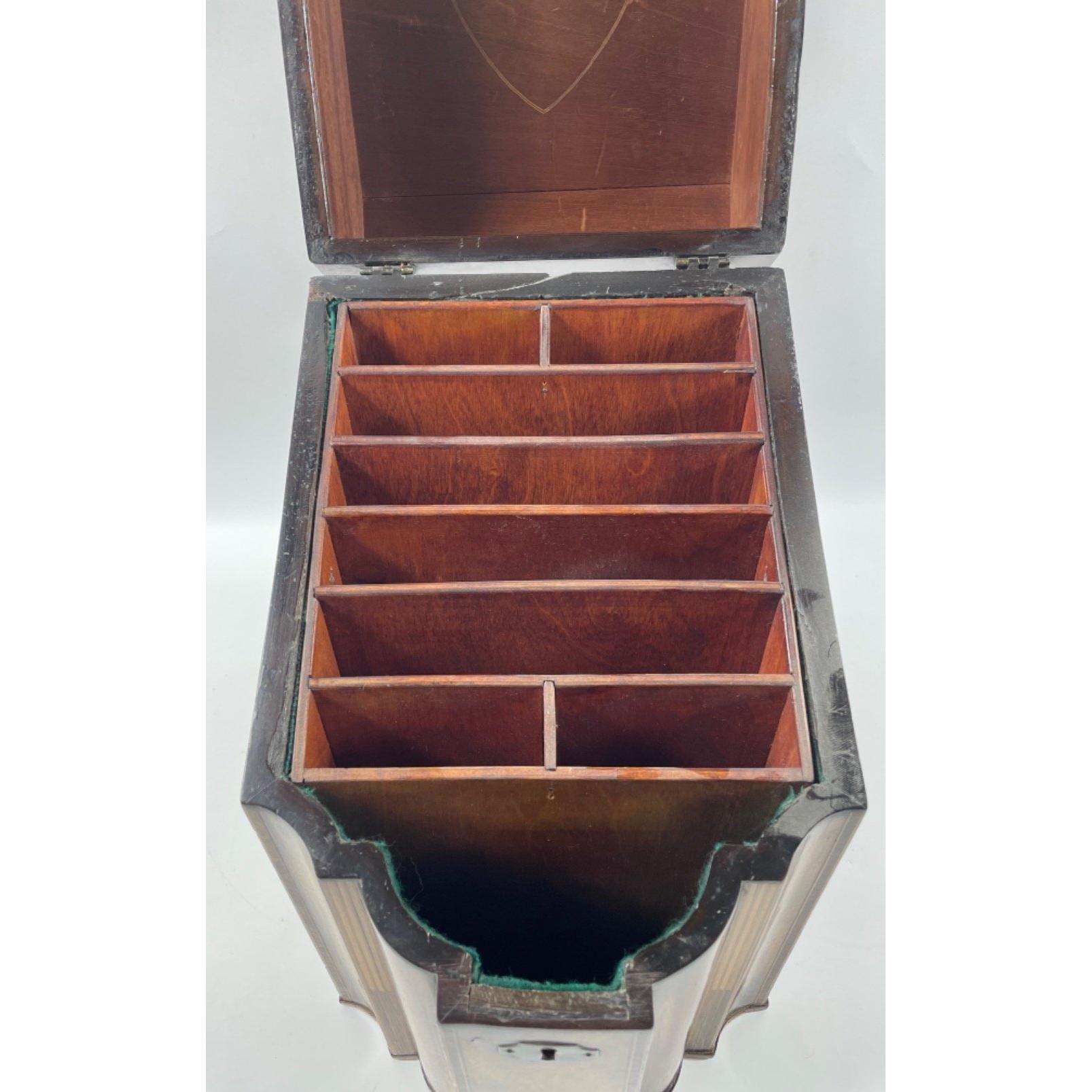 An antique late Georgian/early Victorian inlaid STATIONERY BOX with 9 internal divisions, stands 37cm at highest point