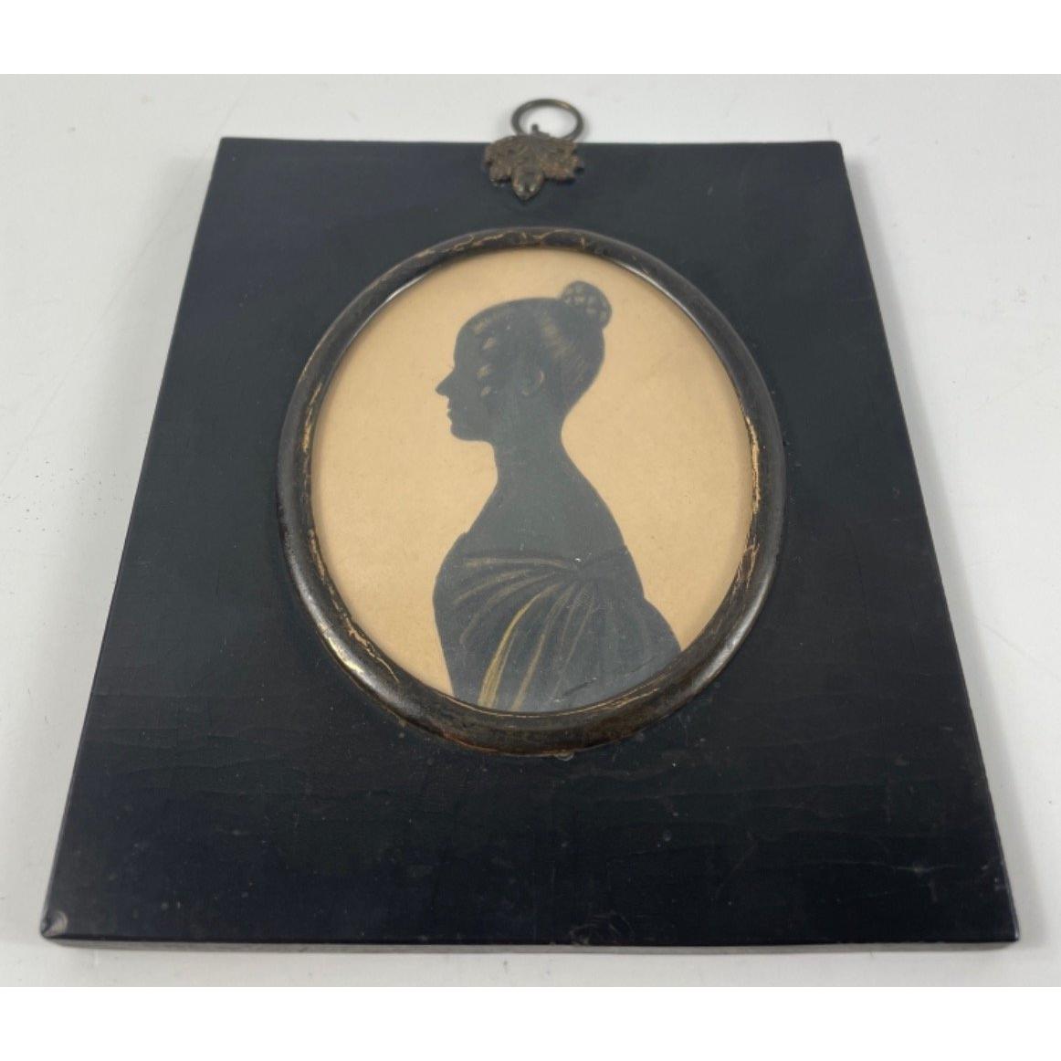 TRIO - 19th Century Regency trio SILHOUETTES Portrait Miniatures of a Young Gentleman, Young Lady & a Boy within period gilt bezel frame Circa 1810 - Dimensions each 14cm height x 12.5cm