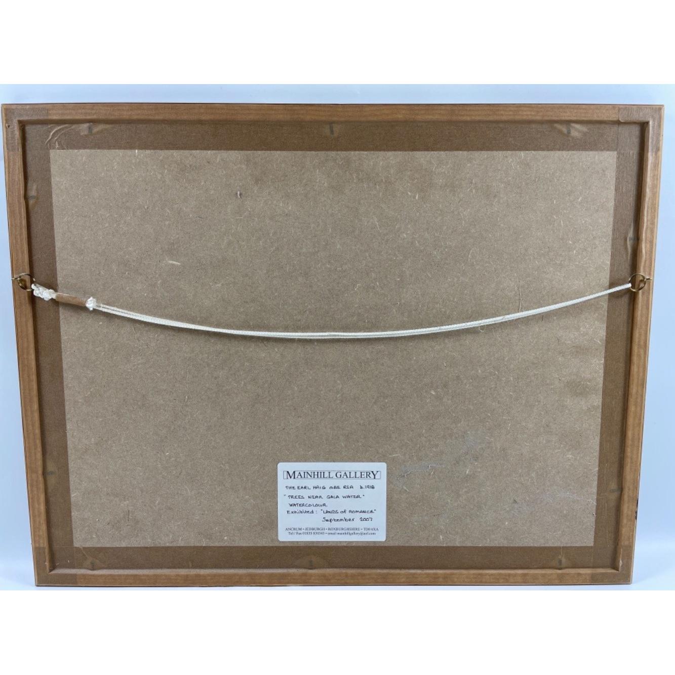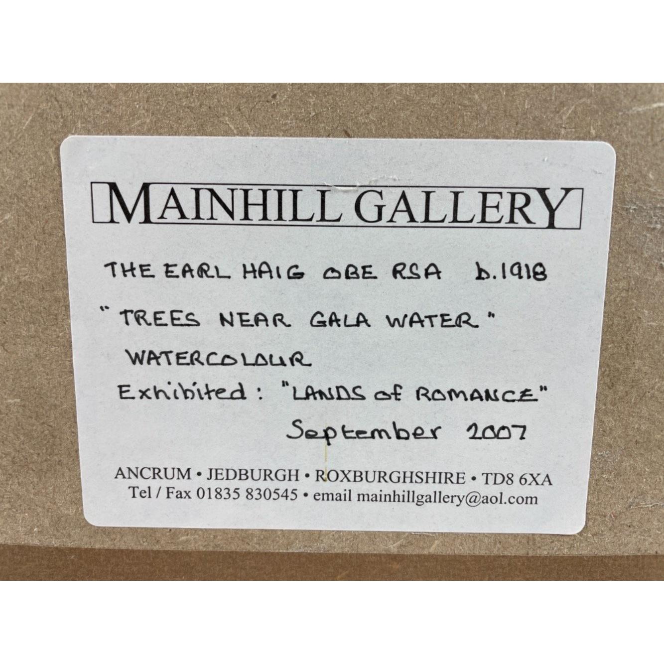 A framed ORIGINAL watercolour by George Alexander Eugene Douglas HAIG, 2nd Earl Haig, OBE, KStJ, DL, FRSA (15 March 1918 – 9 July 2009 RSA of "Trees near Gala Water", visible canvas 36 x 23cm, frame size 56 x 44cm, on verso "exhibited 'Lands of Romance 2007'", to verso labelled Mainhill Gallery