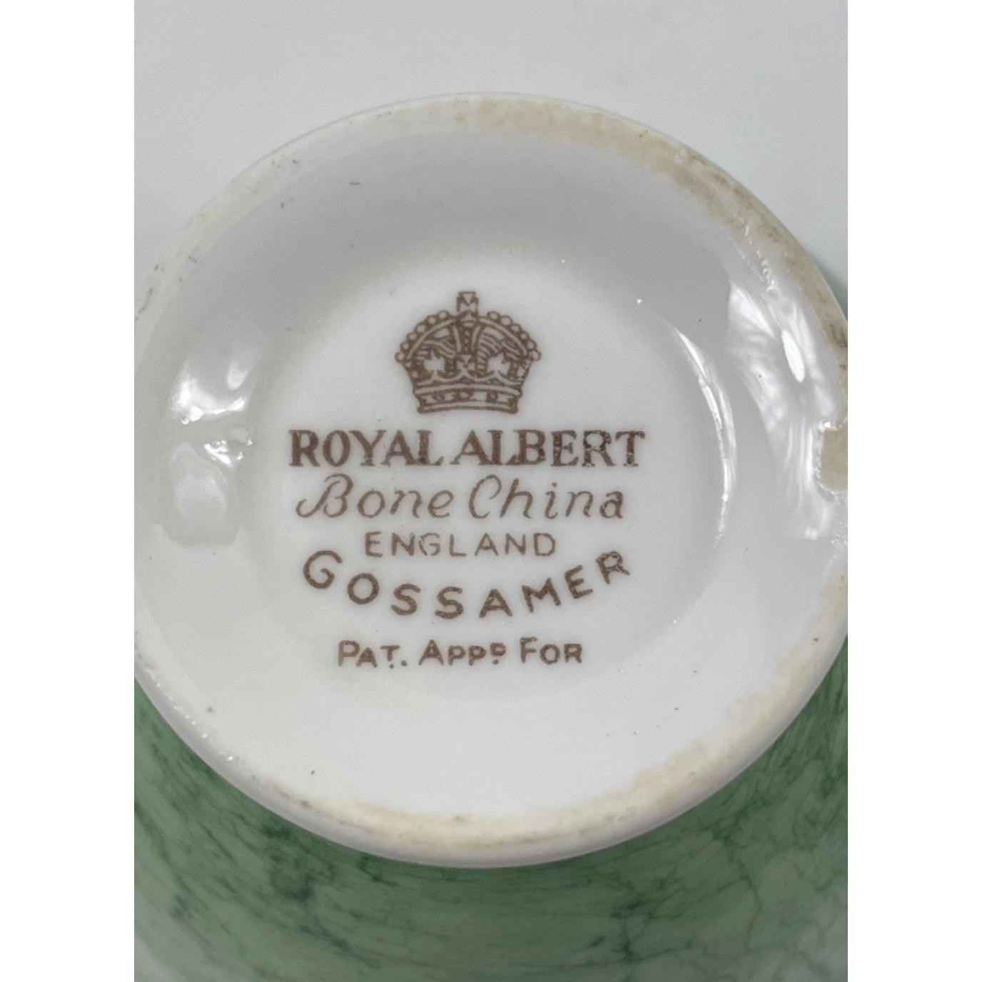 A pair of trios - ROYAL ALBERT GOSSAMER teacups, saucers and plates in pink and greenApprox 6 pieces