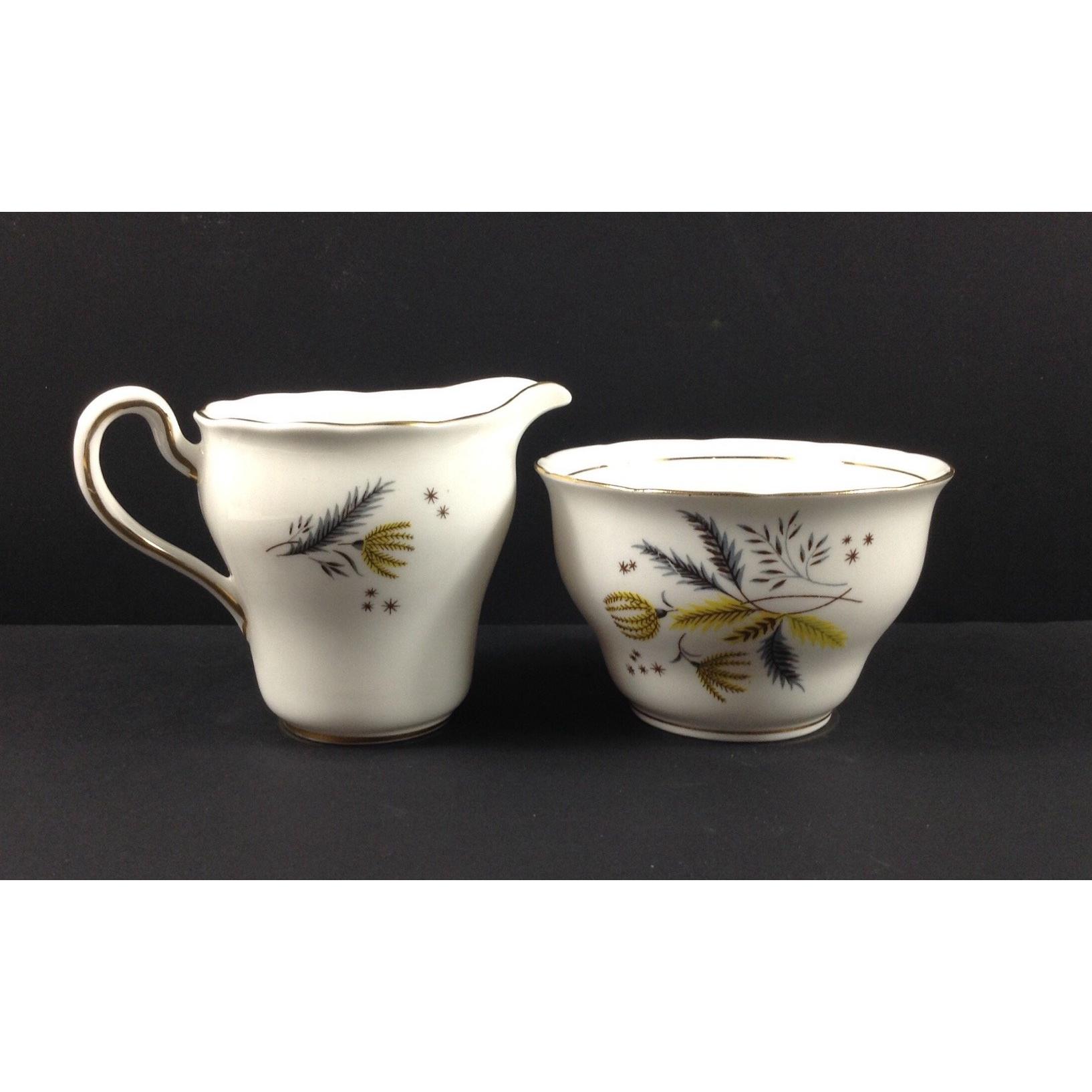 A part COLCLOUGH tea service STARDUST (6791) pattern with gilt scalloped edges to include 5 cups, 9 side plates, 1 milk jug, 1 sugar bowl and 1 cake plateApprox 17 pieces