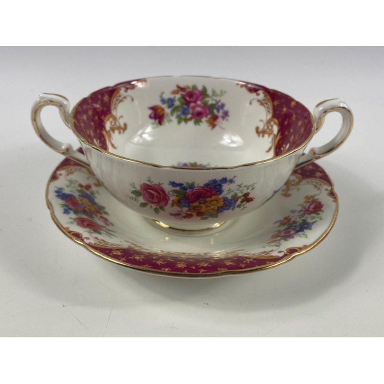 A part PARAGON ROCKINGHAM dinner serviced to include 4 x 27cm plates, 4 x 20cm plates, 4 x 16cm plates, 4 x 15cm saucers, 4 twin-handled soup bowls (11cm dia), 1 sauceboat with underplate