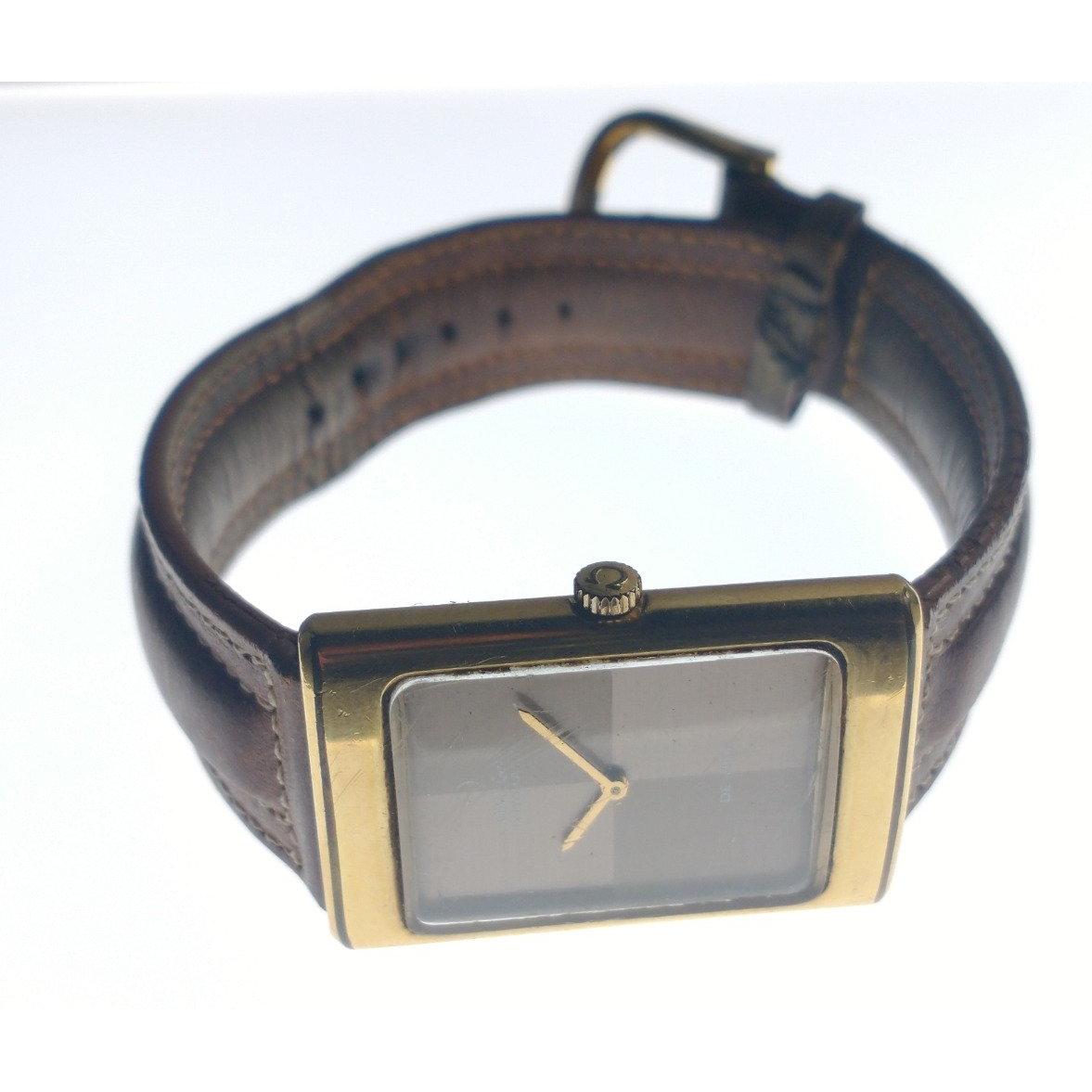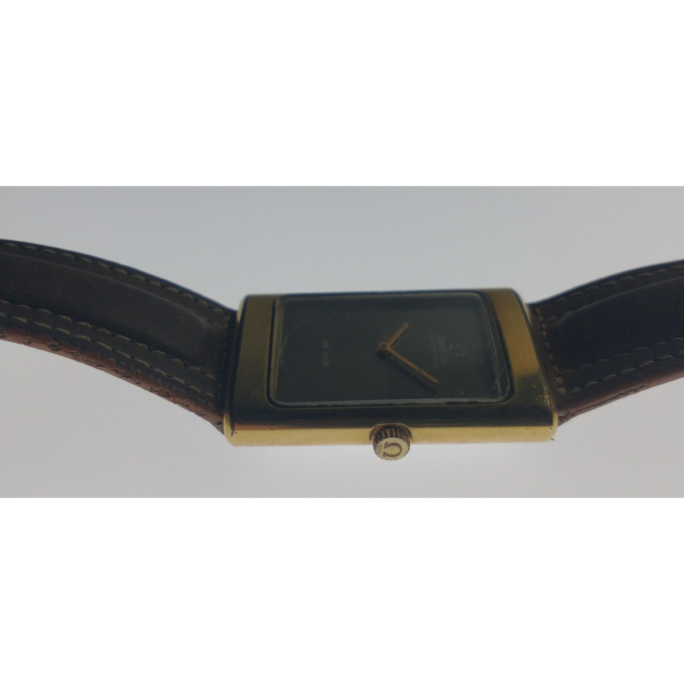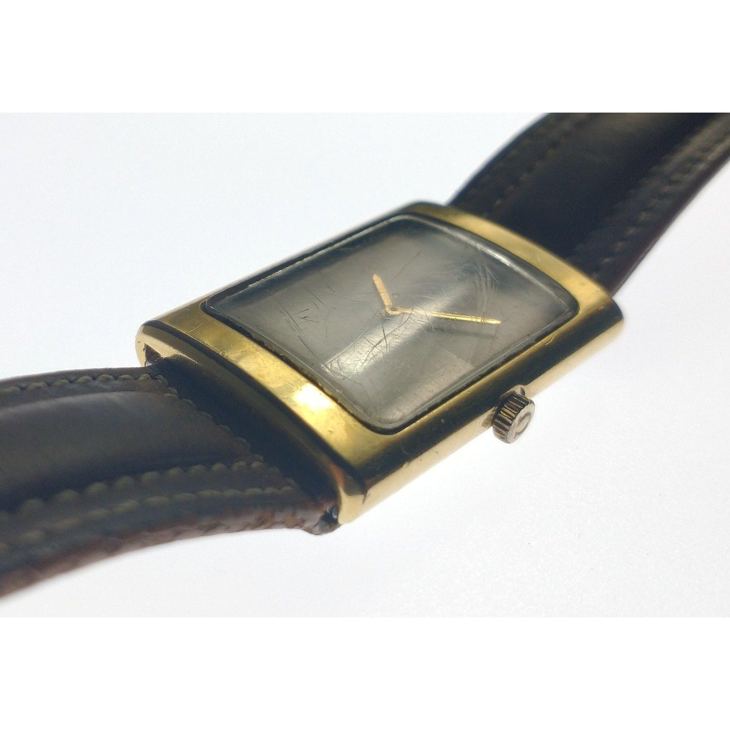 ULTRA RARE OMEGA Vintage Ladies Automatic Watch "DE VILLE" with chequered quarter dial vintage from the 1960s in original box - the watch face is scratched in places as is the gold metal surround casing, as you would expect with this almost 60 year old watch, with brown leather wrist strap.