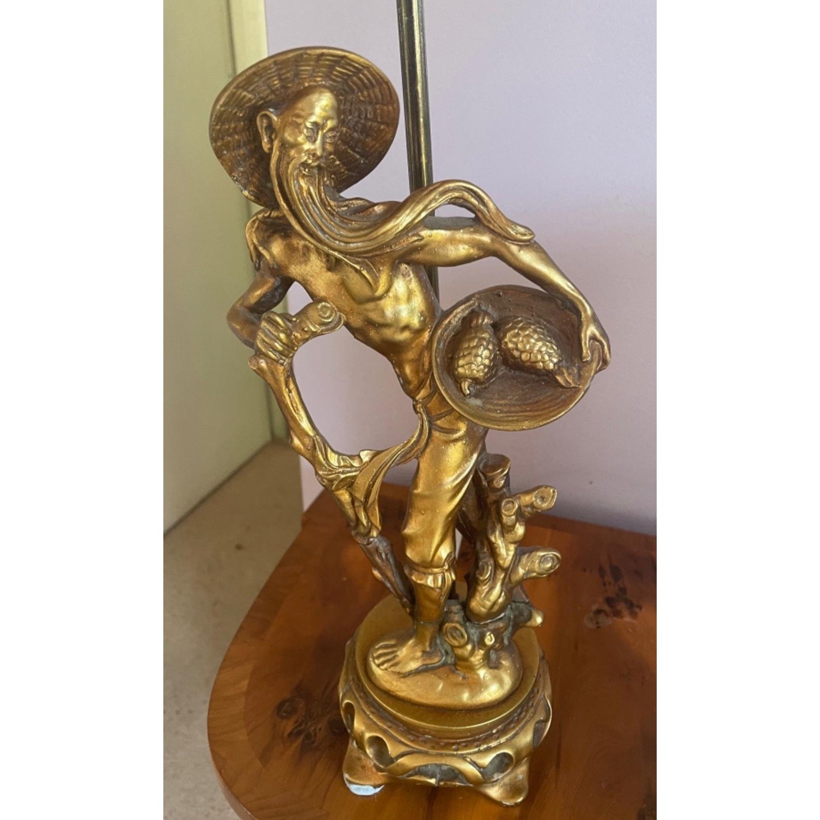A Brass effect oriental electric table lamp (70cm H)