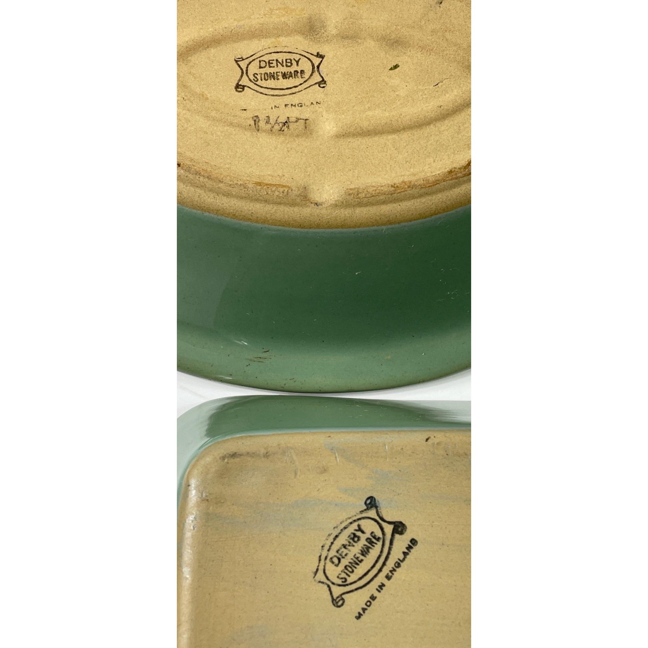 Two Denby green ovenware dishes: largest is a divided dish 27cm x 20cm x 7cm)Approx 2 pieces