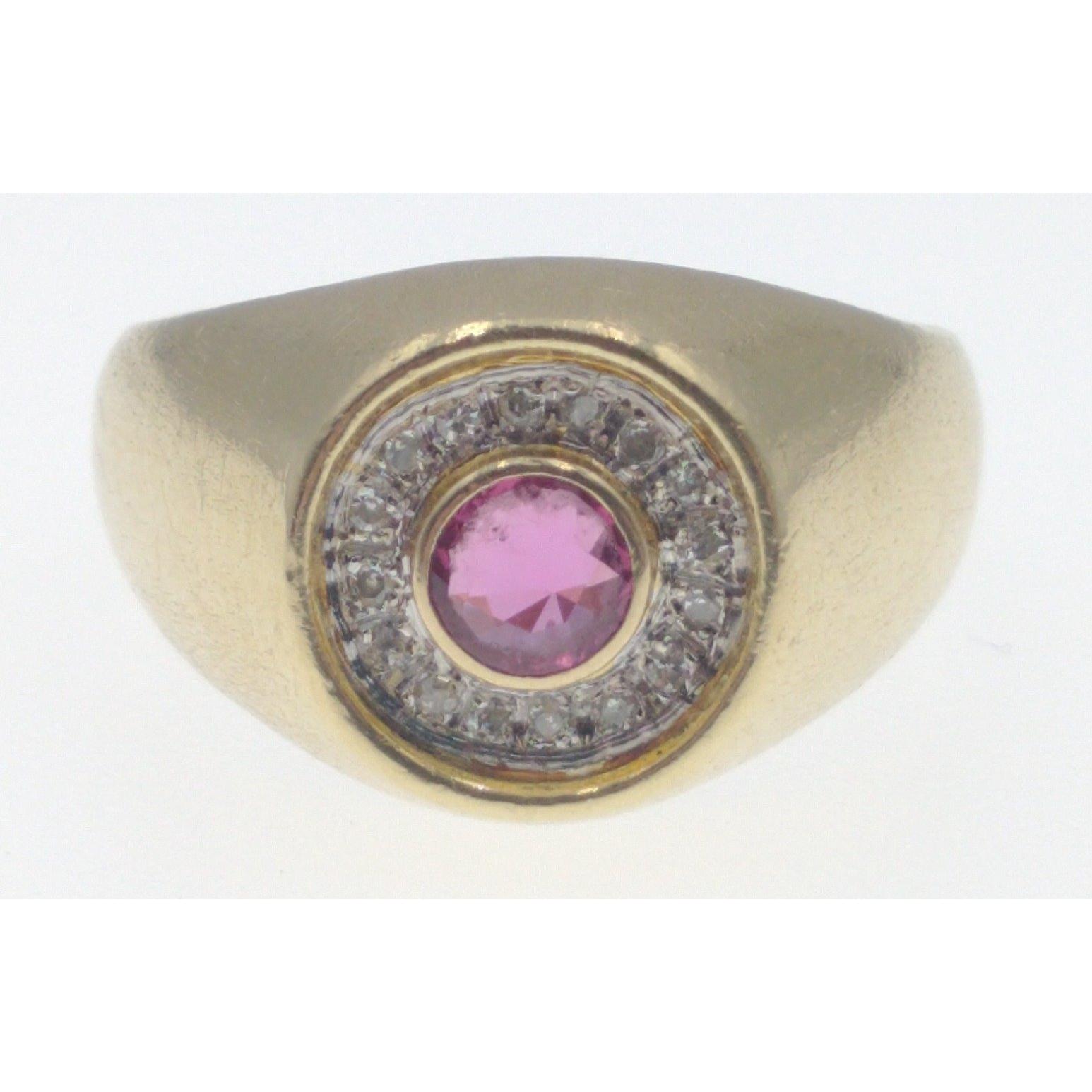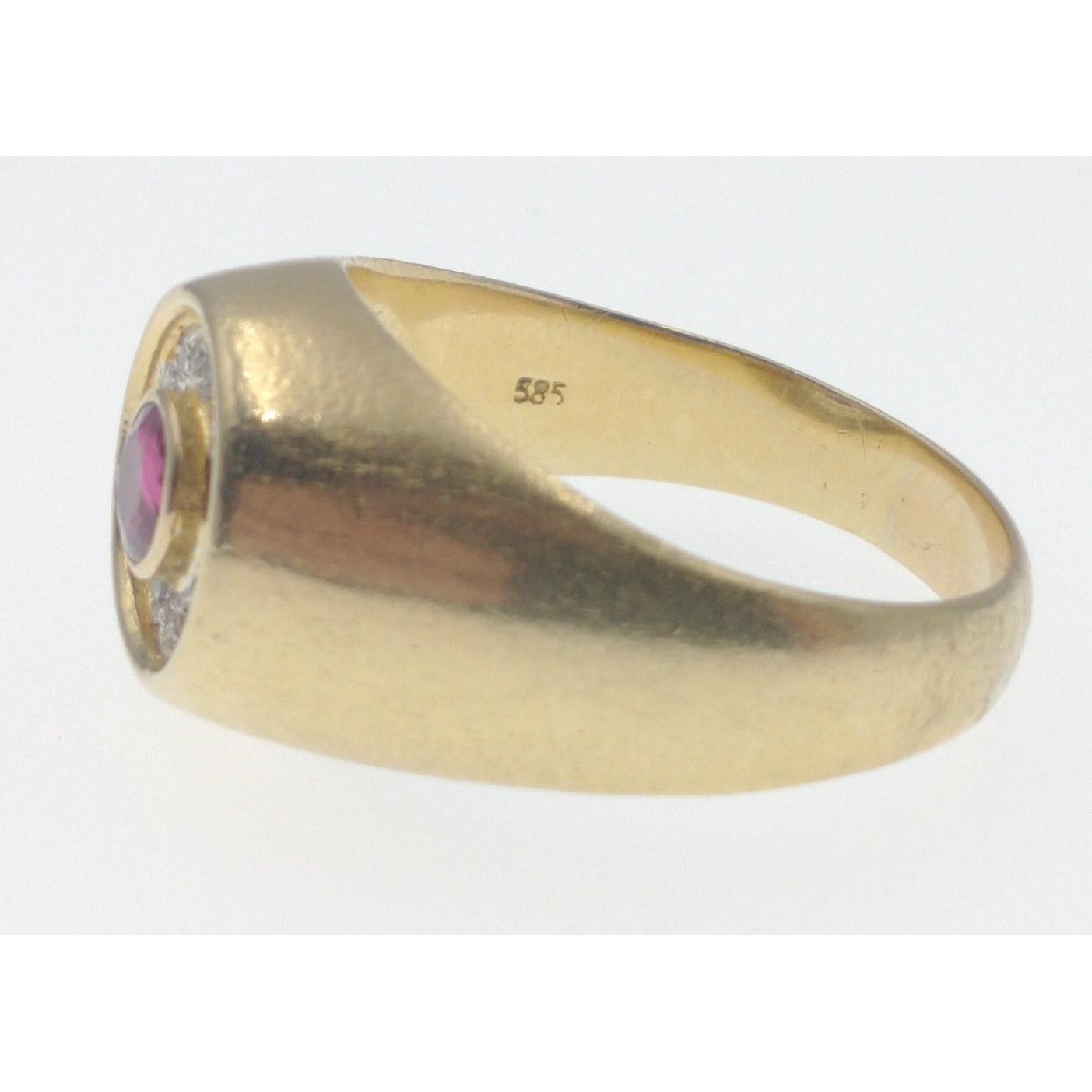585 stamped gents FABULOUS large ruby(4mm diameter) centred with diamond chips(tested) surrounding the ruby - size W gross weight 10g cost new £1900 Gross weight approx 10g
