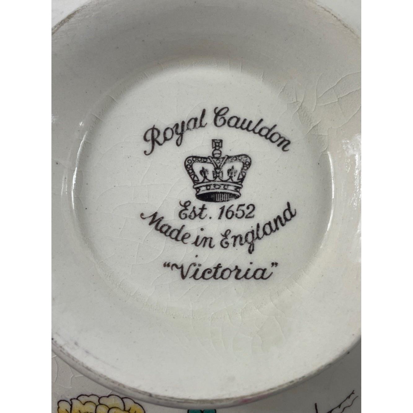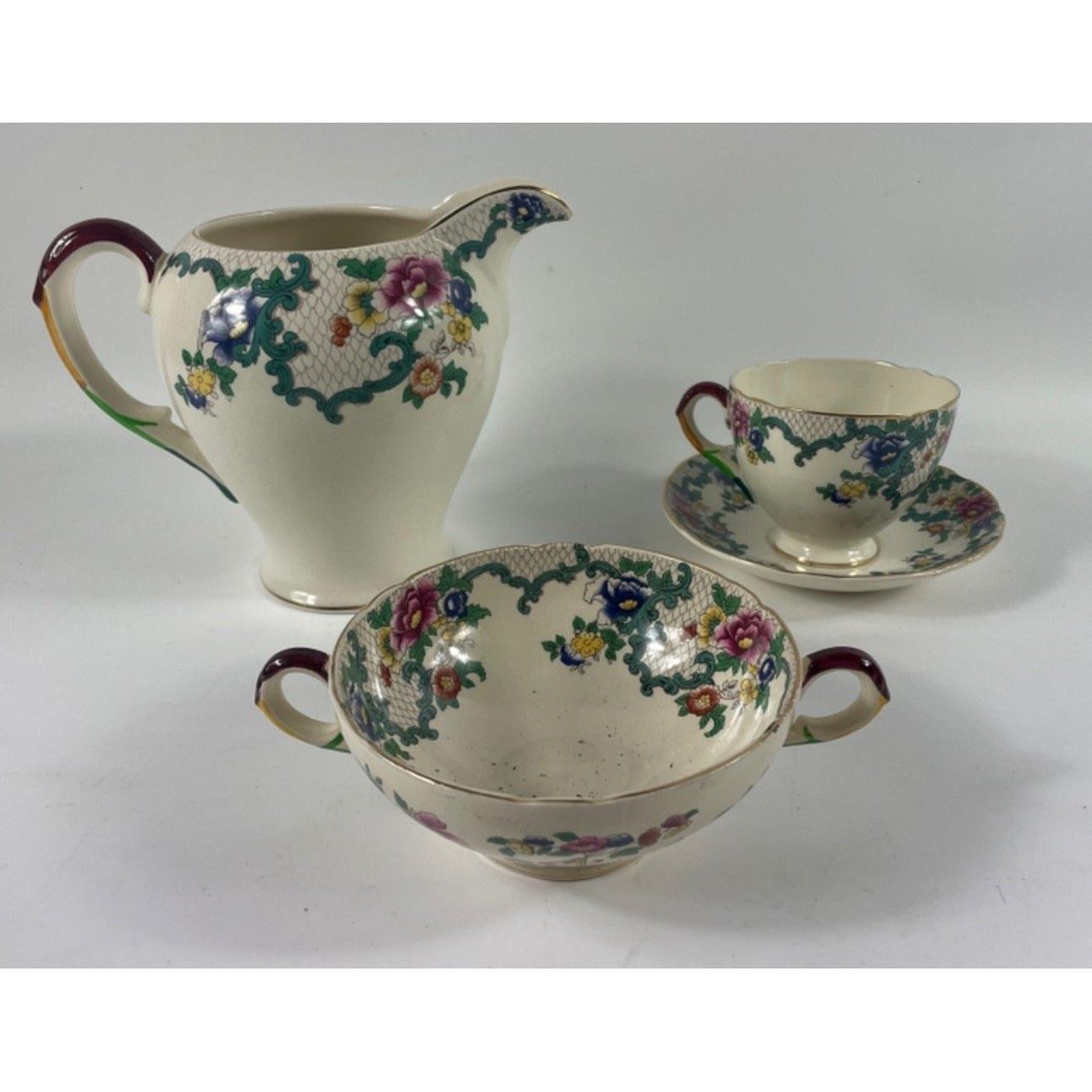A large quantity of vintage 1930s ROYAL CAULDON 'Victoria' pattern china to include 22 cups, 18 x 18cm bowls, 1 x 14cm bowl, 6 x 12.5cm twin-handled soup bowls, 23 x 14cm saucers, 6 x 17cm saucers, 13 x 15.5cm plates, 17 x 24cm plates, 1 sauceboat, 1 jug (15cm high), 1 ashet (28.5cm), 1 ashet 32.5cm), 1 ashet (33cm), 2 lidded vegetable dishes (25cm )