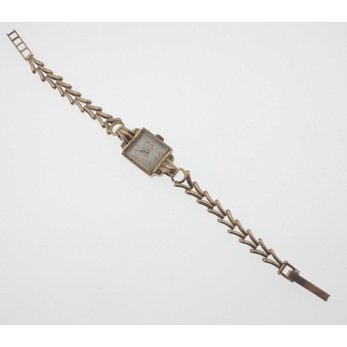 A NICE vintage 375 case and bracelet stamped ladies yellow gold watch, the case hallmark is 1948, the bracelet Hallmark is indistinct either 1911 or 1931? weight approx 14.60g - all within a HAMILTON and INCHES jeweller's case