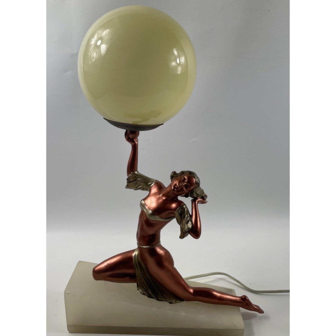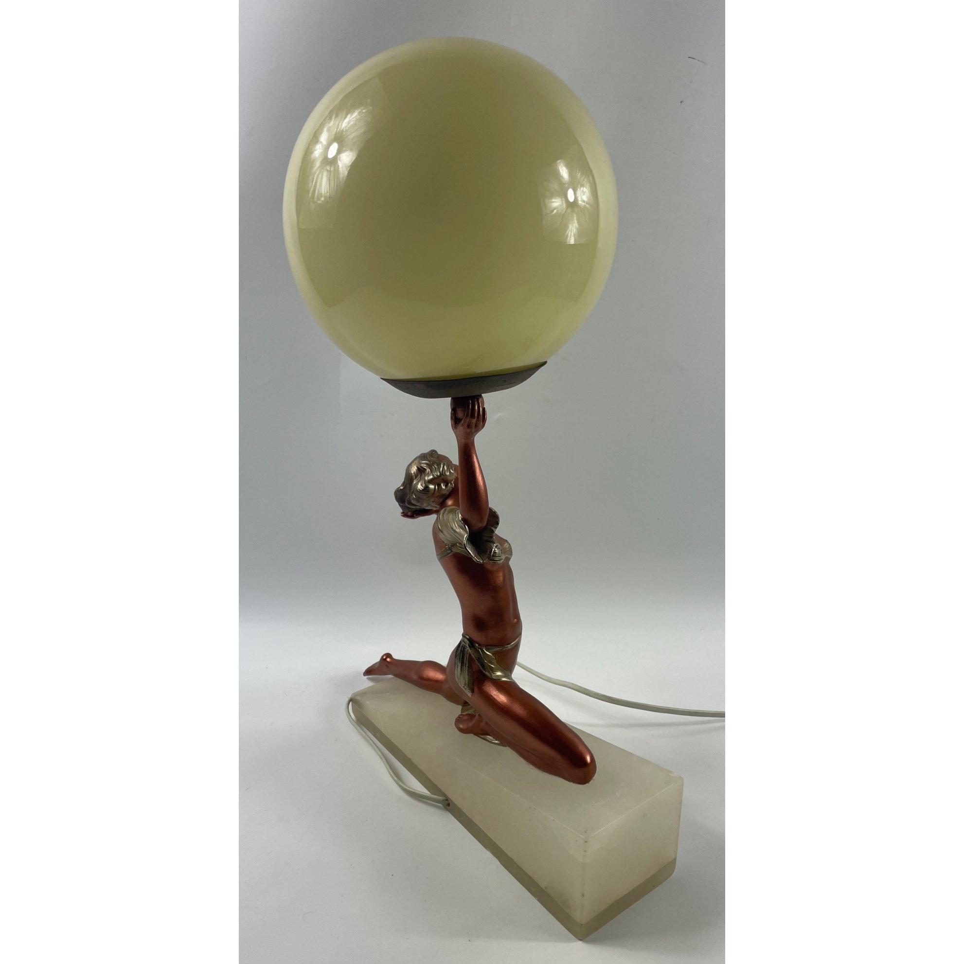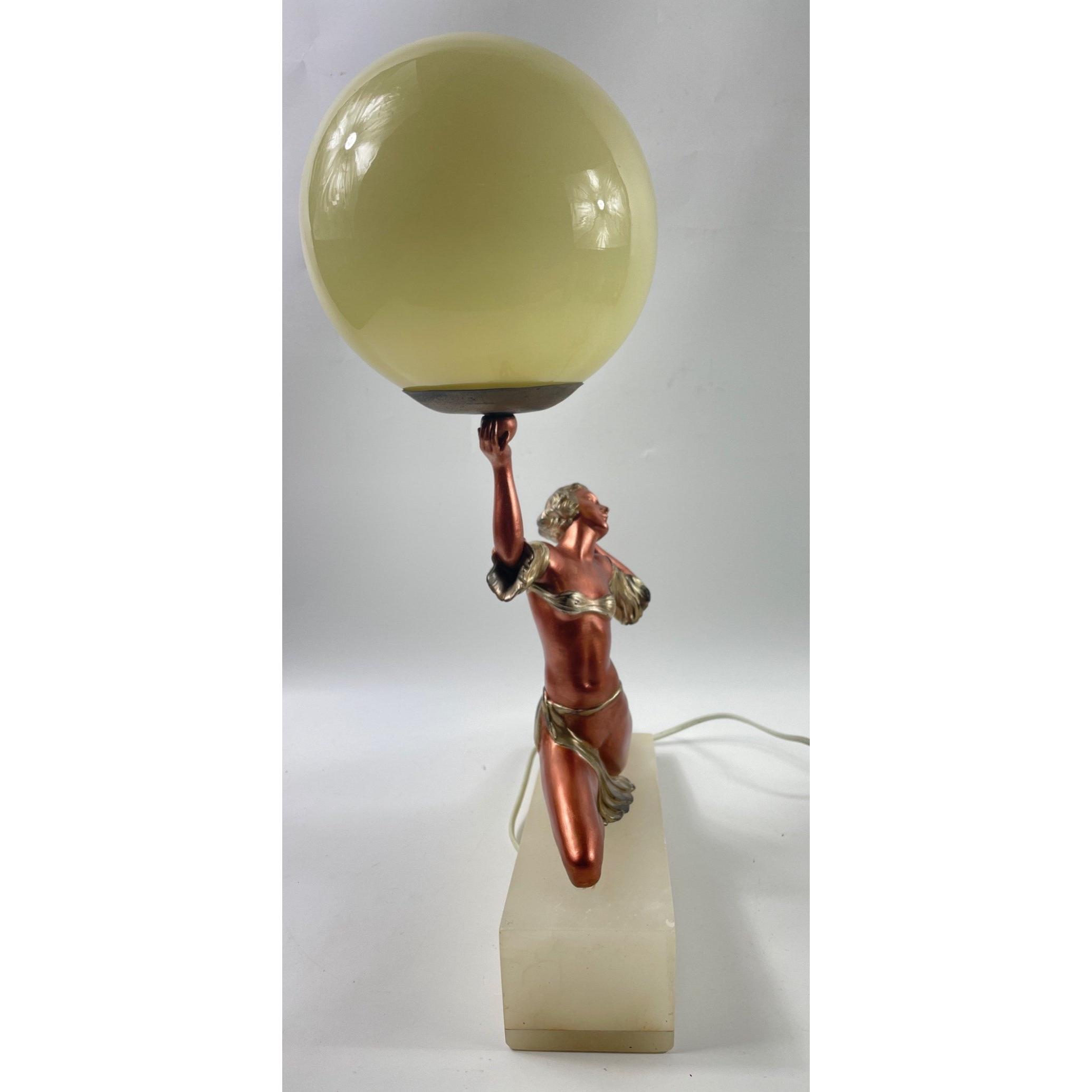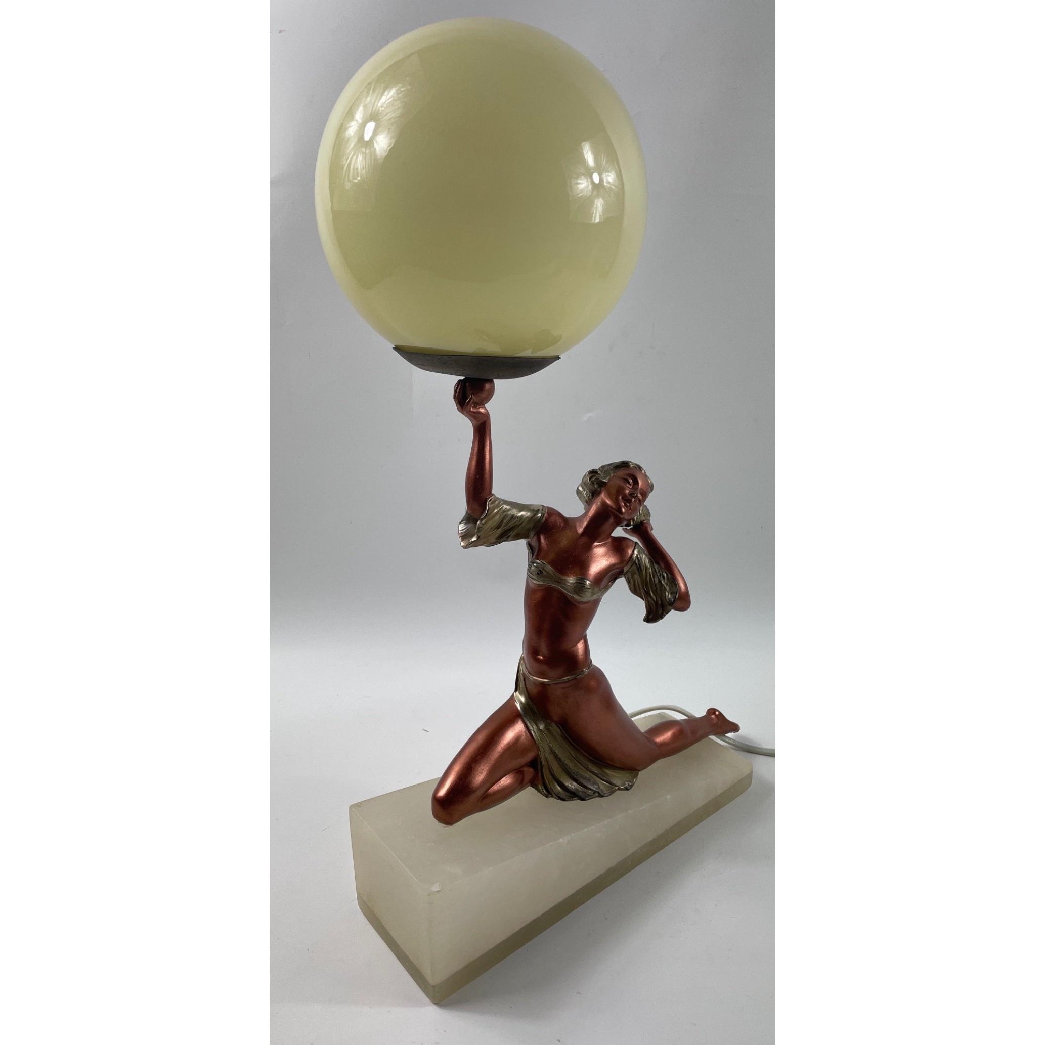 ART DECO 'LADY LAMP' - A large spelter kneeling lady lamp, thought to be designed by LORENZI - unsigned.